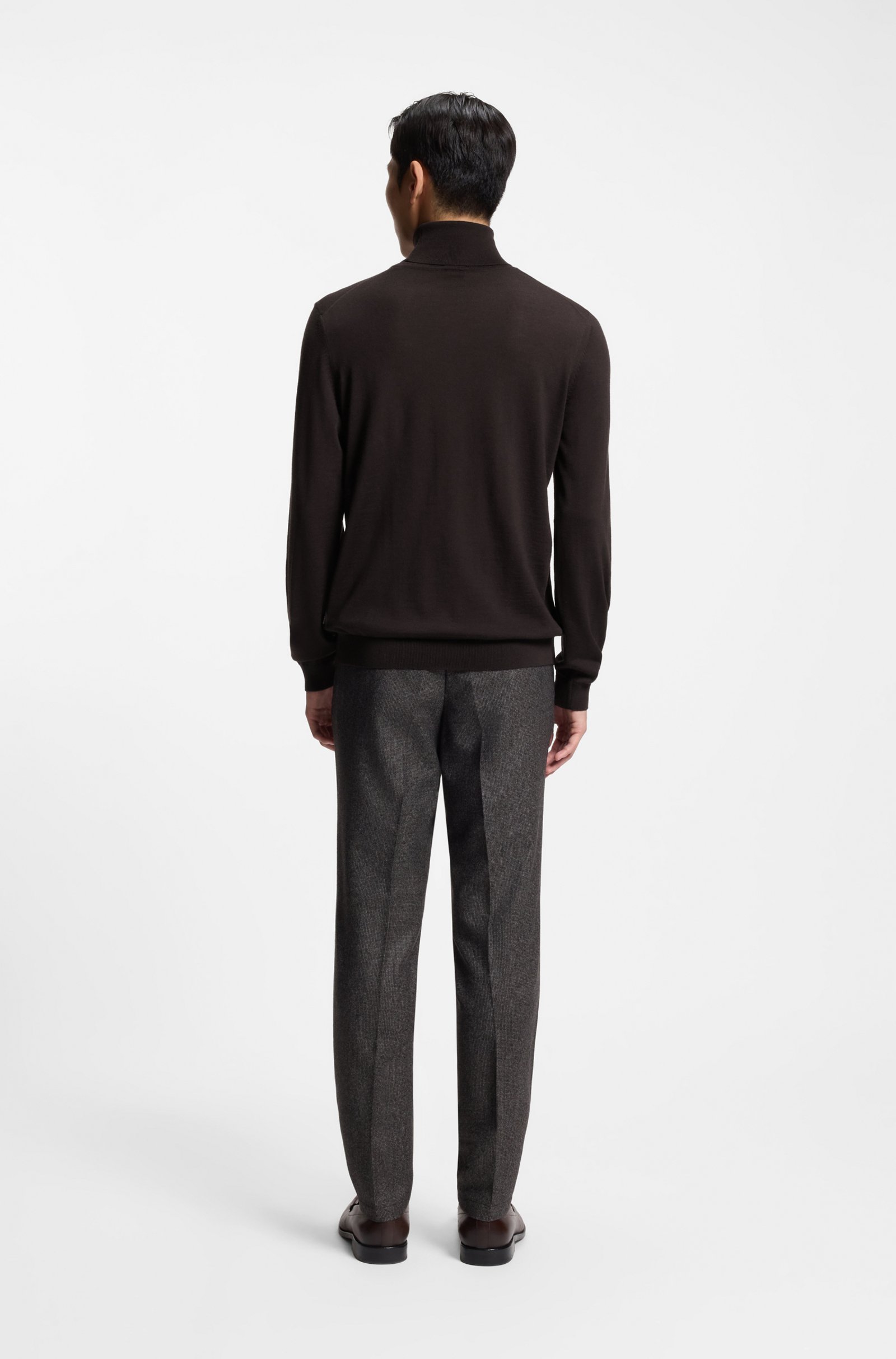 Ideal für jede Jahreszeit: der schmal geschnittene BOSS Herren-Pullover aus atmungsaktiver Schurwolle. Der Herren-Pullover mit Rollkragen ist mit einem Logo-Fähnchen versehen. Strukturierte Details an den Seitennähten runden das Design ab.