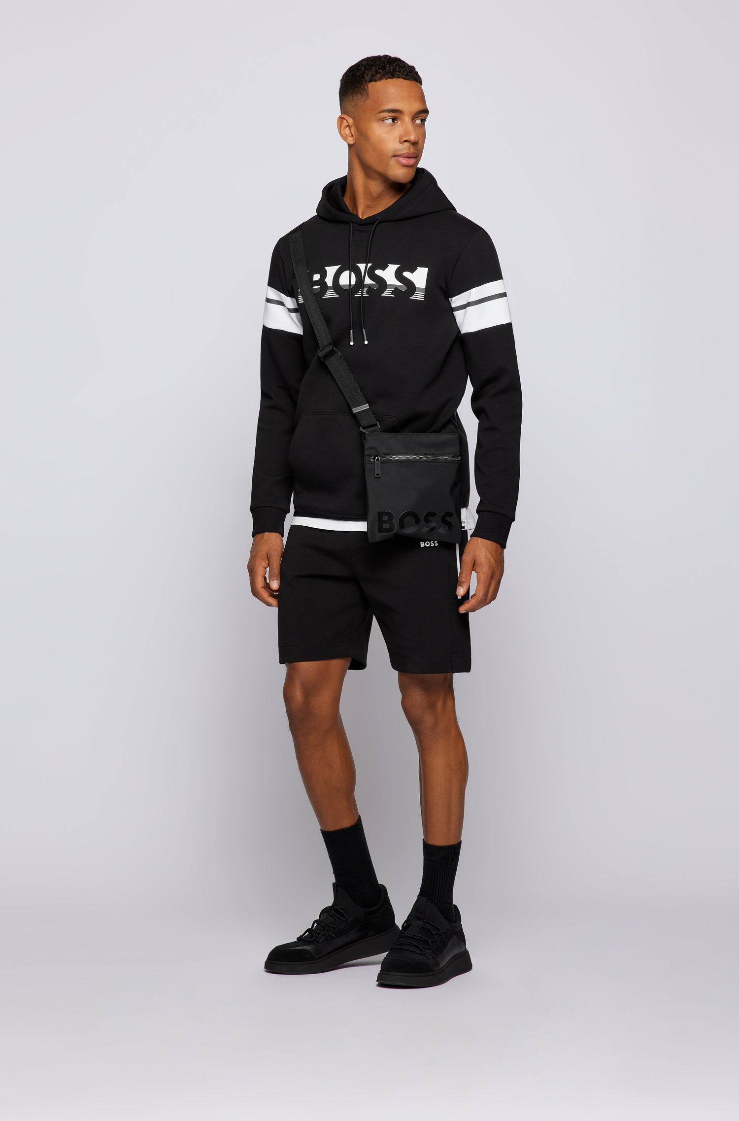 Kompakte BOSS Tasche für jeden Tag. Die Herren-Tasche im Kuvert-Stil ist aus softem, leichtem Nylon gefertigt. Ein BOSS Logo-Print und ein Logo-Fähnchen mit charakteristischem Streifen an der Seite runden das Design ab. Für unsere RESPONSIBLE Produkte verwenden wir immer mindestens 60 % nachhaltigere Rohmaterialien. Das Accessoire besteht zu mindestens 60 % aus zertifiziertem recyceltem Polyamid. Wir verwenden recyceltes Polyamid, um bestehende Kunststoffe wiederzuverwenden und damit Ressourcen zu sparen. Recyceltes Nylon wird normalerweise aus Spinnerei- oder Stoffabfällen gewonnen, die beim Produktionsprozess anfallen, kann jedoch auch von industriellen Fischernetzen stammen. Wir verwenden nur Rohstoffe aus einer nachverfolgbaren Produktkette, um sicherzustellen, dass es sich um zertifiziertes recyceltes Polyamid handelt.