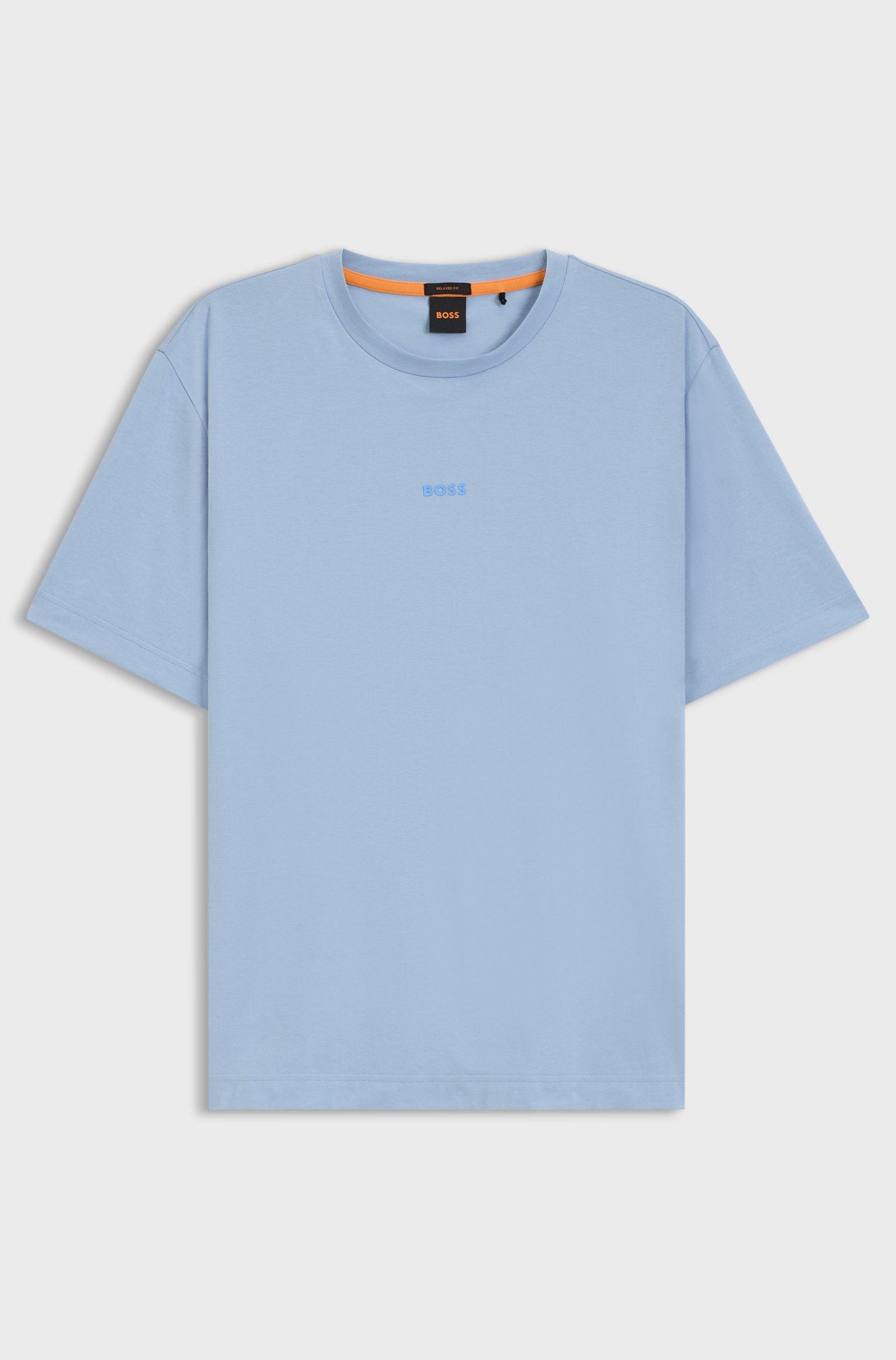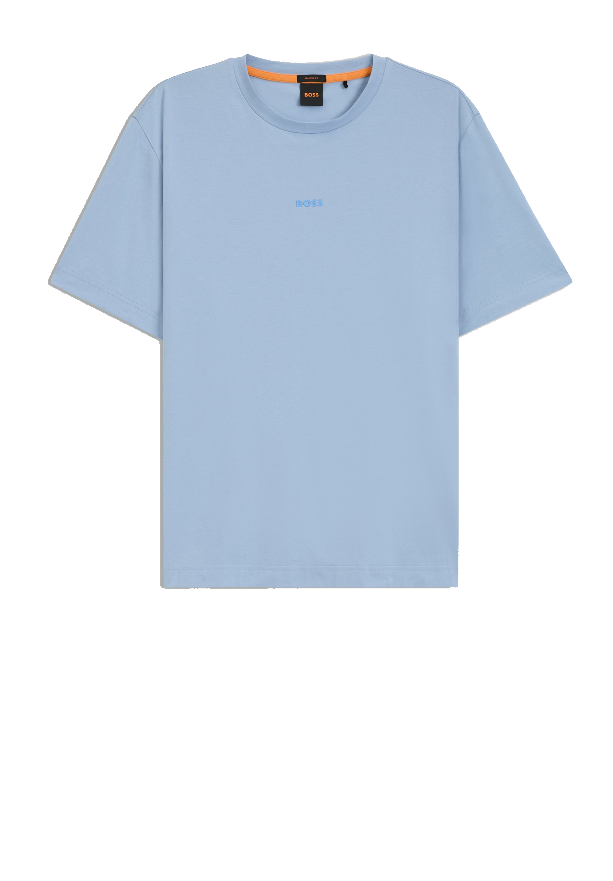 Legeres BOSS T-Shirt mit lockerer Passform. Das Herren-Shirt ist aus einem soften Baumwoll-Mix mit Elasthan-Anteil gefertigt. Auf der Brust ist ein siebenschichtiges Logo aufgedruckt.