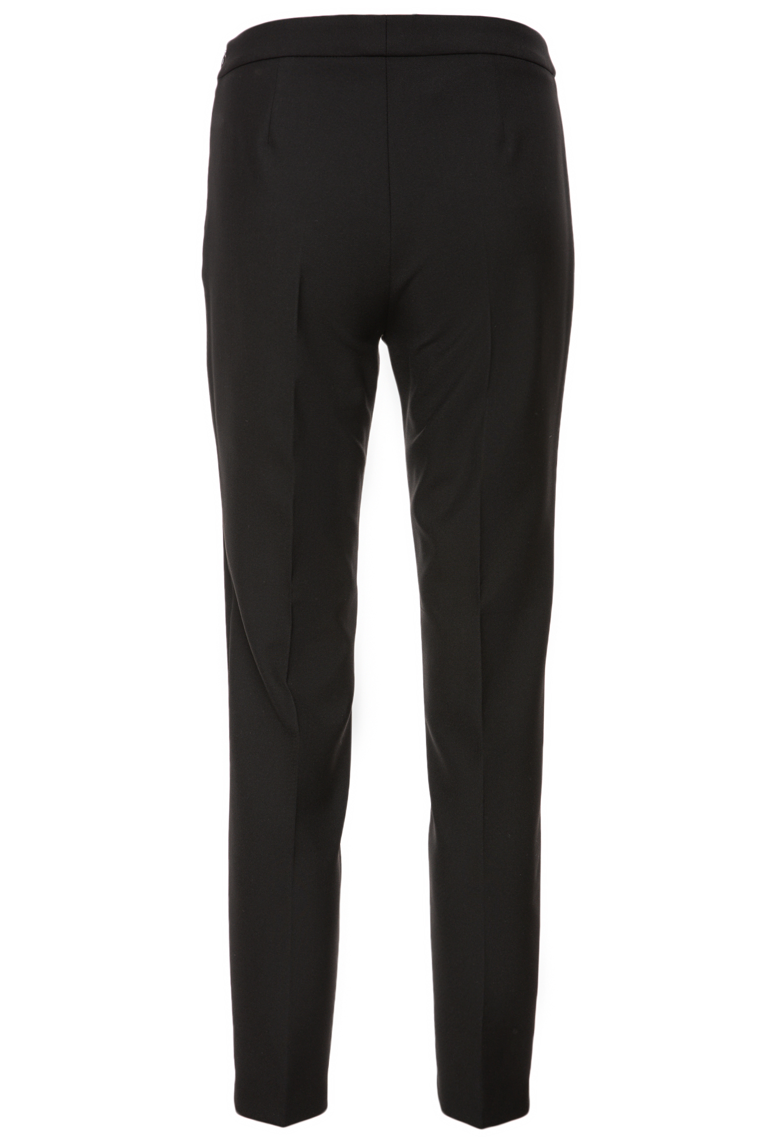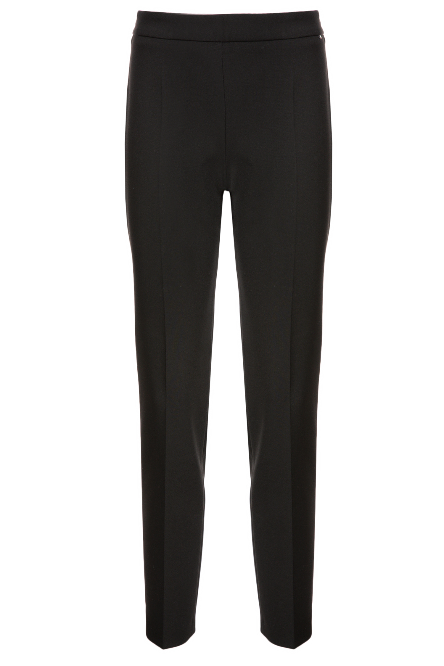 Schicke BOSS Business-Hose in Cropped-Länge. Die gerade geschnittene Damen-Hose mit schmalem Beinverlauf und mittlerer Bundhöhe ist aus einem elastischen Material-Mix mit Baumwoll-Anteil gefertigt. Am Bund befindet sich ein Fähnchen mit charakteristischen Streifen.