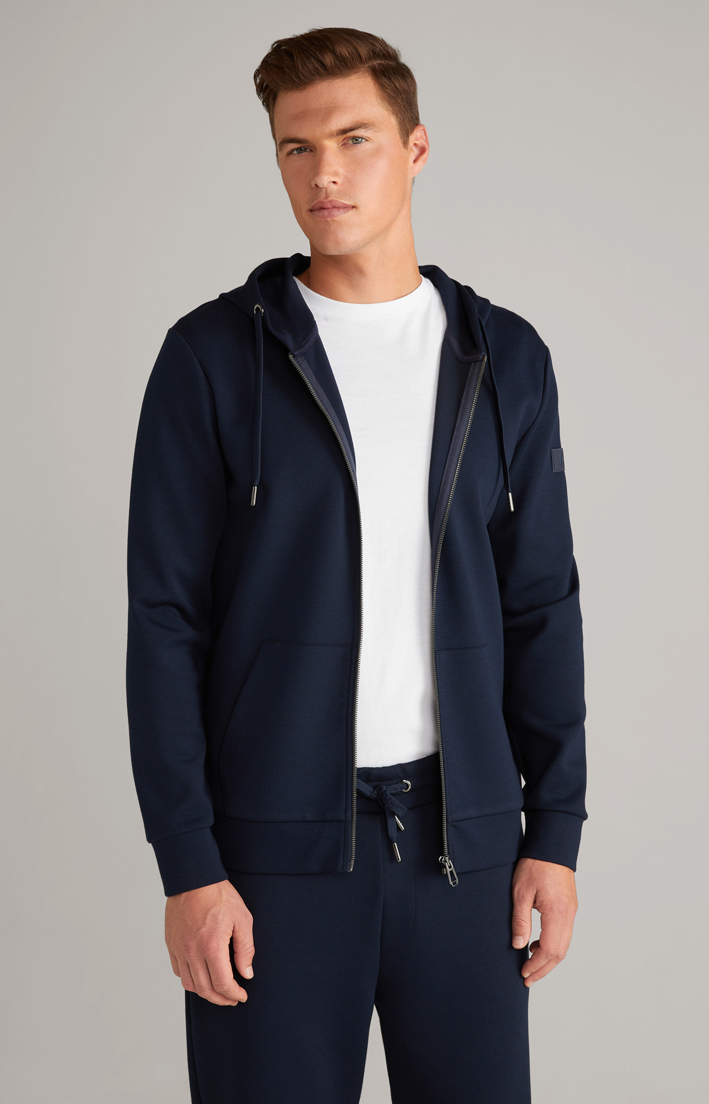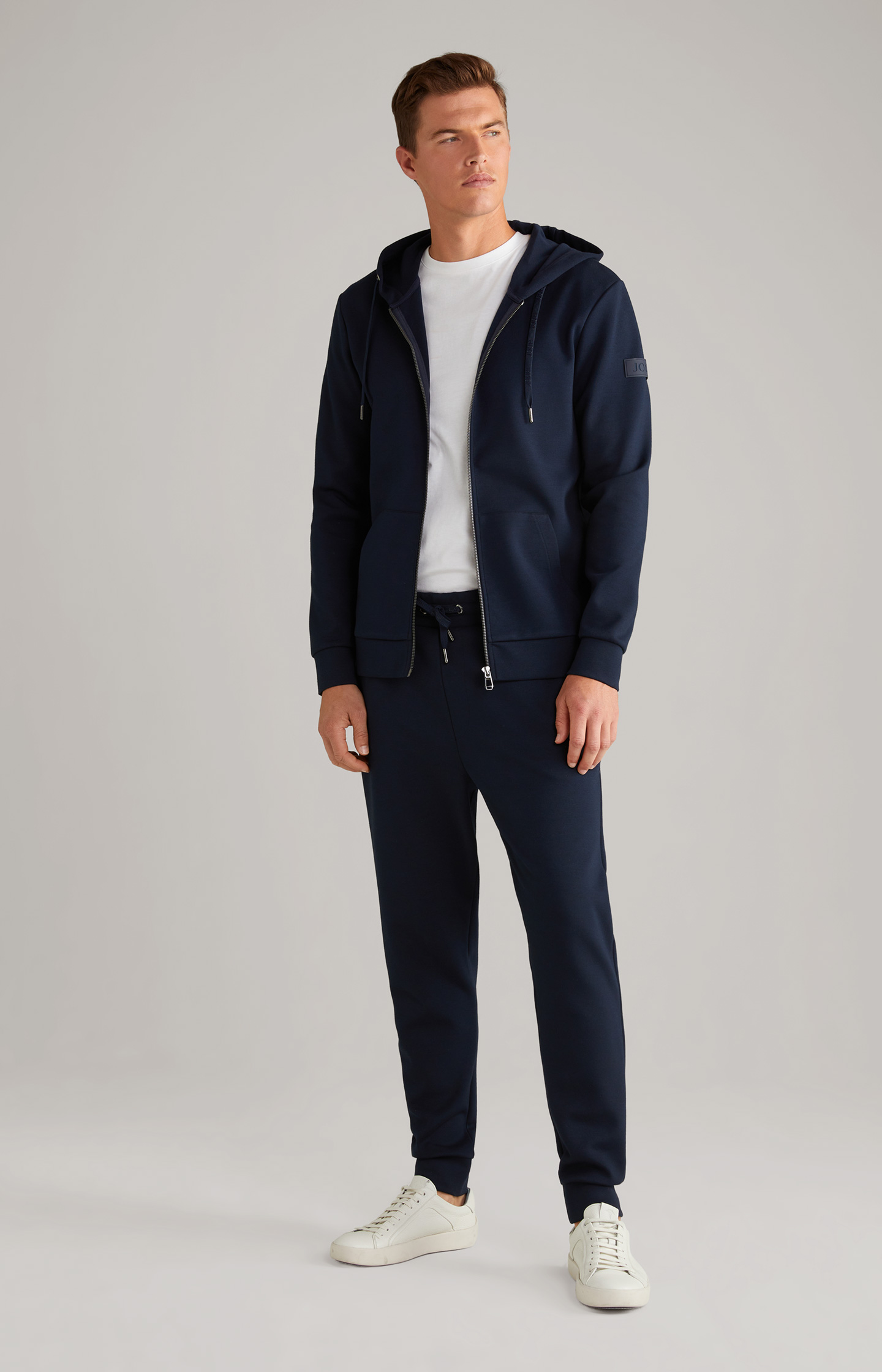 Eine applizierte Kängurutasche und die comfy Kapuze mit Tunnelzug und Logo-Branding zeichnen den urbanen Look der JOOP! Sweatjacke Stratos aus. Als praktikables Detail erweist sich der durchgängige Zipper, während die Sweat-Qualität mit Viskose den Tragekomfort maximiert. Im loungigen Look matcht Stratos perfekt mit der passenden Joggpants Stelios.