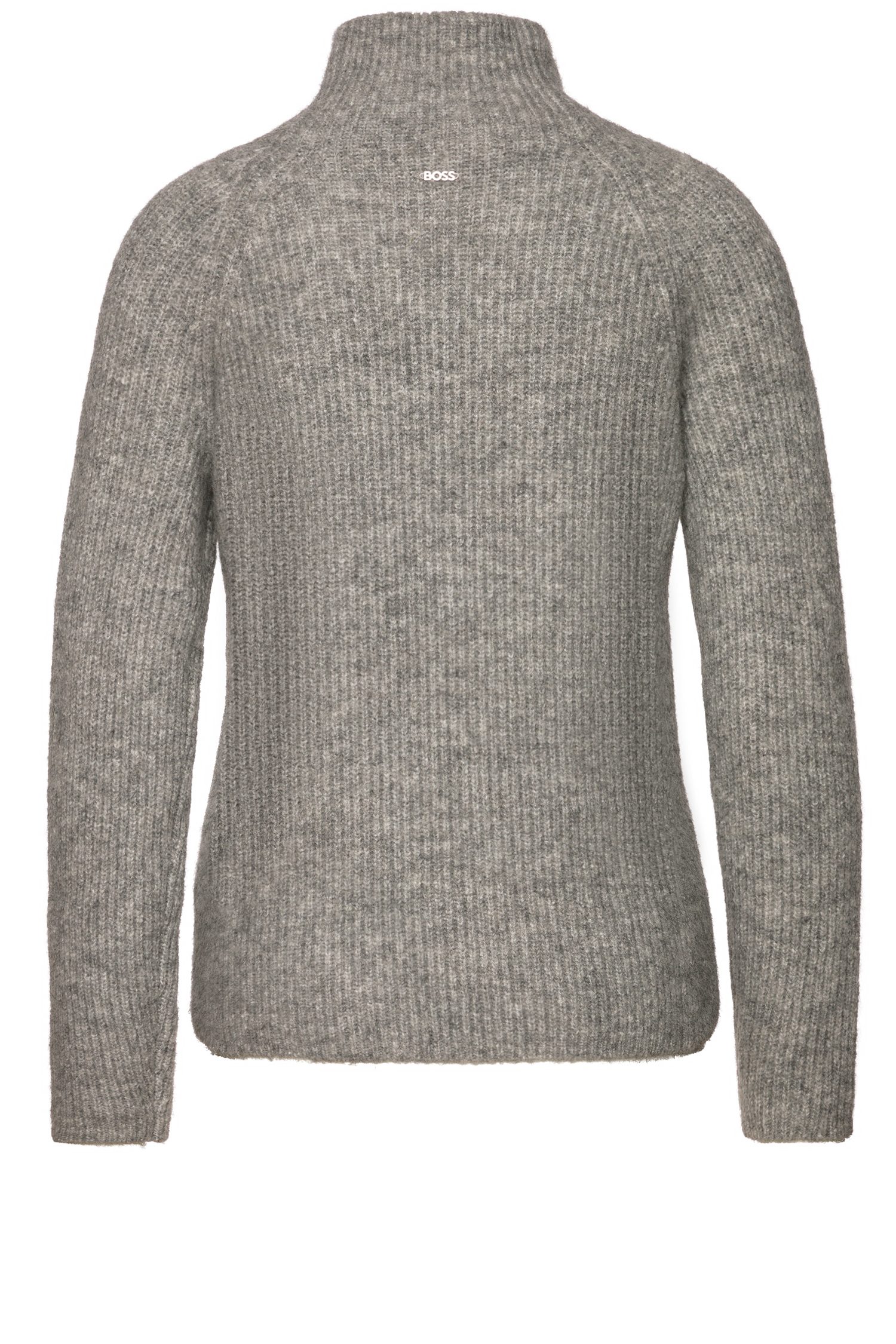 Gerippter BOSS Pullover mit gerader Passform. Der elegante Damen-Pullover mit poliertem Logo auf der Rückseite ist aus einem besonders soften Material-Mix mit Alpaka-, Baumwoll-, Modal- und Elasthan-Anteil gefertigt, der optimalen Tragekomfort verspricht. Ein Trichterkragen sorgt für eine zeitgemäße Silhouette.