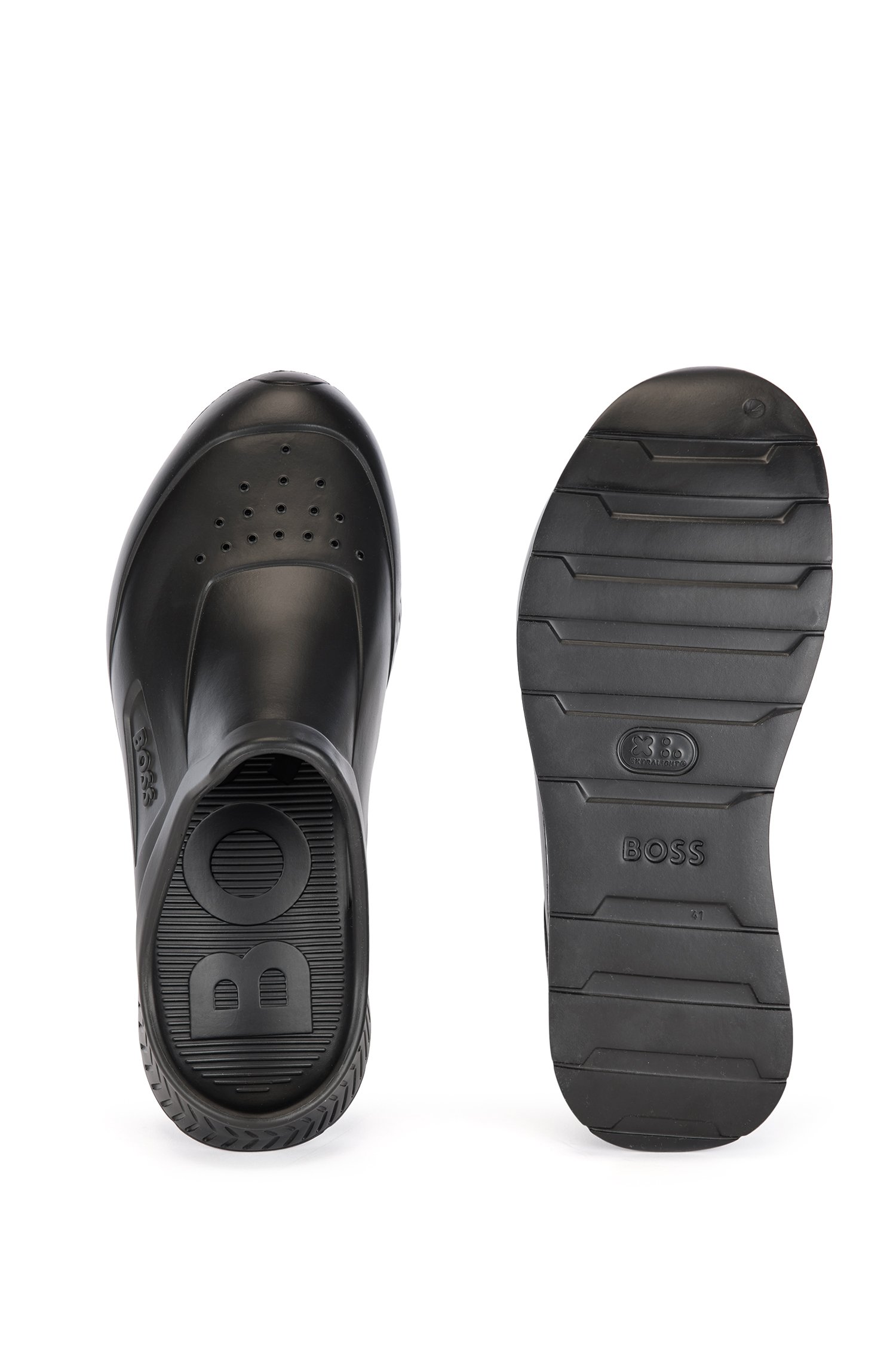 Zeitgemäße BOSS Clogs im Sneakers-Stil. Die komfortablen Herren-Sandalen sind aus einem leichten und flexiblen Material-Mix gefertigt. Eine Logo-Prägung an der Seite zeichnet das Design aus. Auf der Innensohle befindet sich ein weiteres BOSS Logo.
