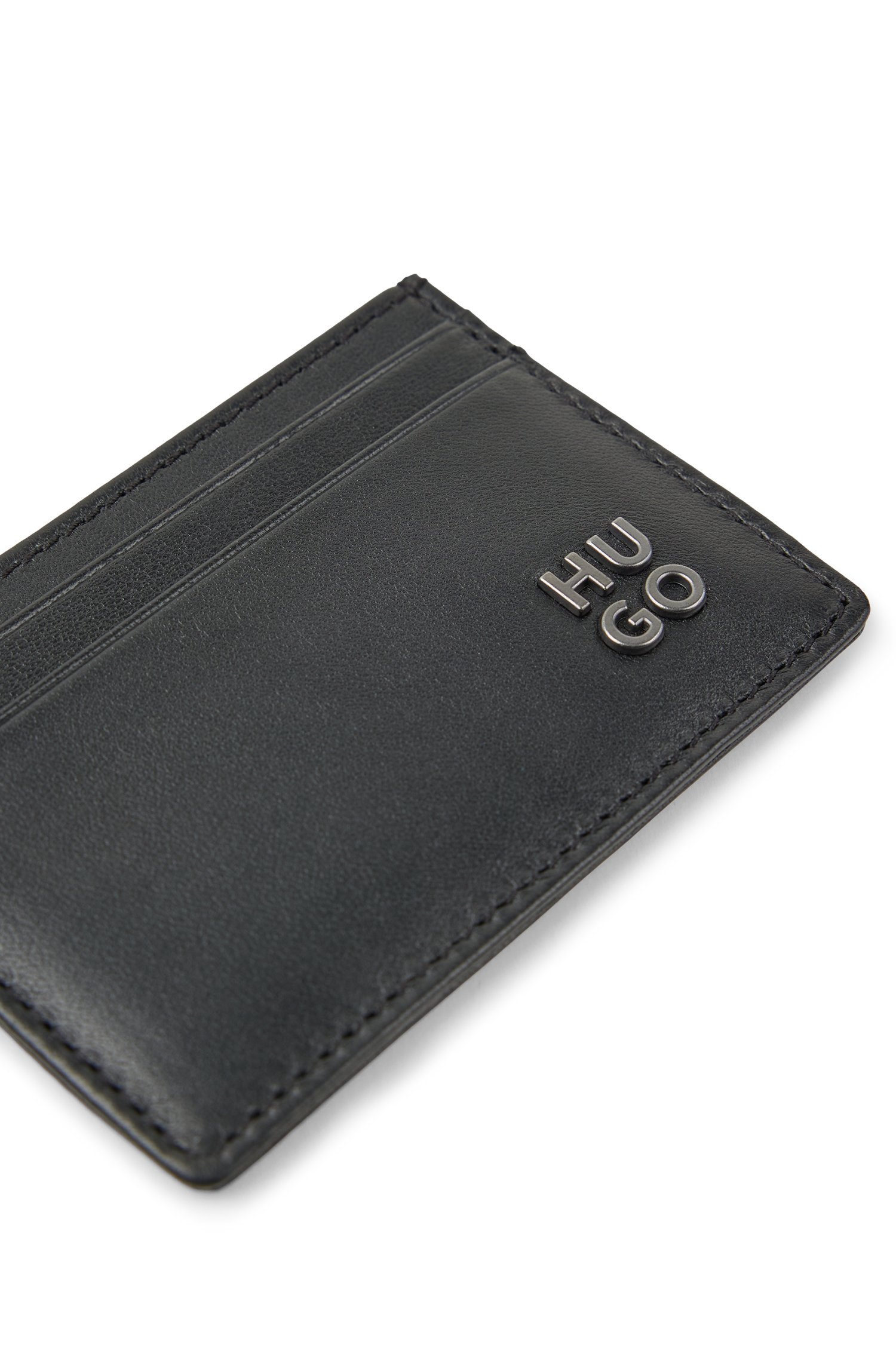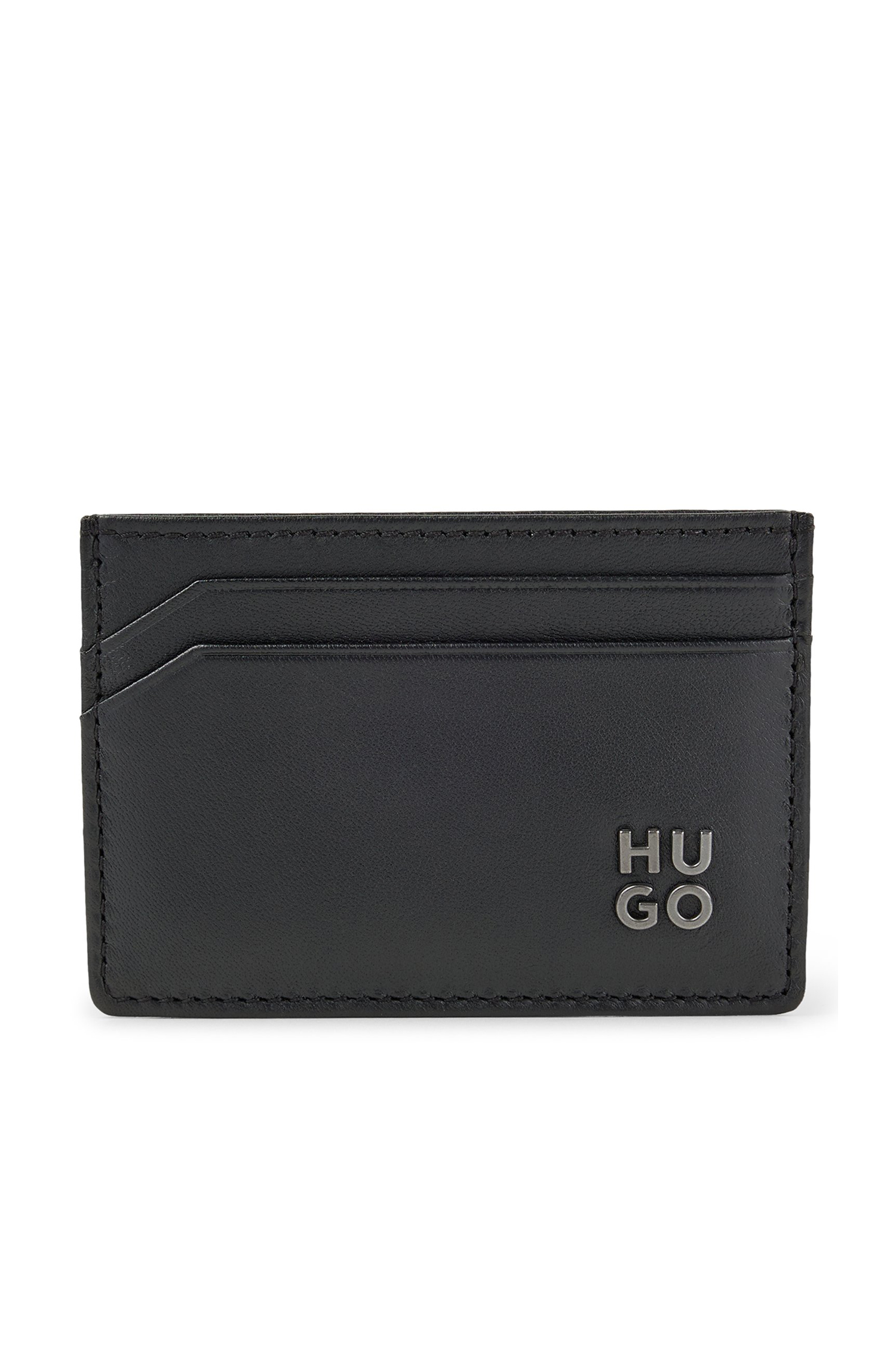Charakteristisches HUGO Kartenetui. Das kompakte Herren-Accessoire aus genarbtem Leder mit dezentem Schimmer hat ein Stack-Logo aus gebürstetem Metall.