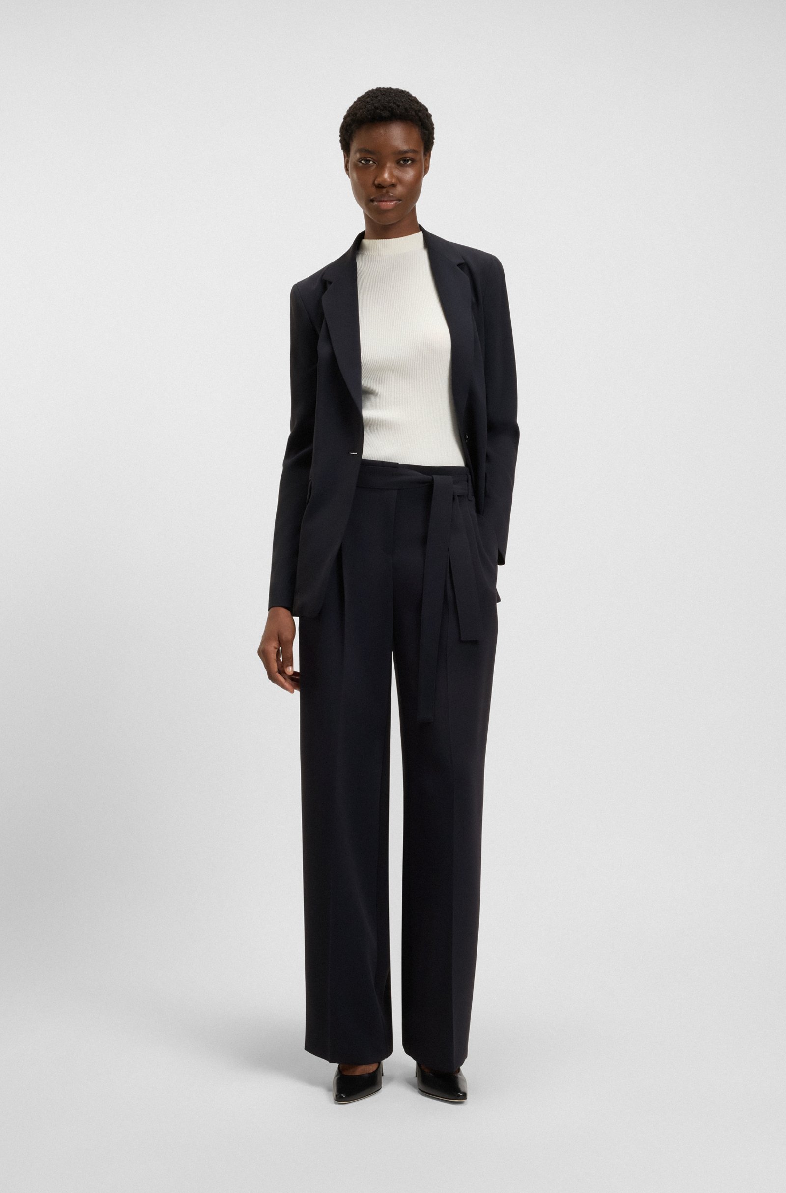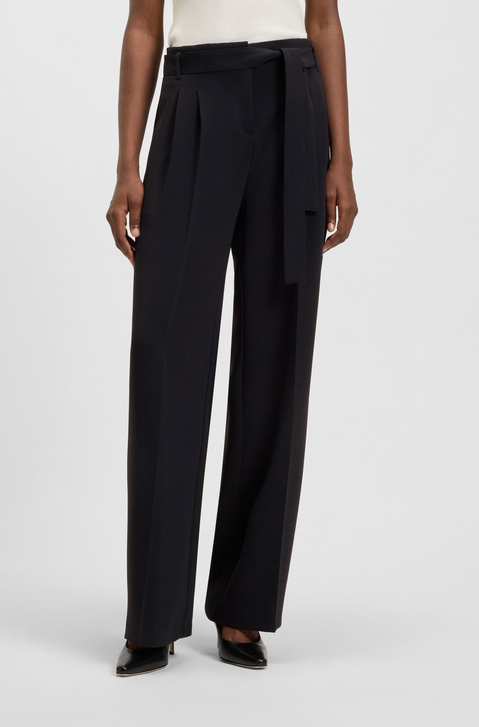 Schicke BOSS Hose aus knitterfreiem japanischem Krepp. Die locker geschnittene Hose mit weitem Beinverlauf und Gürtel ist mit Bügelfalten versehen.