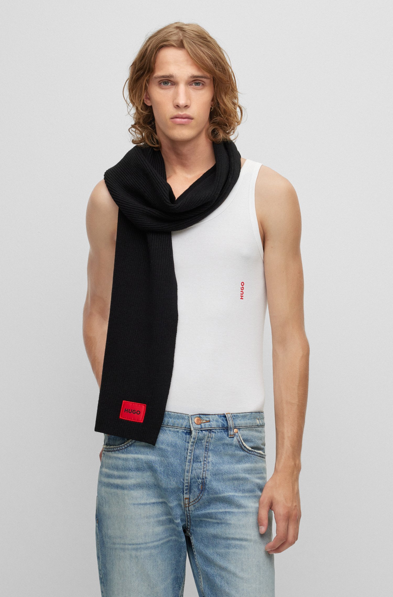 HUGO Strickschal. Das Herren-Accessoire ist aus einem soften und angenehmen Woll-Mix mit Ripp-Struktur gefertigt und mit einem Logo-Label im charakteristischen Rot versehen. Runde deine Looks mit diesem zeitgemäßen Style ab.