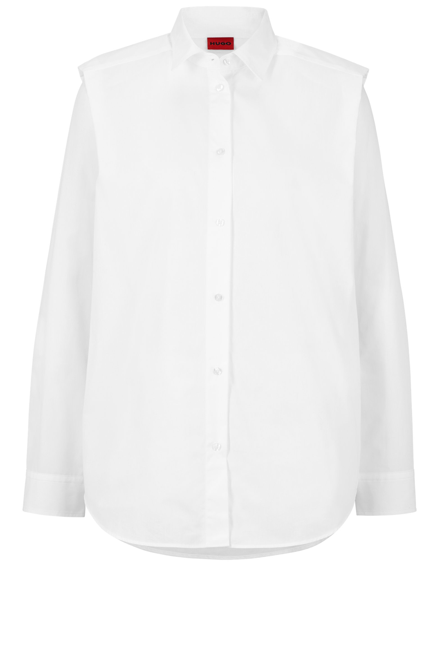 Vielseitig kombinierbare HUGO Bluse mit Spitzkragen. Die locker geschnittene Damen-Bluse aus atmungsaktivem Canvas ist an den Schultern mit zeitgemäßen Details versehen.
