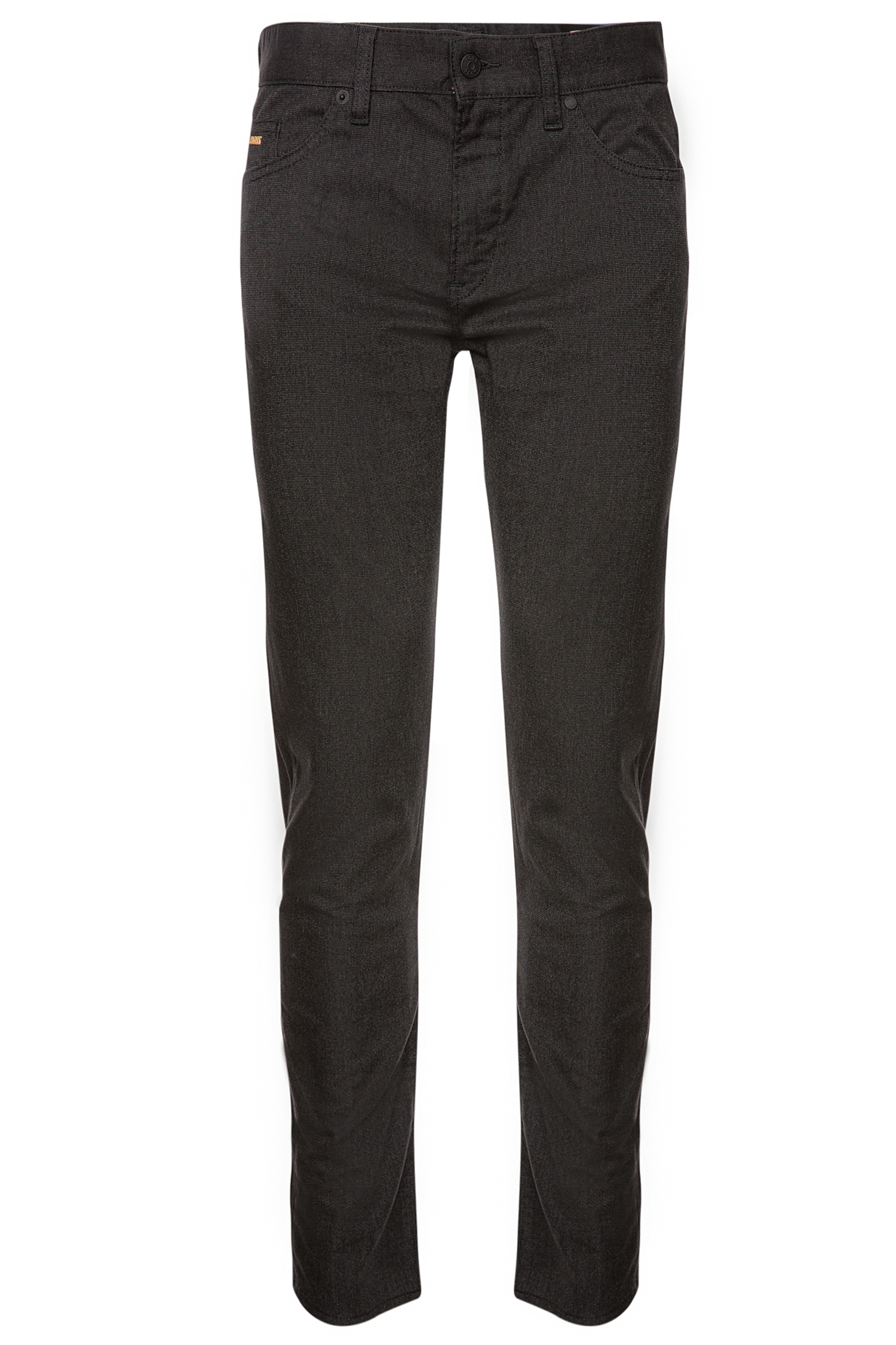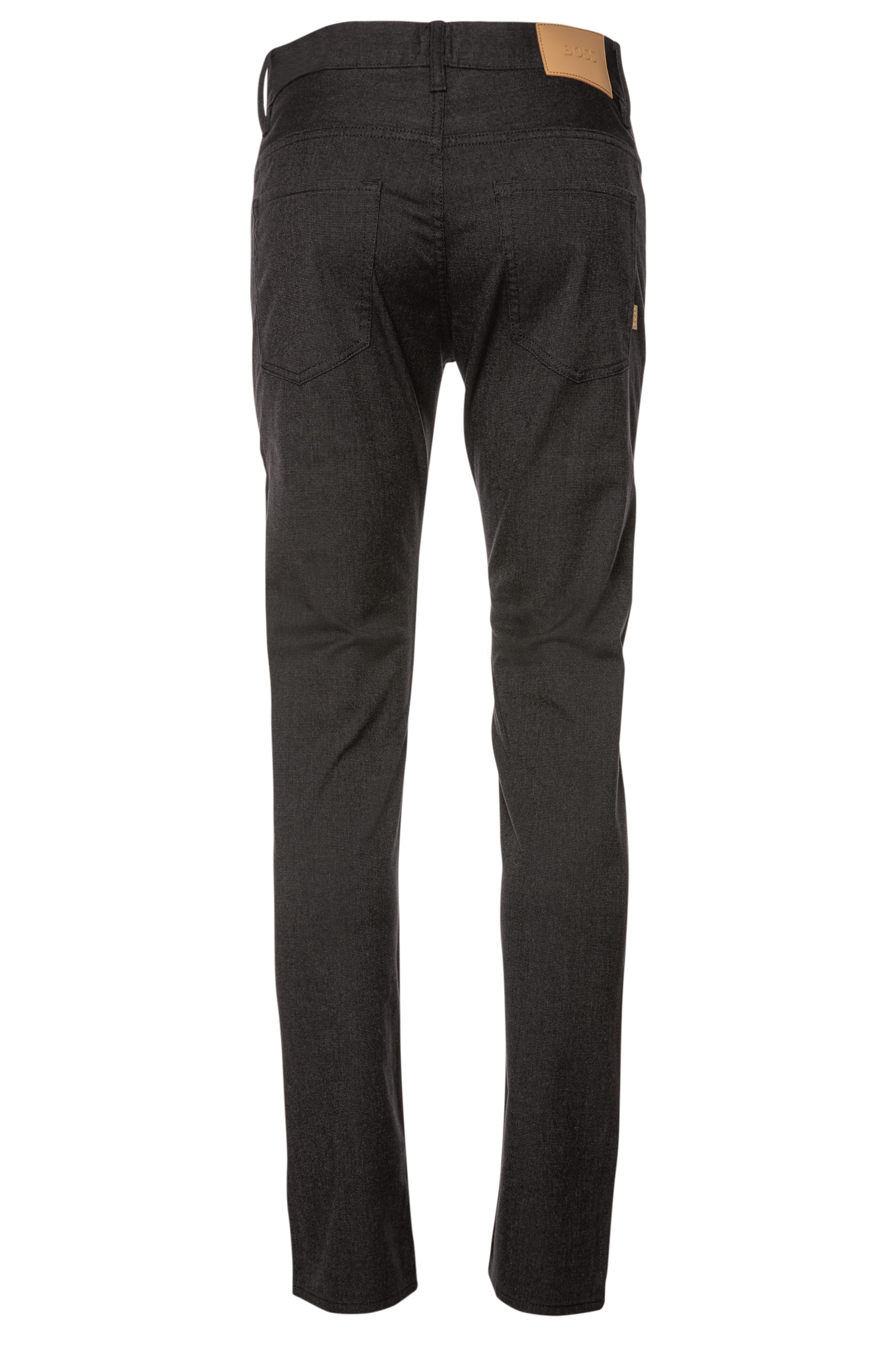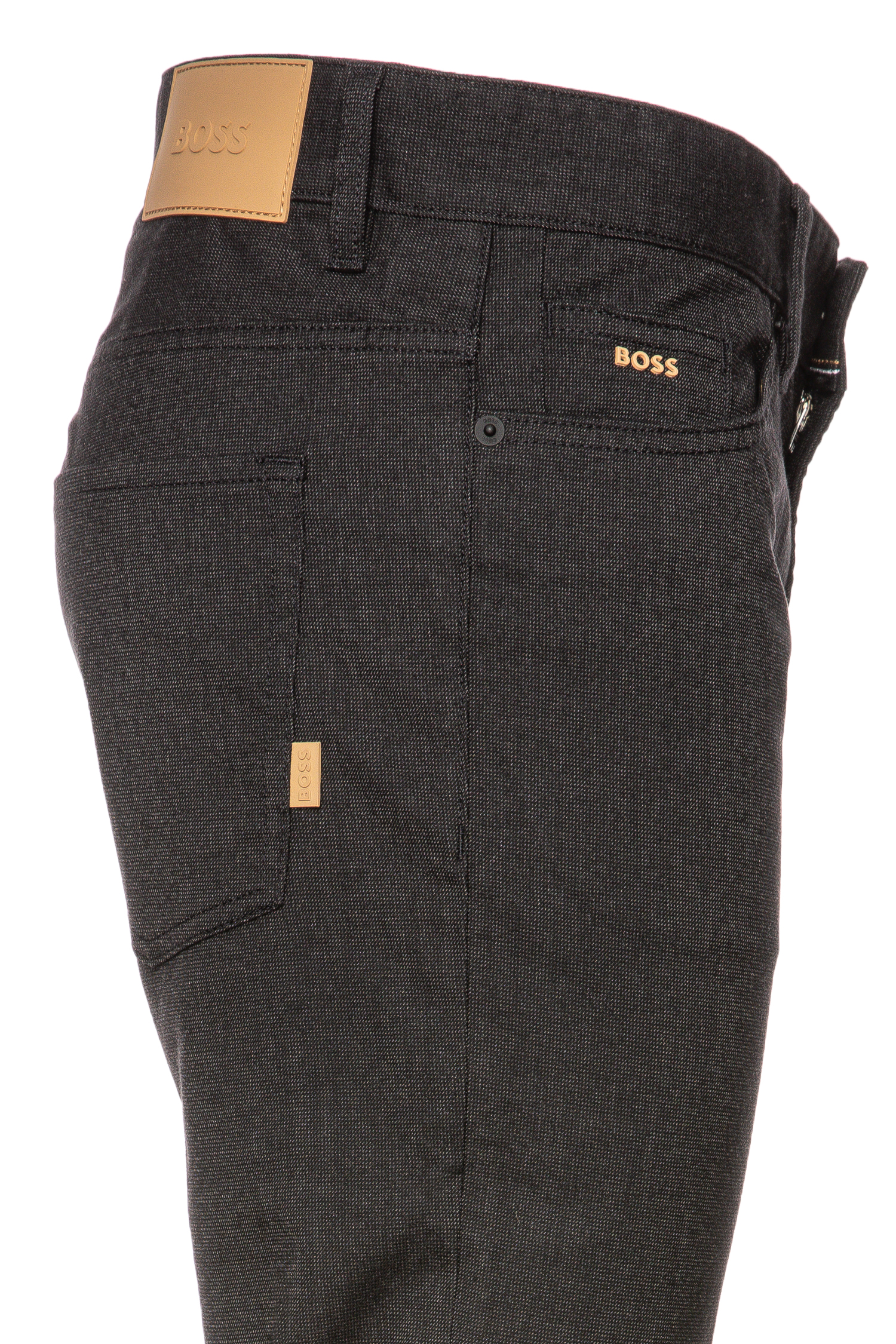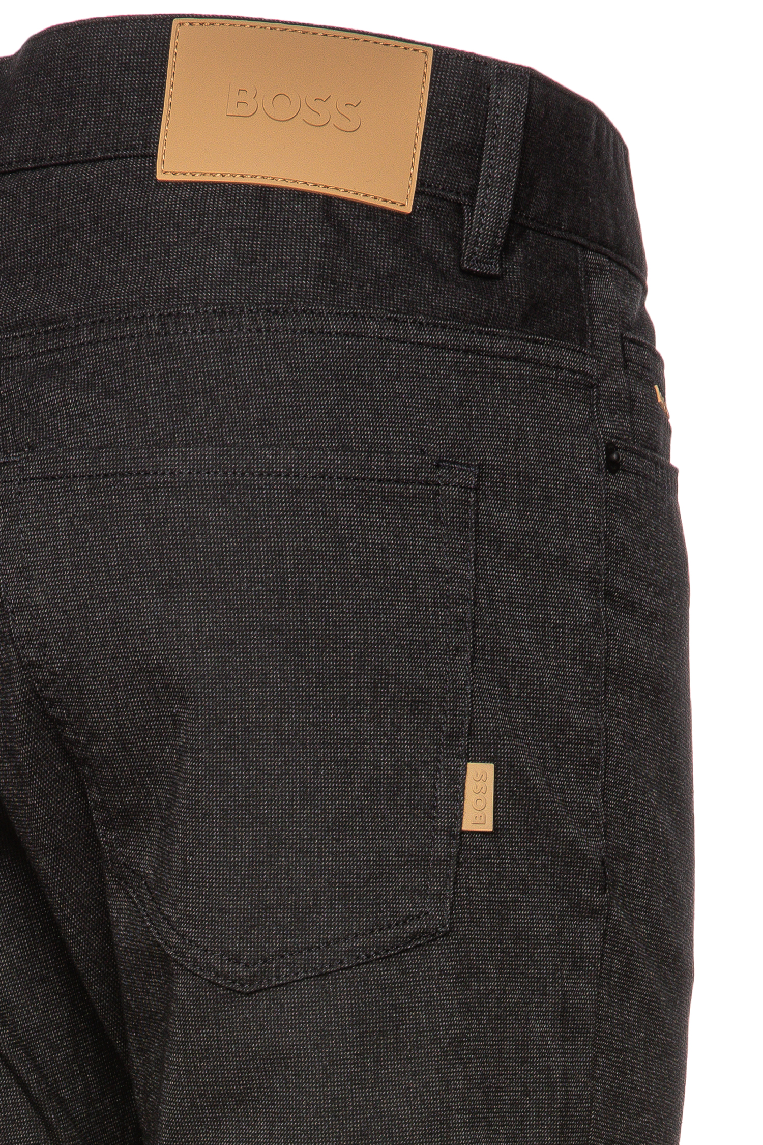 Vielseitig kombinierbare BOSS Jeans. Die schmal geschnittene Herren-Hose mit mittlerer Bundhöhe ist aus bequemem Stretch-Denim gefertigt. Ihre melierte Struktur sorgt für einen winterlichen Look. Gummierte Details runden den Style ab.