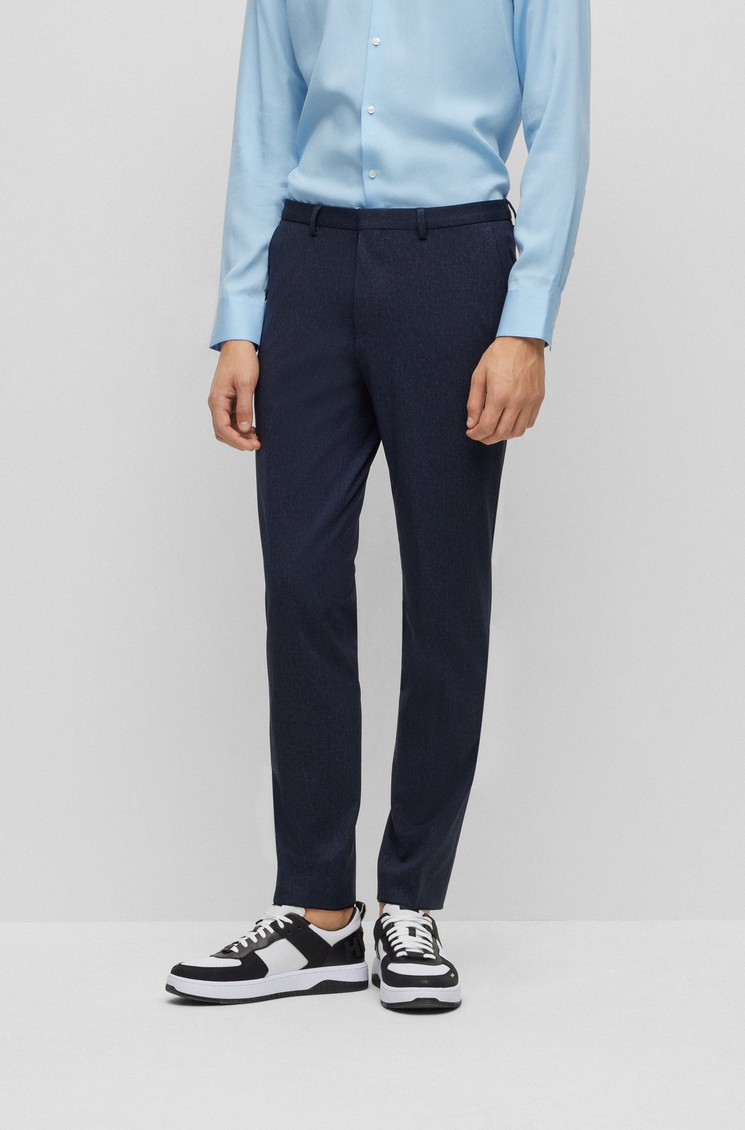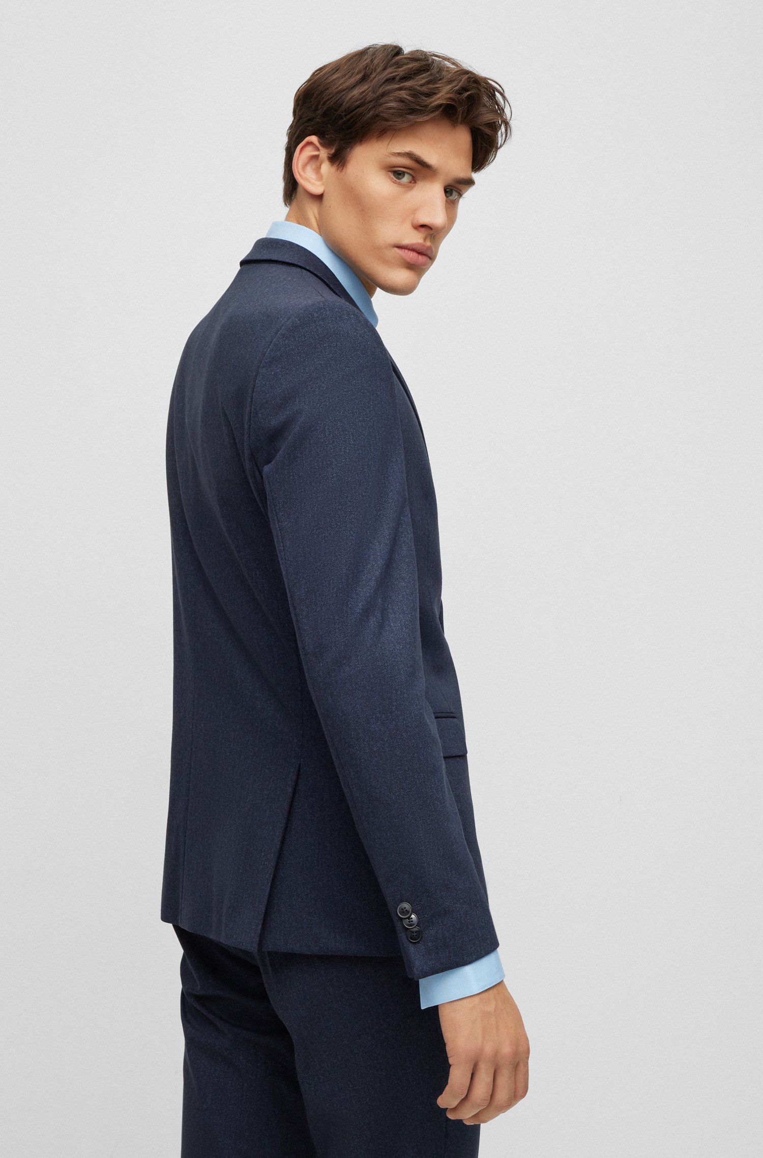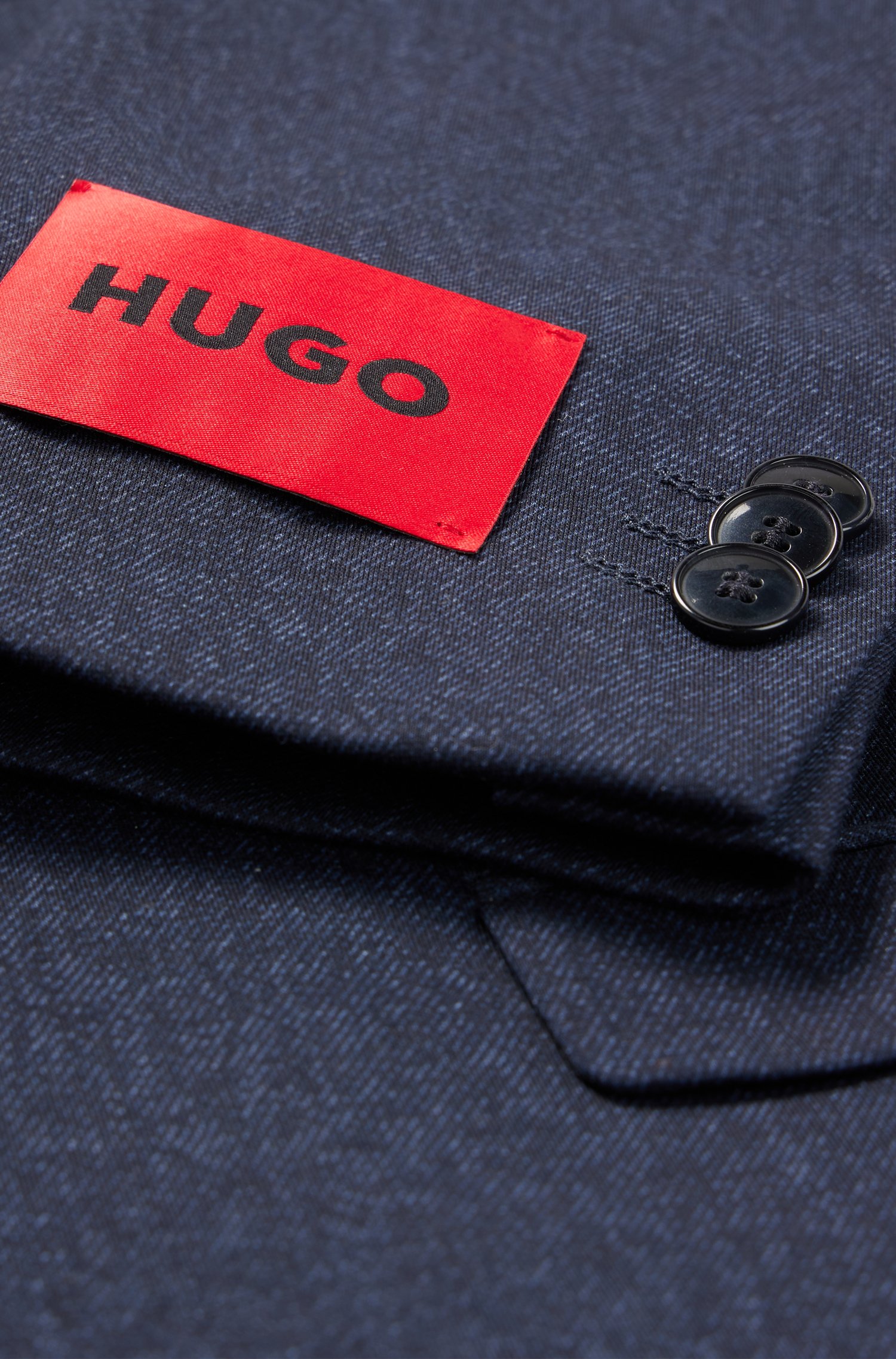 Vielseitig kombinierbarer HUGO Dreiteiler. Der formelle Herren-Anzug mit extra schmaler Passform und zeitgemäßer Silhouette ist aus einem funktionalen Stretch-Gewebe mit Allover-Muster gefertigt. Eine zweireihige Weste setzt einen progressiven Akzent.