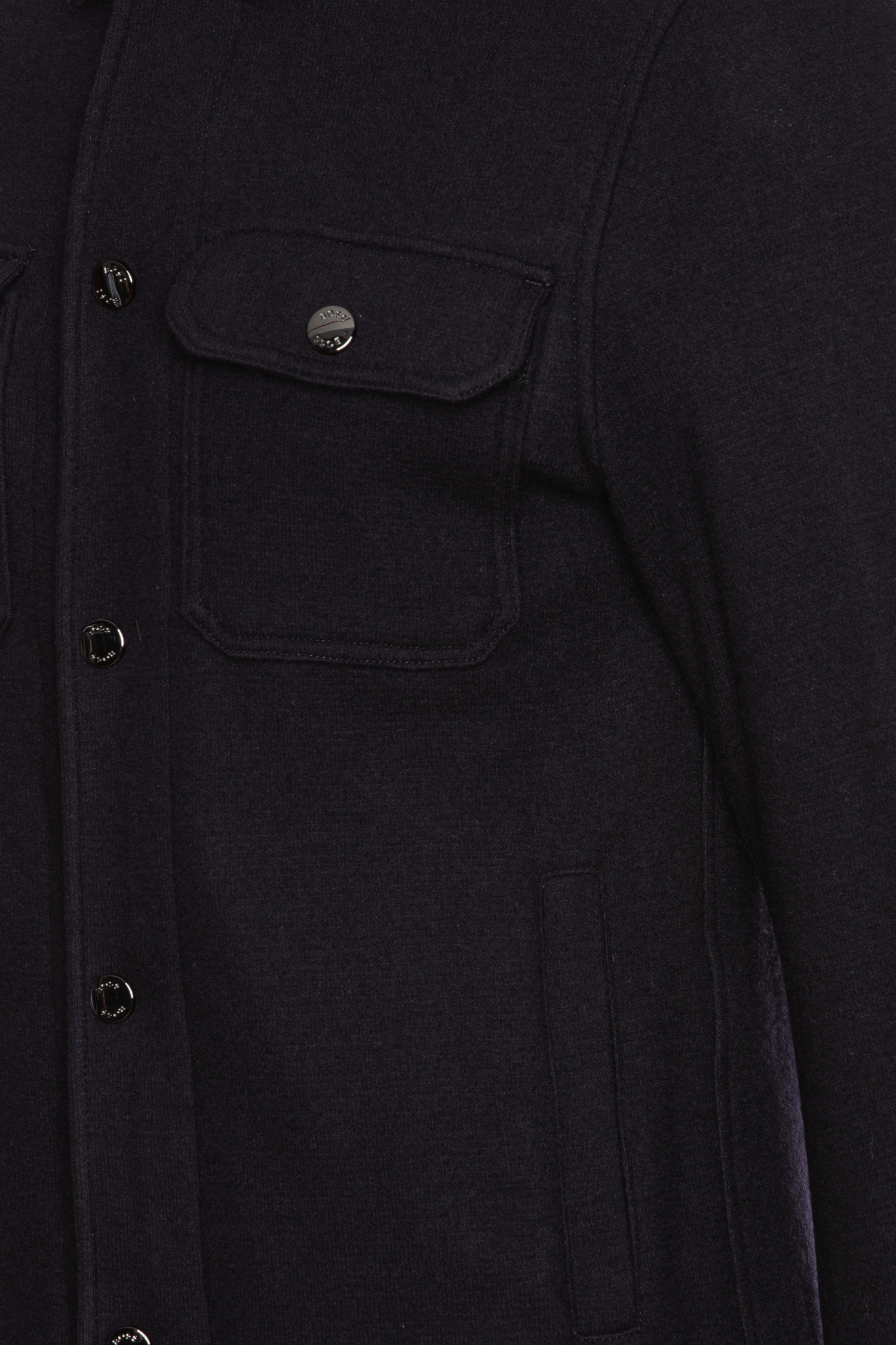 BOSS Overshirt mit langen Ärmeln. Das Herren-Shirt aus Stretch-Jersey ist aus einem Schurwoll-Mix mit dezentem Muster gefertigt. Dank lockerer Passform lässt es sich leicht über andere Layer ziehen. Logo-Druckknöpfe und Pattentaschen auf der Brust runden den Style ab.