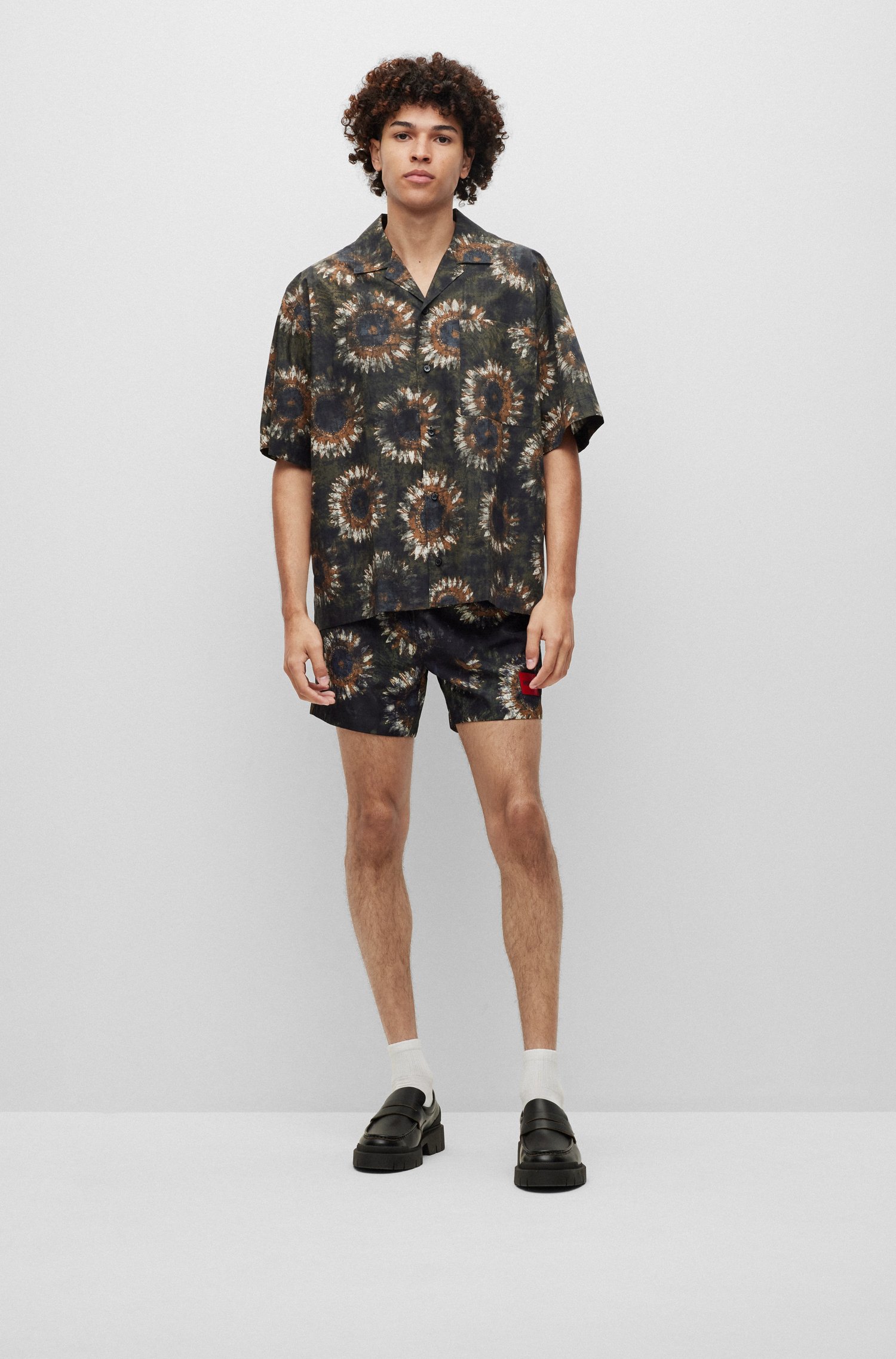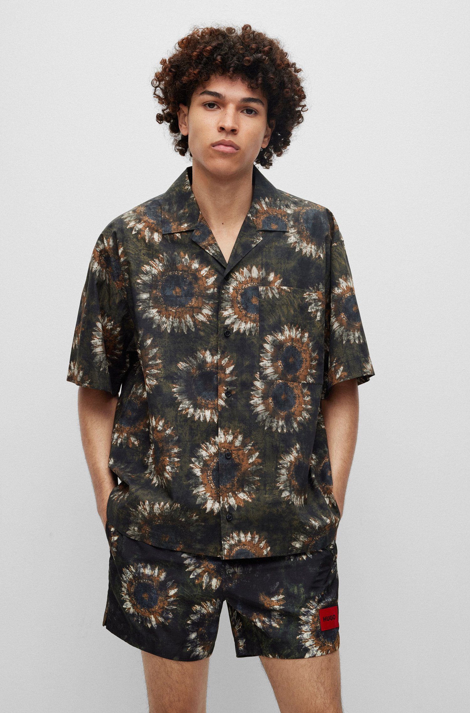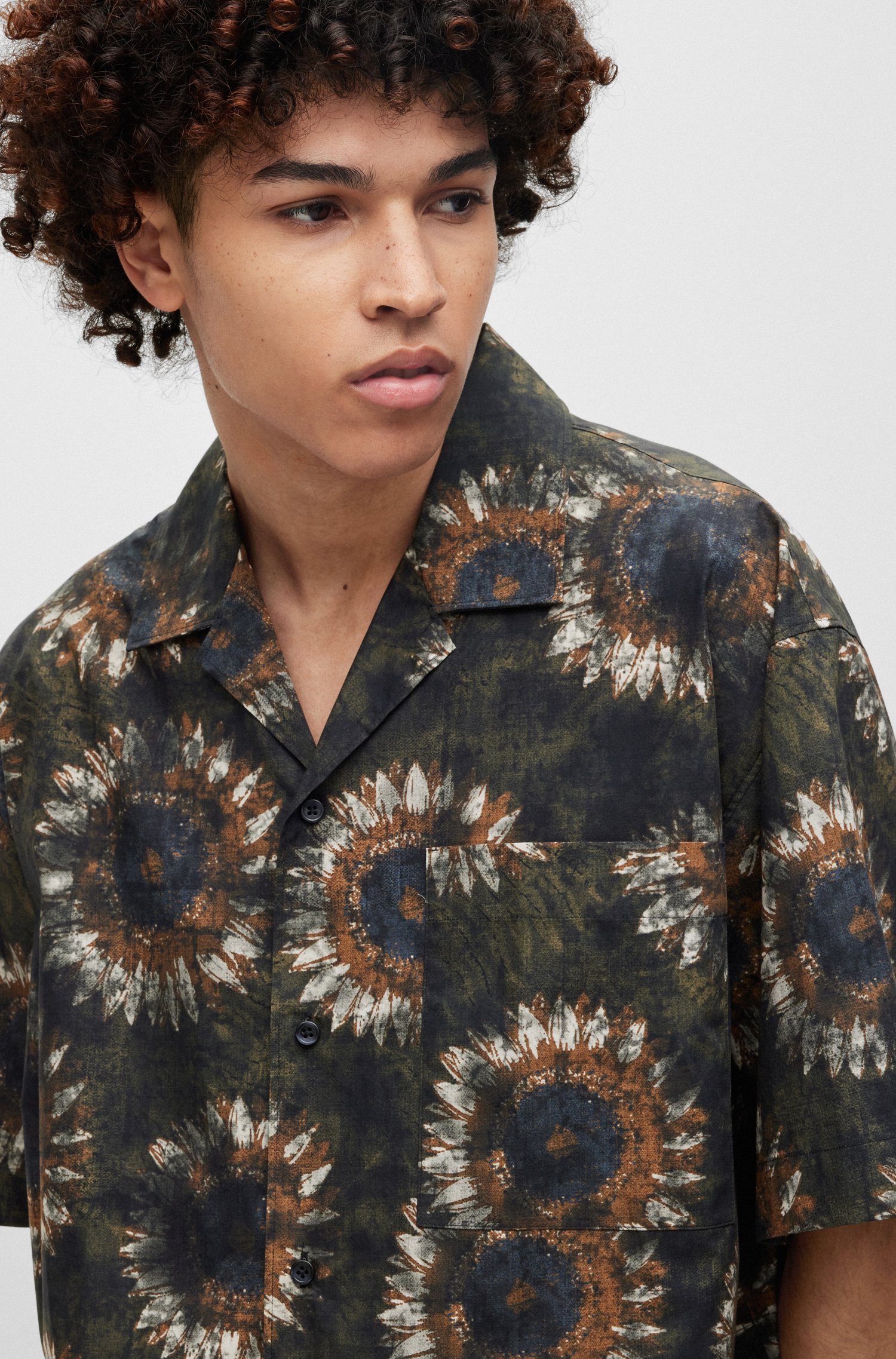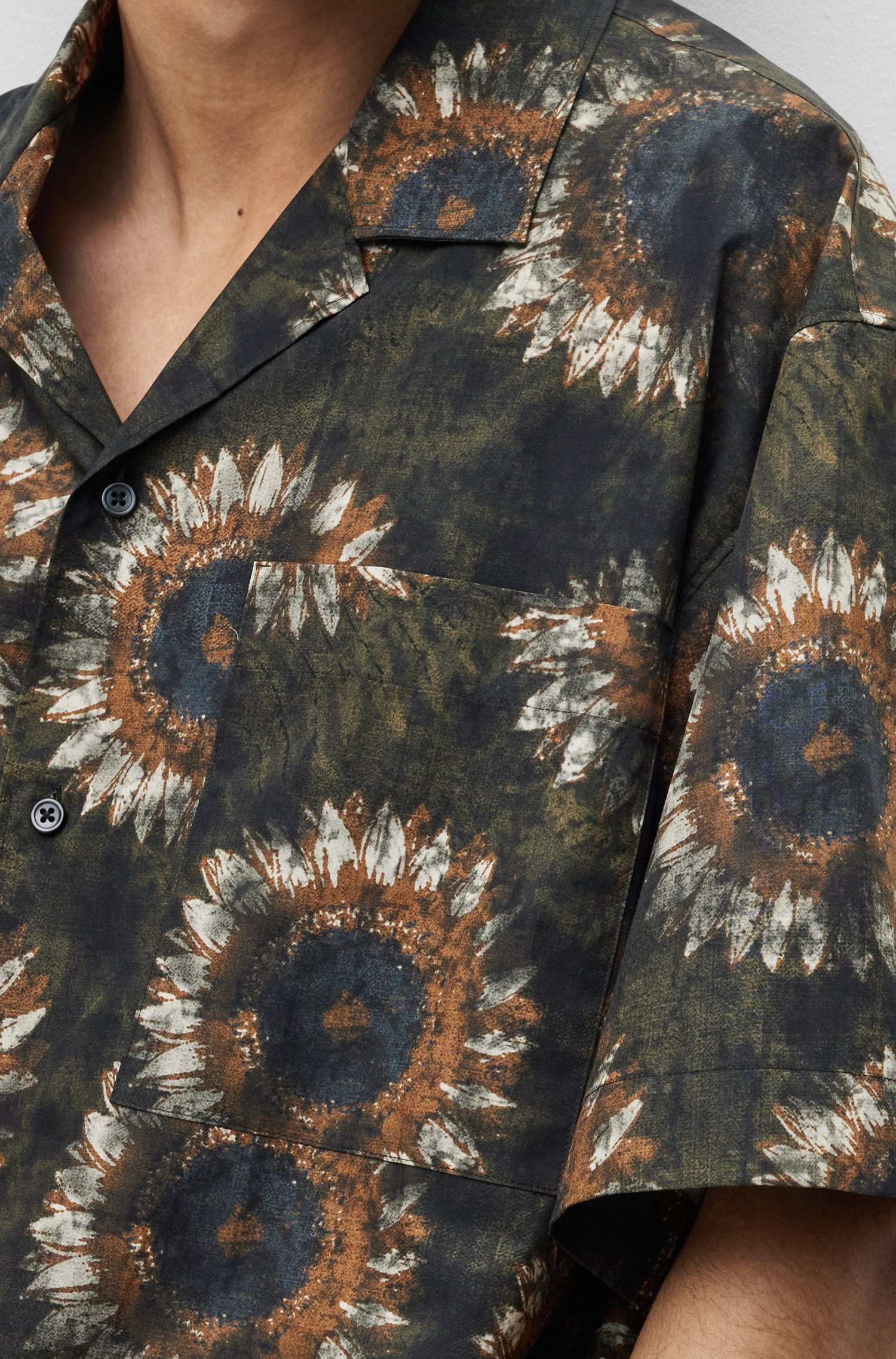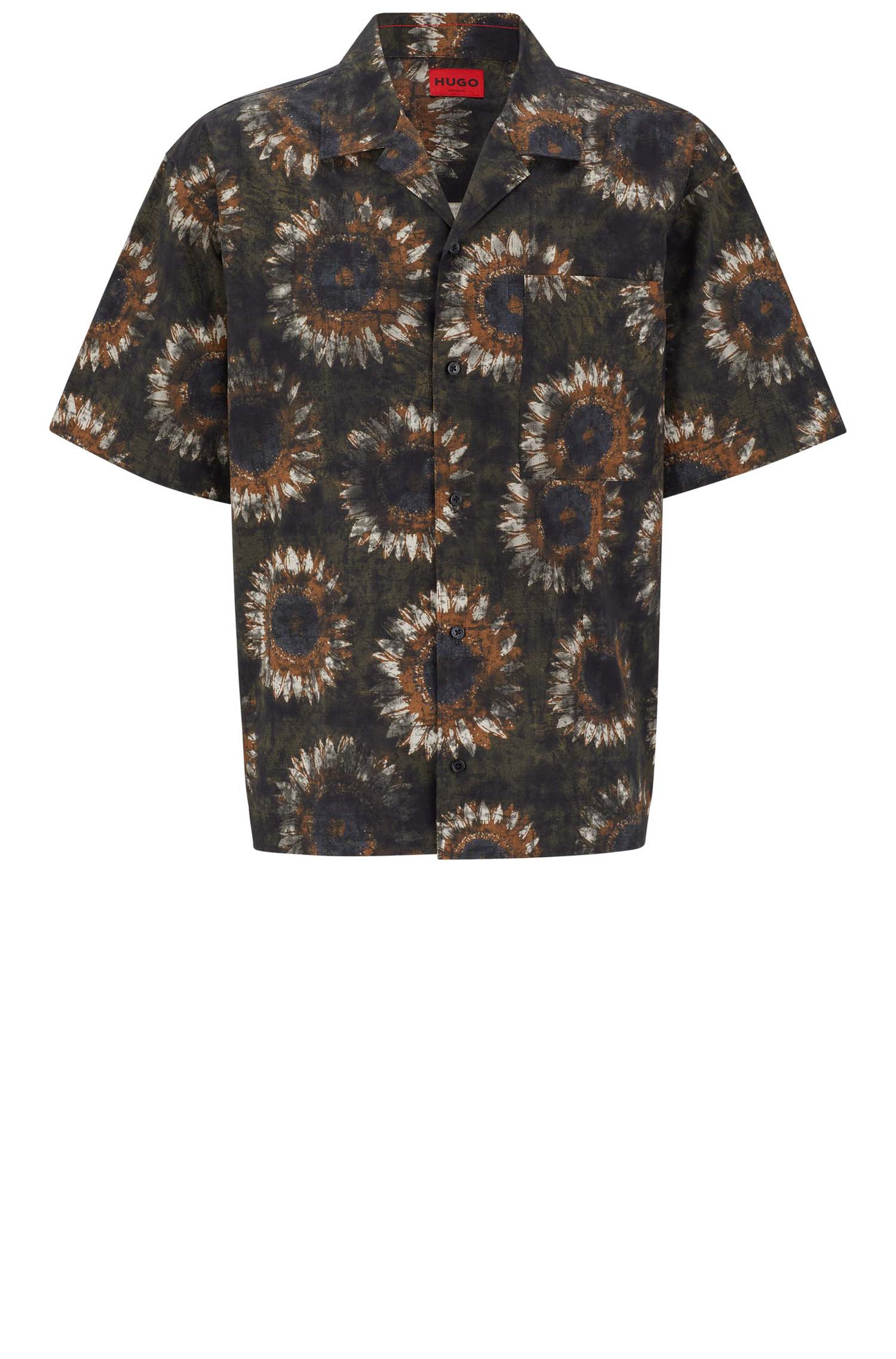 HUGO Kurzarm-Hemd aus Baumwolle mit Paper-Touch-Finish, Oversize-Passform und abstraktem Blumen-Print.