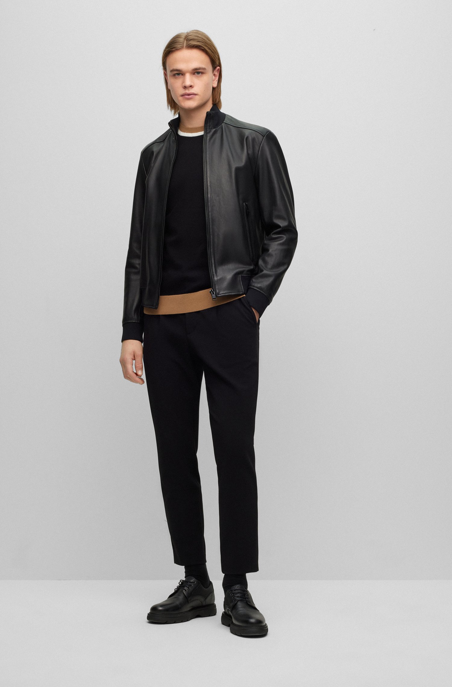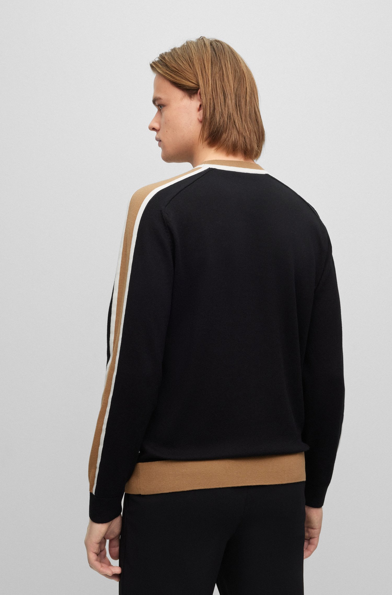 Sommerlich leichter BOSS Pullover mit gerader Passform, der sich durch Ärmel und Details im Colour-Block-Design auszeichnet.
