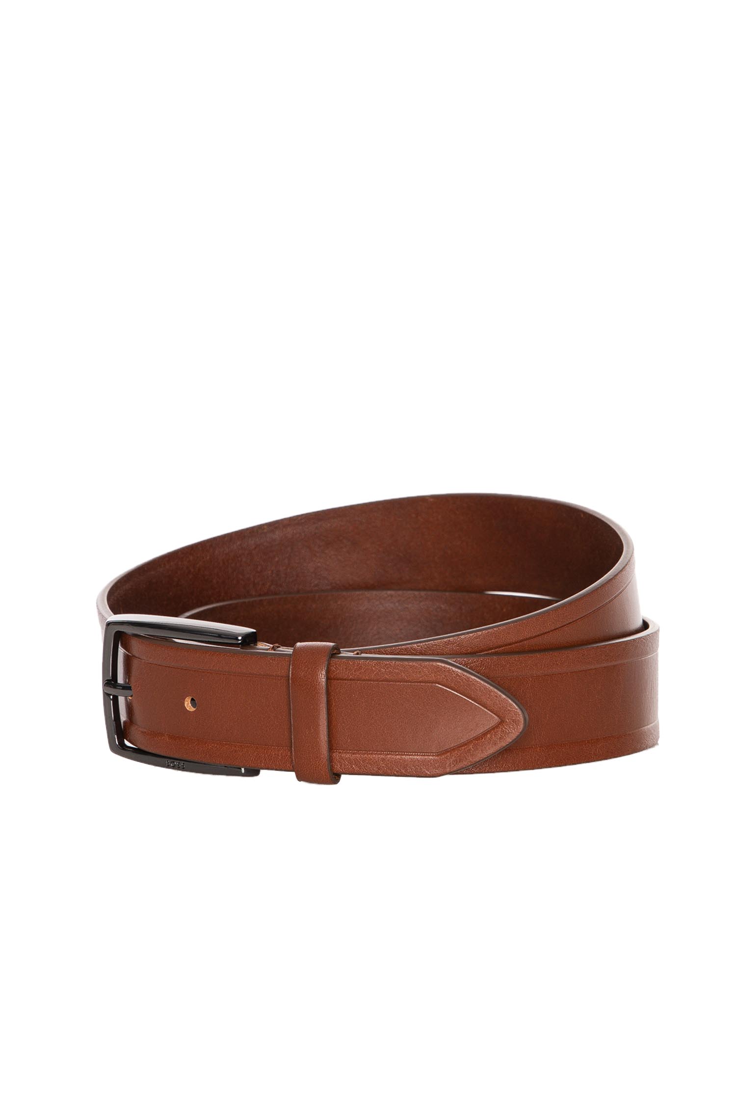 In Italien gefertigter BOSS Gürtel mit 3,5 Zentimetern Breite. Das Herren-Accessoire aus edlem italienischem Leder ist für ein charaktervolles Finish pflanzlich gegerbt. Sein strukturierter Riemen greift den Look der neuen Saison auf. Eine BOSS Logo-Gravur auf der metallenen Dornschließe rundet das Design ab. Für eine optimale Passform sollte der Gürtel eine Größe größer als dein Taillenumfang sein.