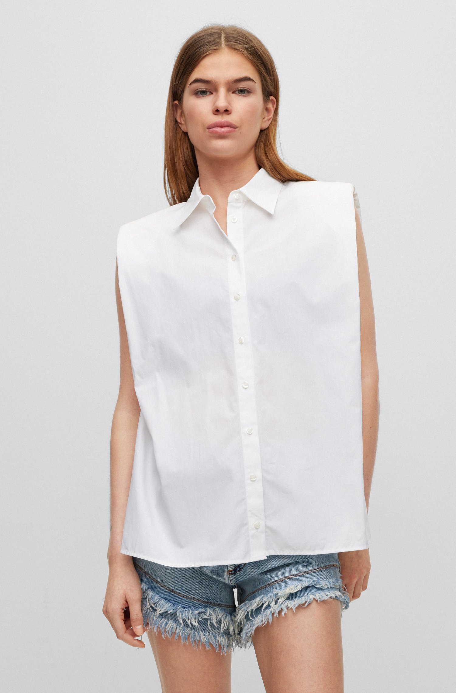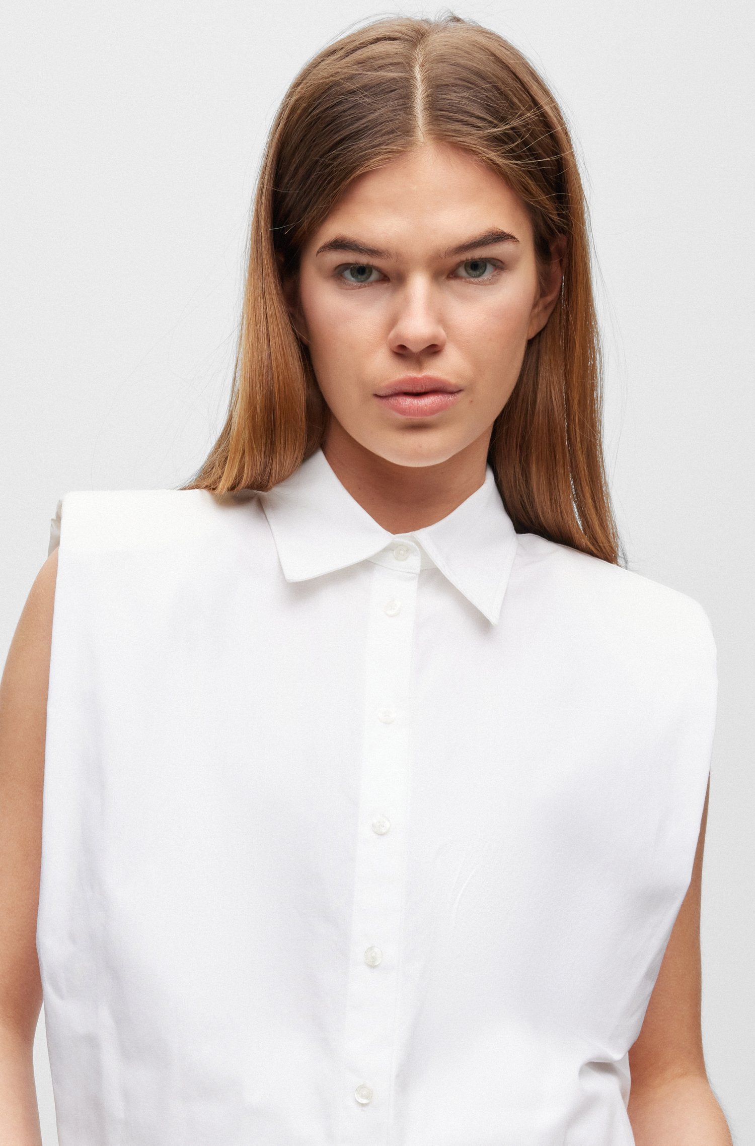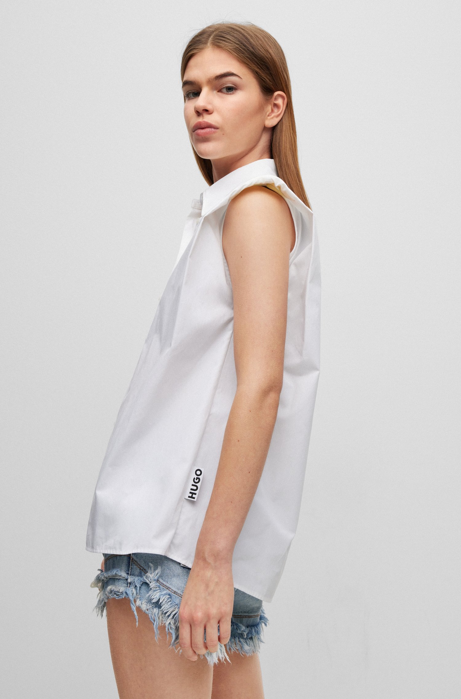 Zeitgemäße HUGO Bluse ohne Ärmel mit lockerer Passform und Spitzkragen.