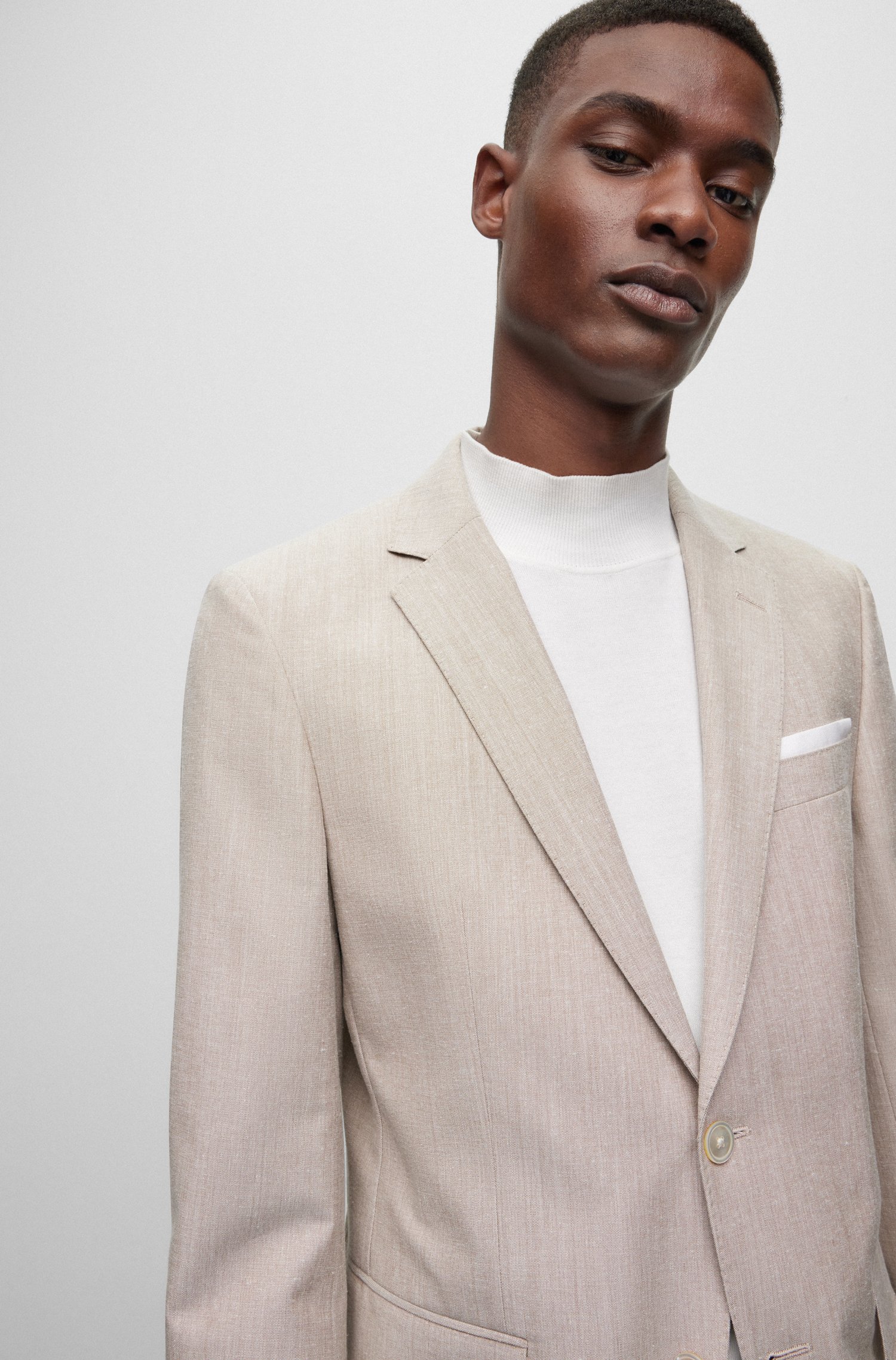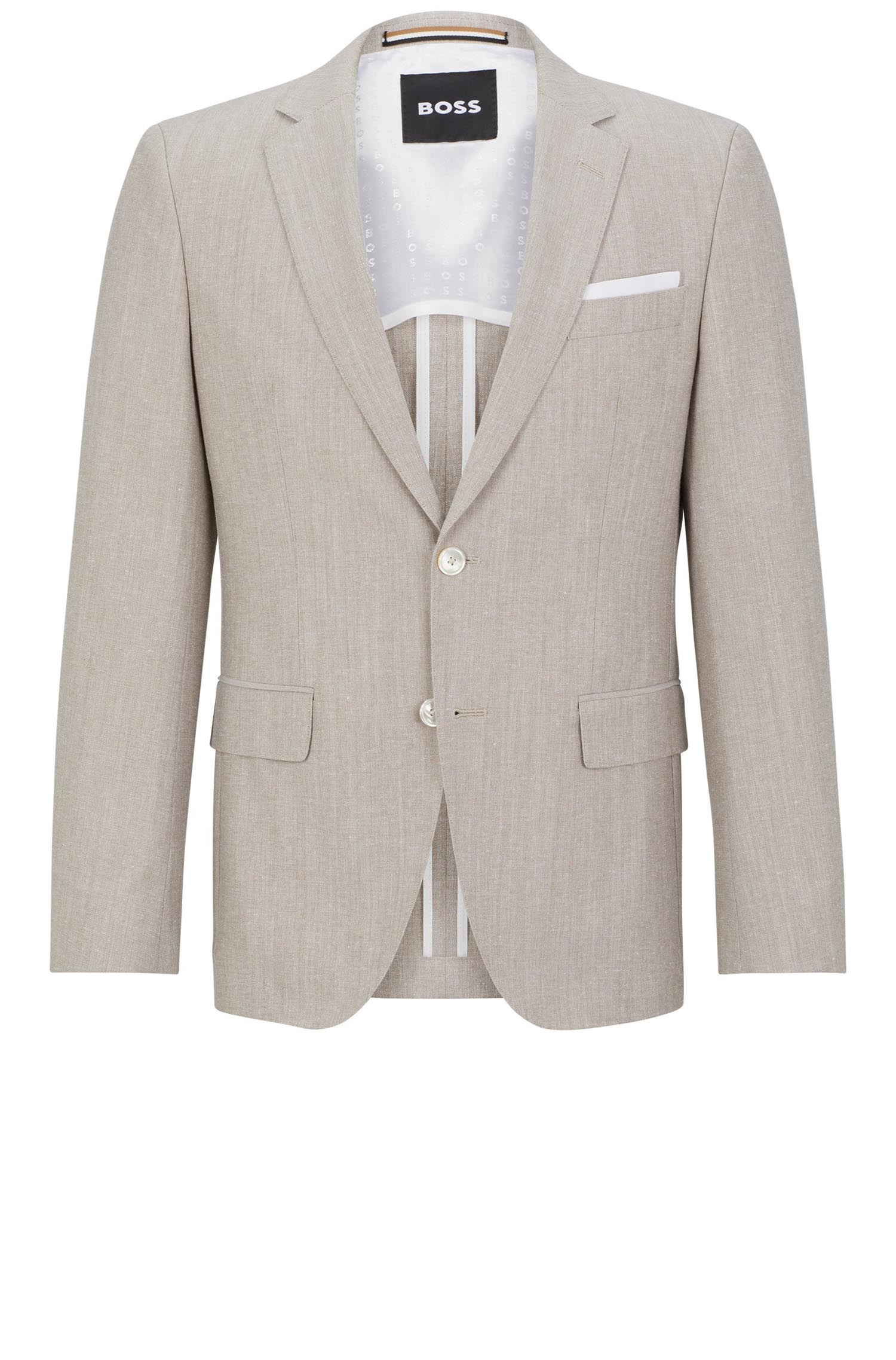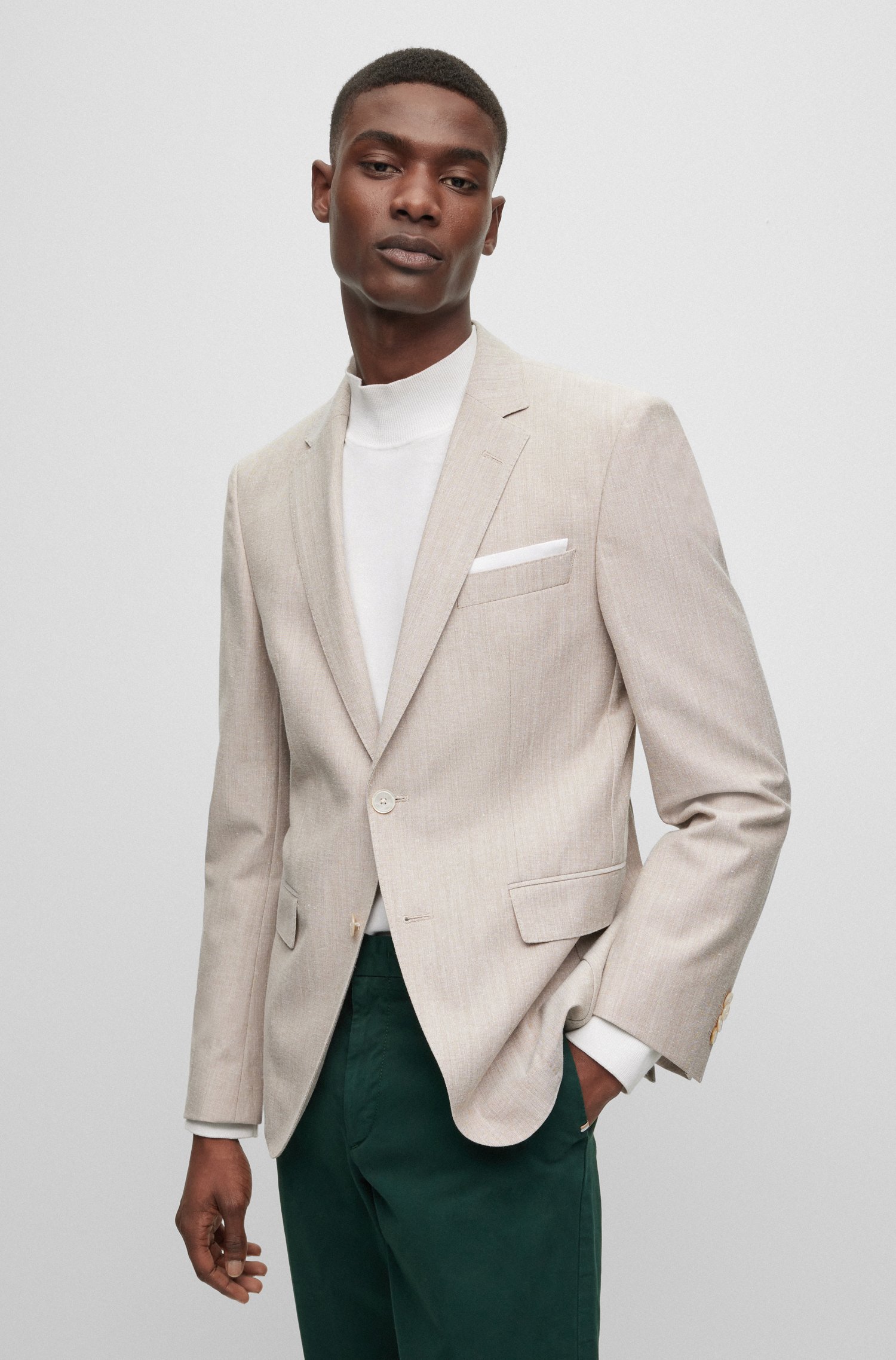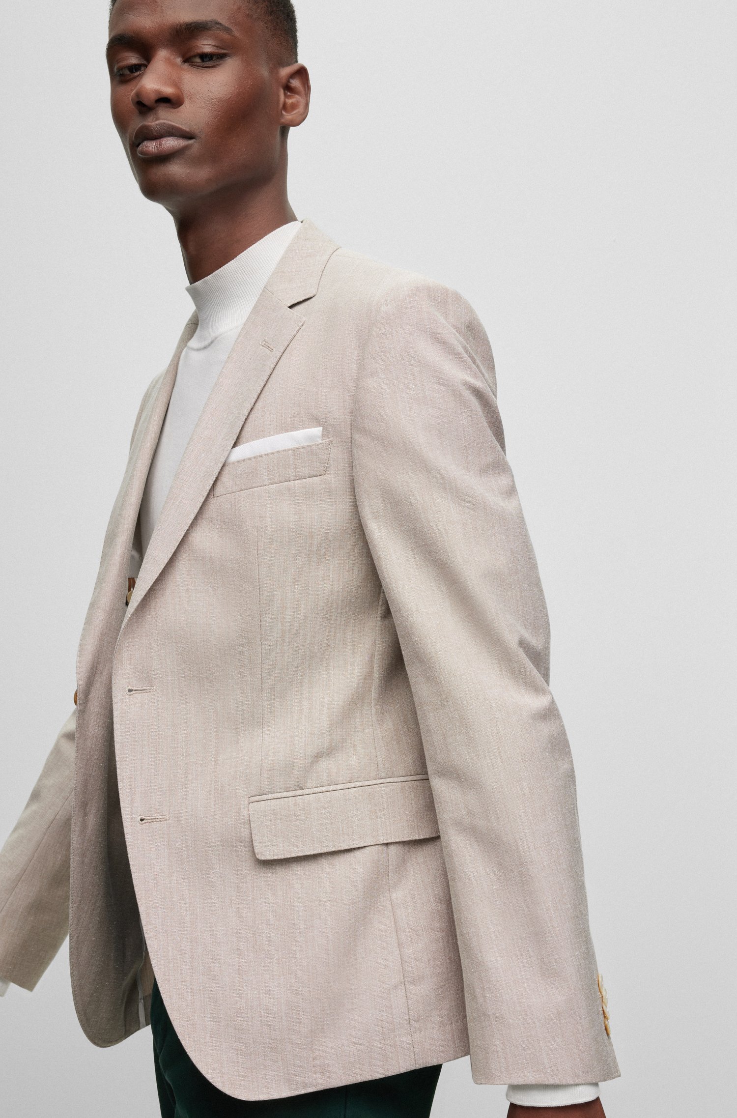 Schmal geschnittener BOSS Herren-Einreiher aus einem gemusterten Baumwoll-Mix mit Schurwoll- und Elasthan-Anteil.
