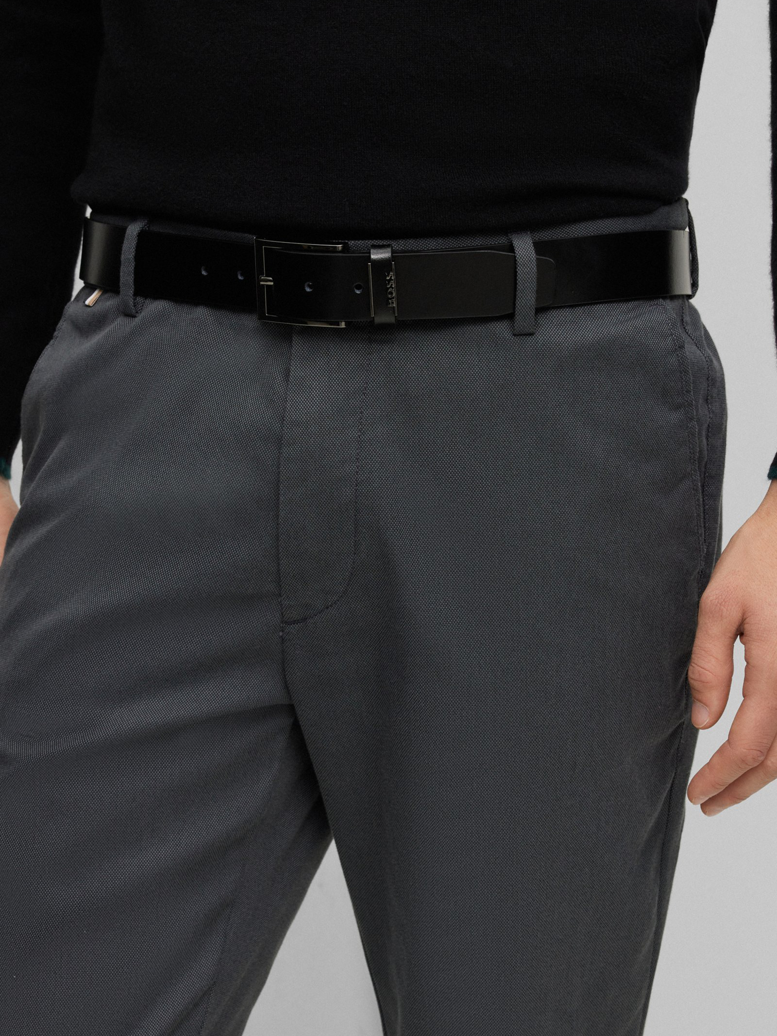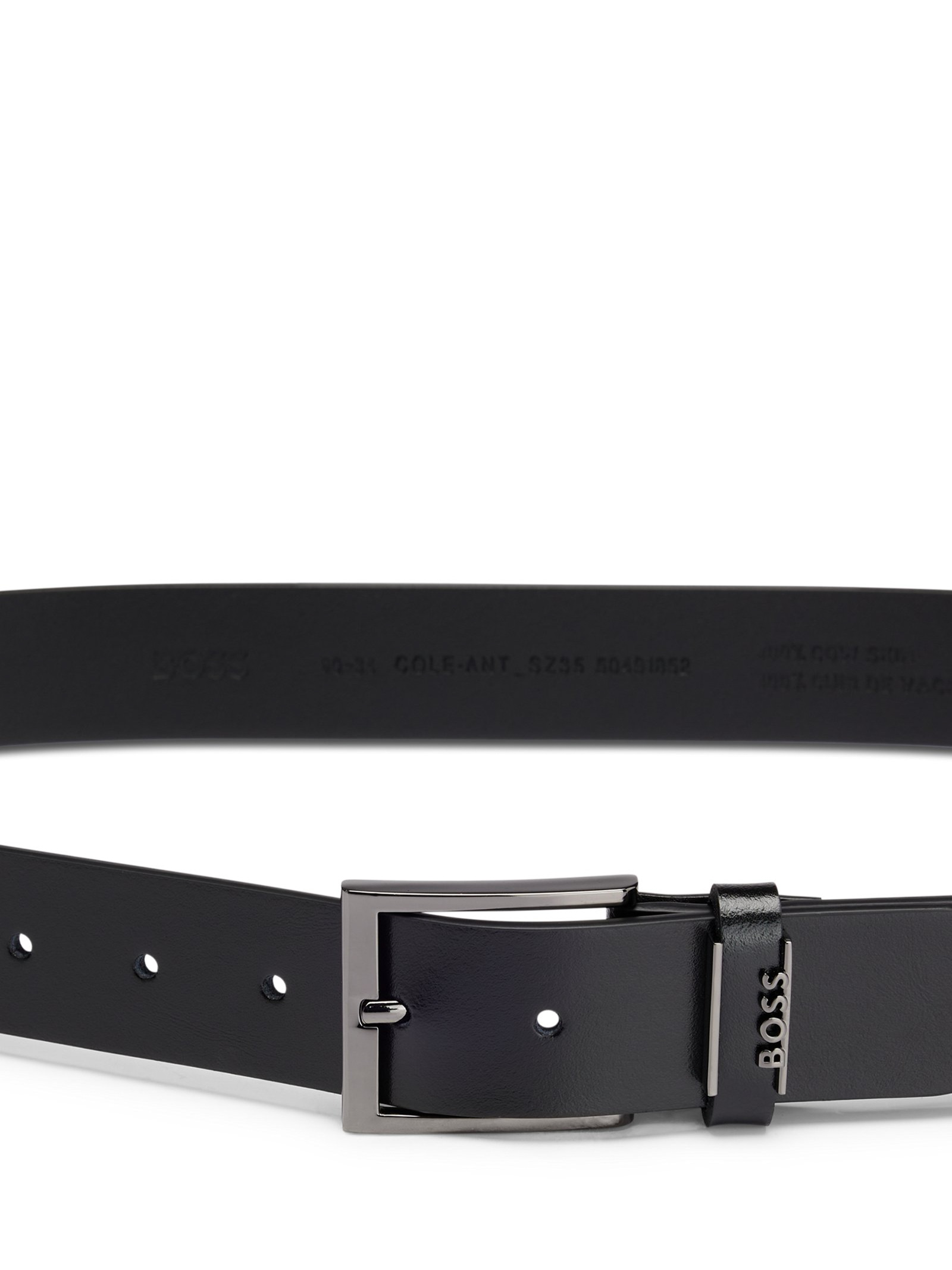 Edler BOSS Gürtel mit 3,5 Zentimetern Breite, der in Italien aus italienischem Leder gefertigt wird und mit einer Gürtelschlaufe mit Metall-Logo ausgestattet ist. Für eine optimale Passform sollte der Gürtel eine Größe größer als dein Taillenumfang sein.