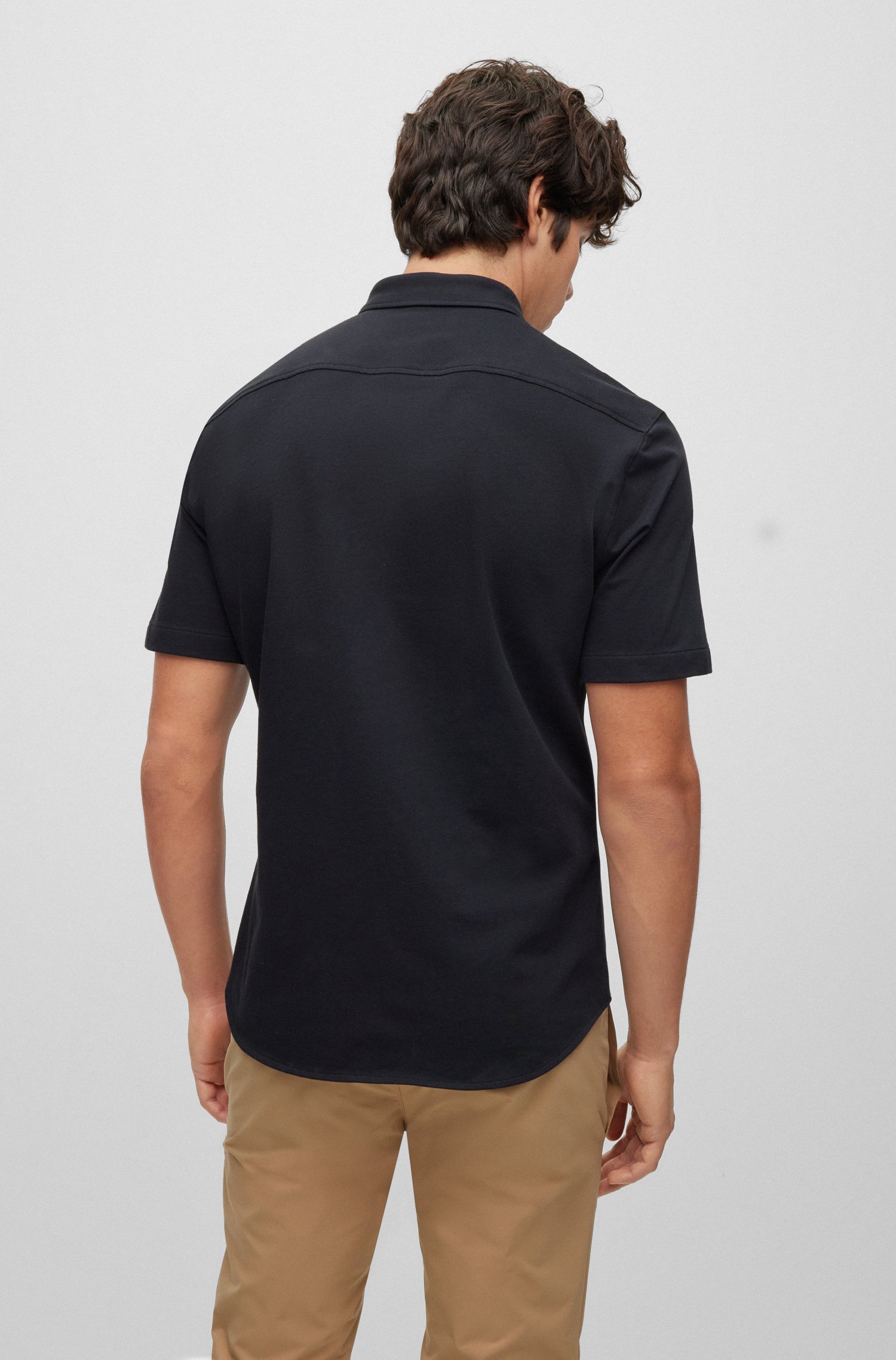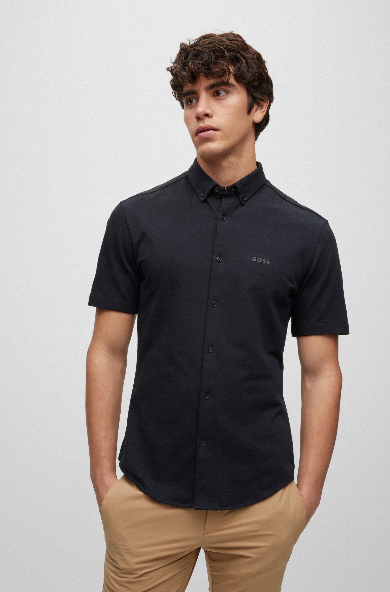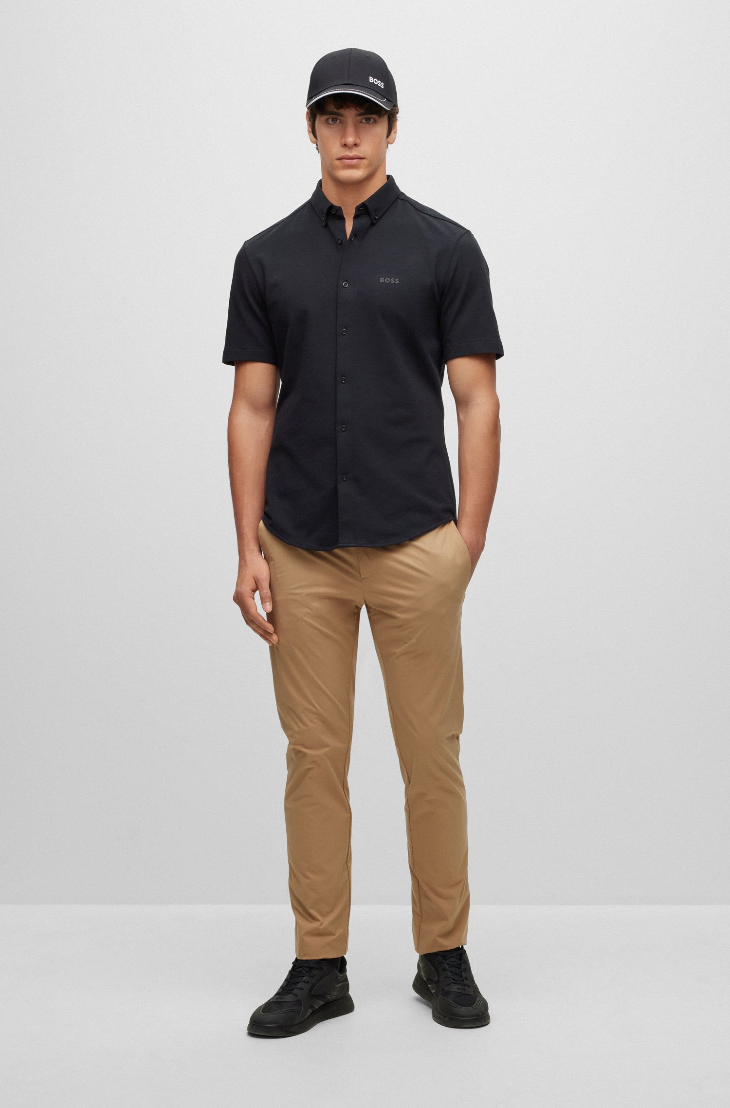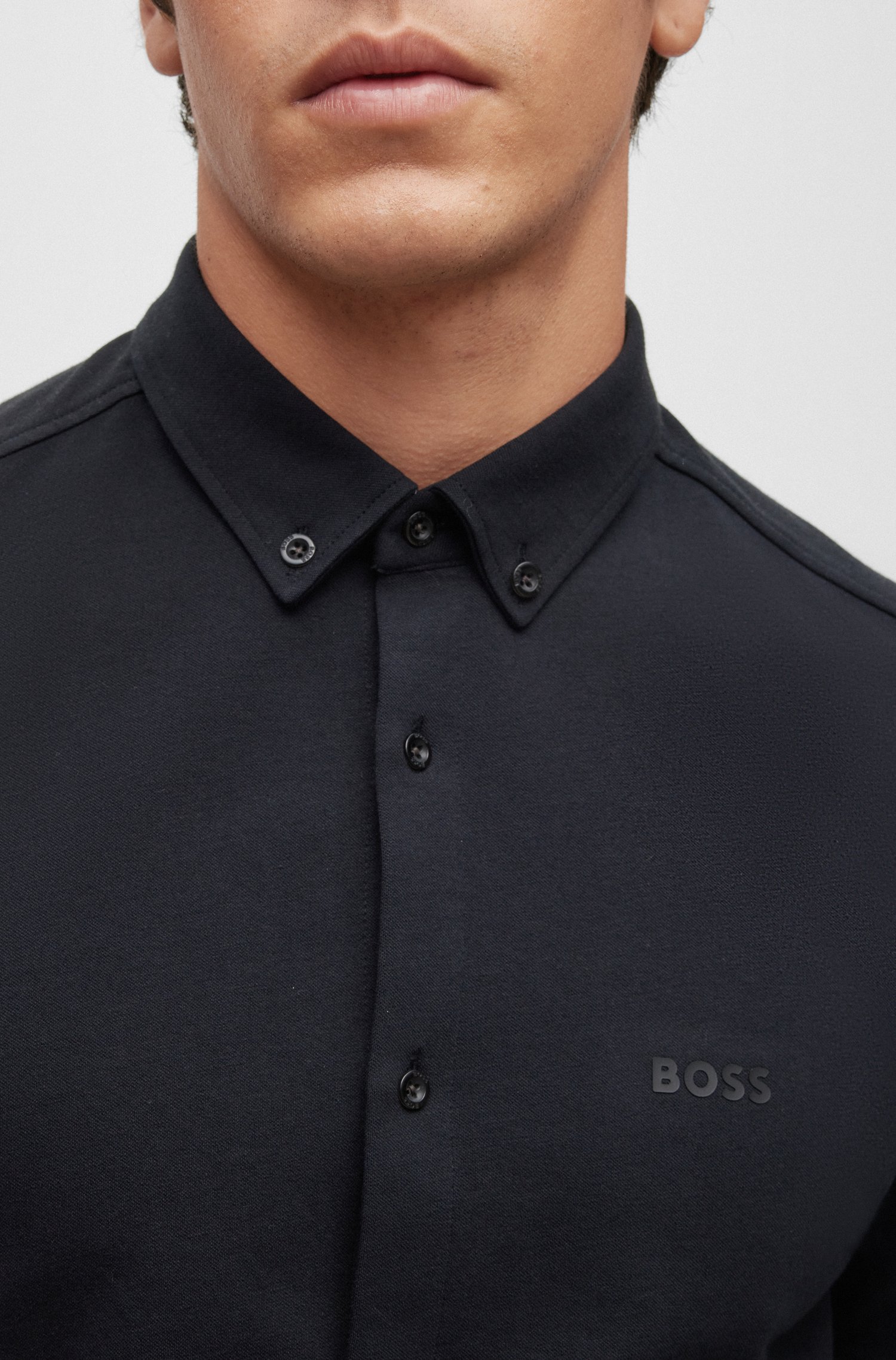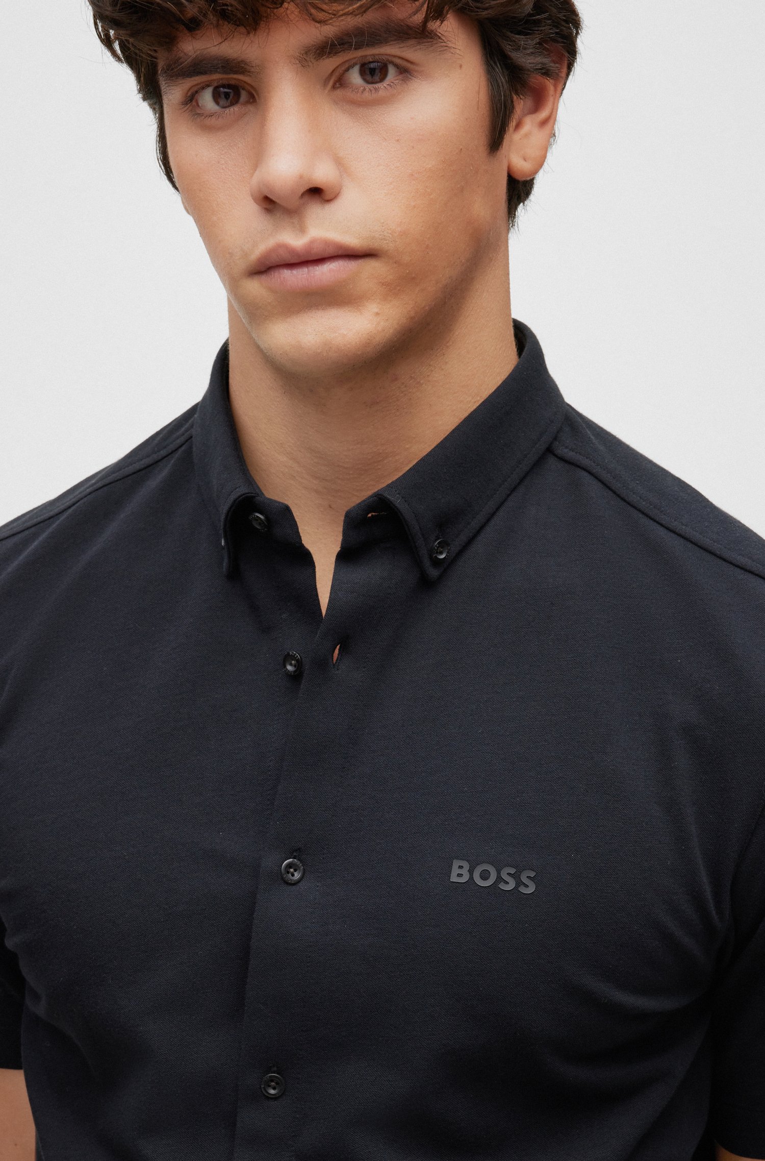 Gerade geschnittenes BOSS Herren-Hemd aus einem feuchtigkeitsableitenden Baumwoll-Mix mit Piqué-Struktur, Button-Down-Kragen und tonalem Logo.
