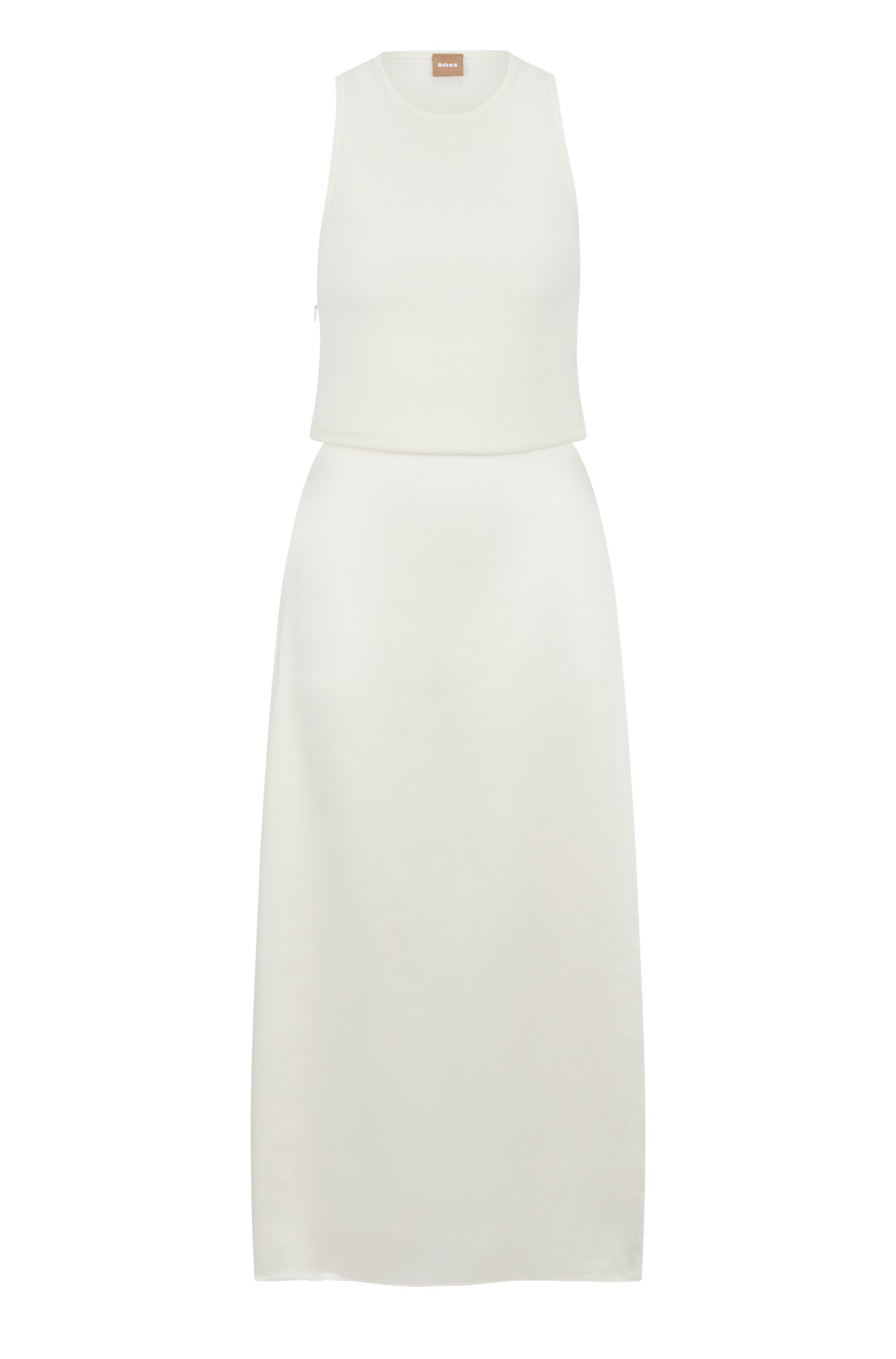 Ärmelloses BOSS Kleid mit schmaler Passform, das aus einer Kombination aus einem matten und einem schimmernden Gewebe gefertigt ist.