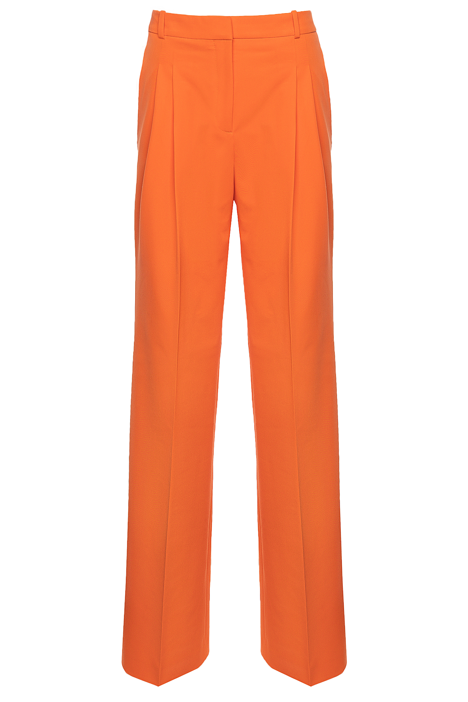 Locker geschnittene HUGO Damen-Hose mit maskulinem Touch, die aus einem elastischen Material-Mix gefertigt ist und sich mit zwei Bundfalten zeigt.