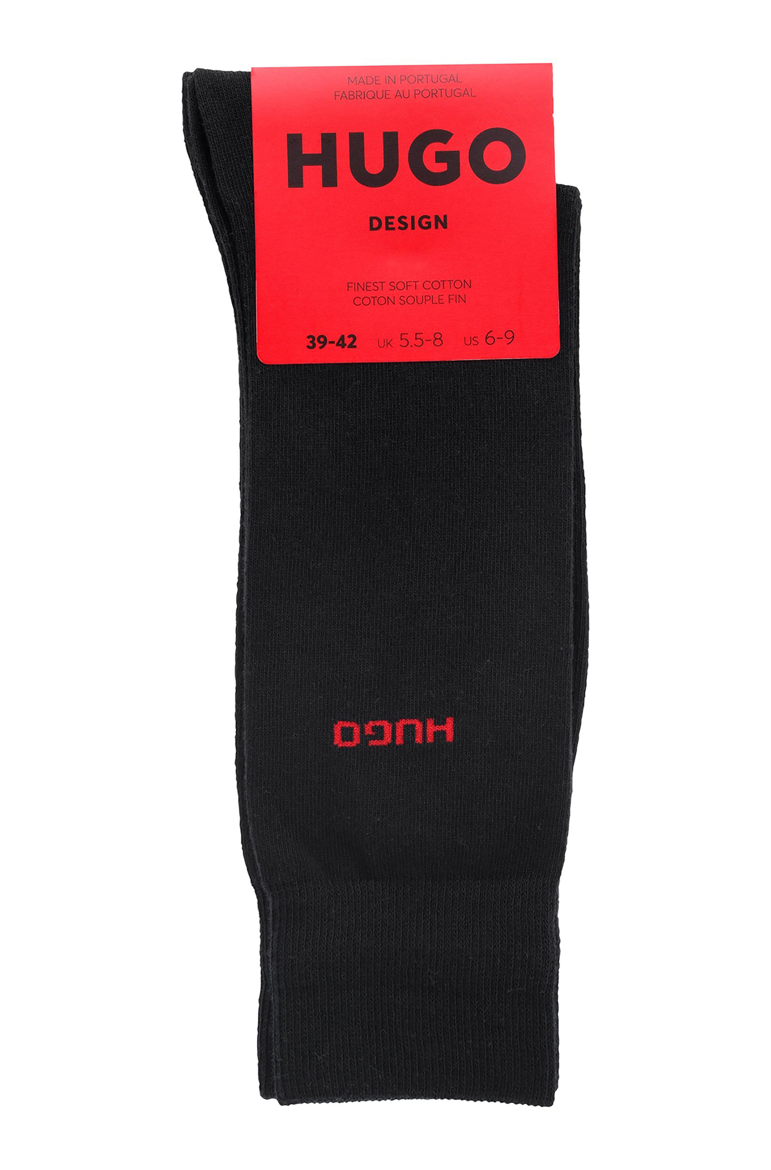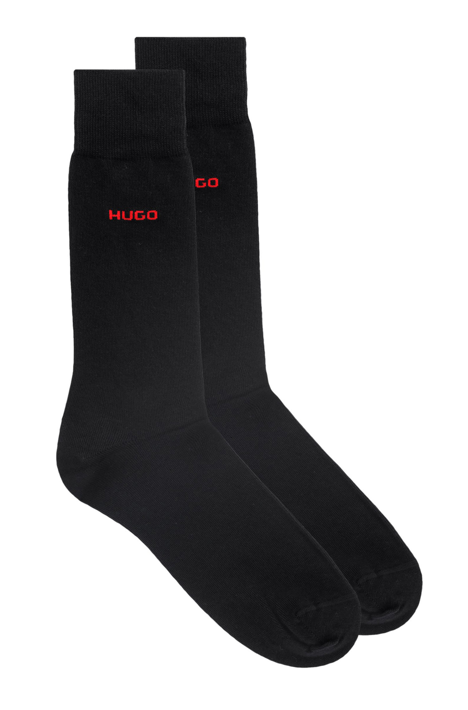Zwei Paar besonders softe HUGO Socken. Die mittelhohen Herren-Socken für jeden Tag sind aus einem Baumwoll-Mix mit Elasthan-Anteil gefertigt und behalten ihre Form dauerhaft bei. Unverkennbare HUGO Logos am Bund setzen markante Akzente.
