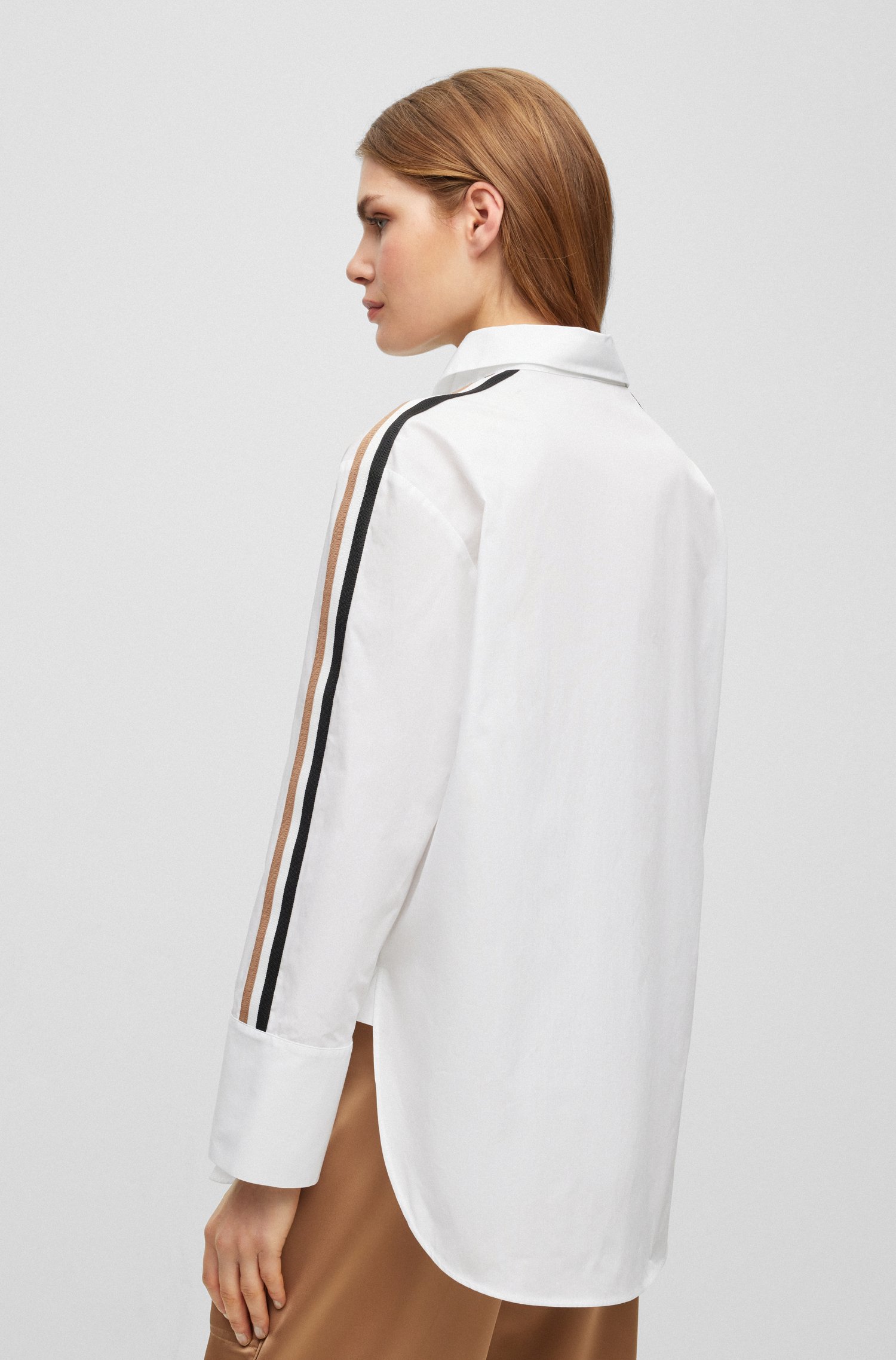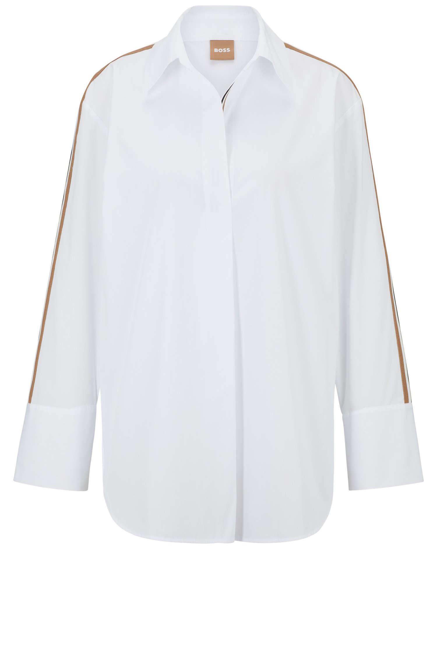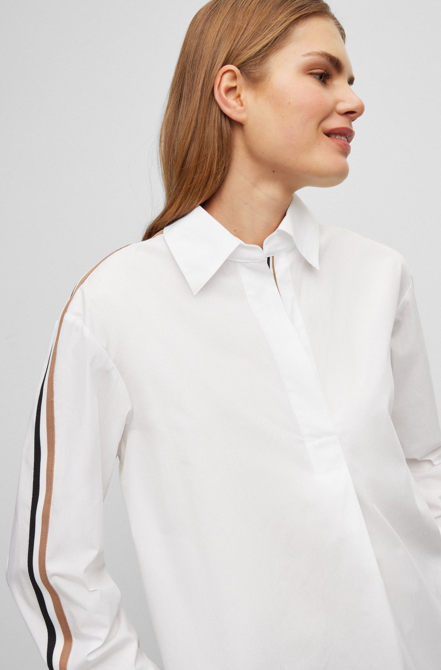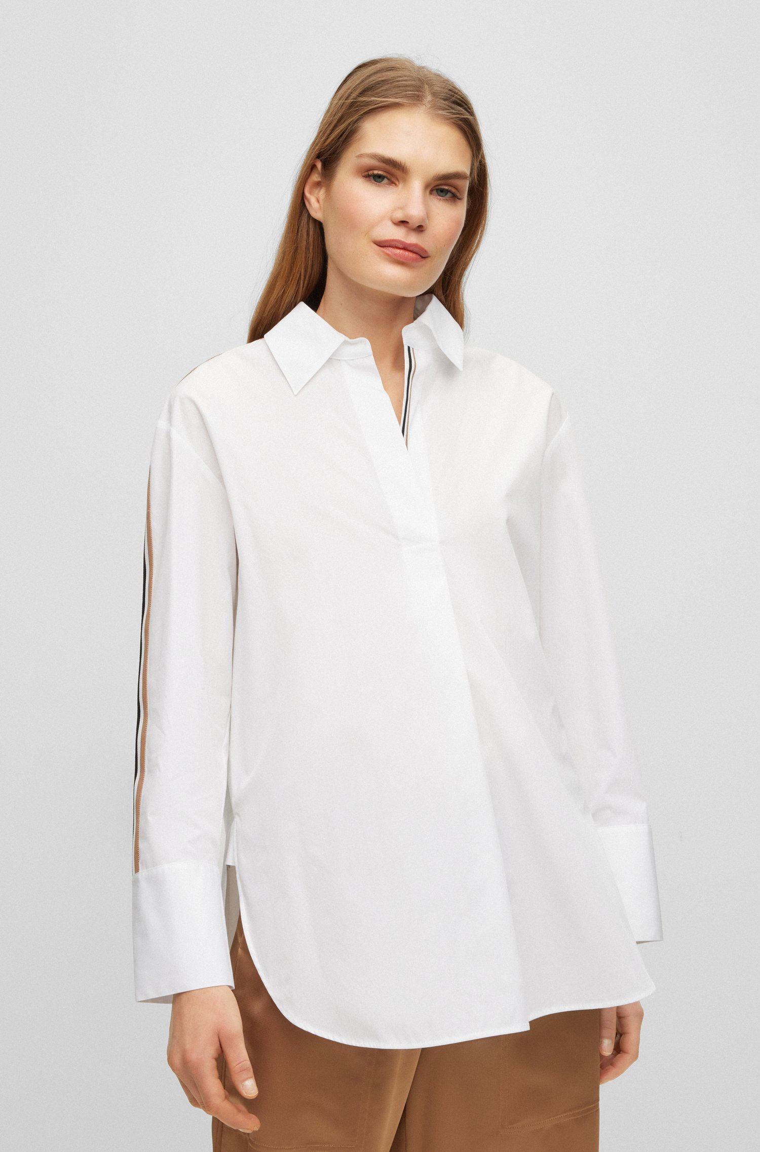 Sommerliche BOSS Damen-Bluse aus softer Baumwolle mit Details an den Ärmeln und eingekerbtem Ausschnitt.