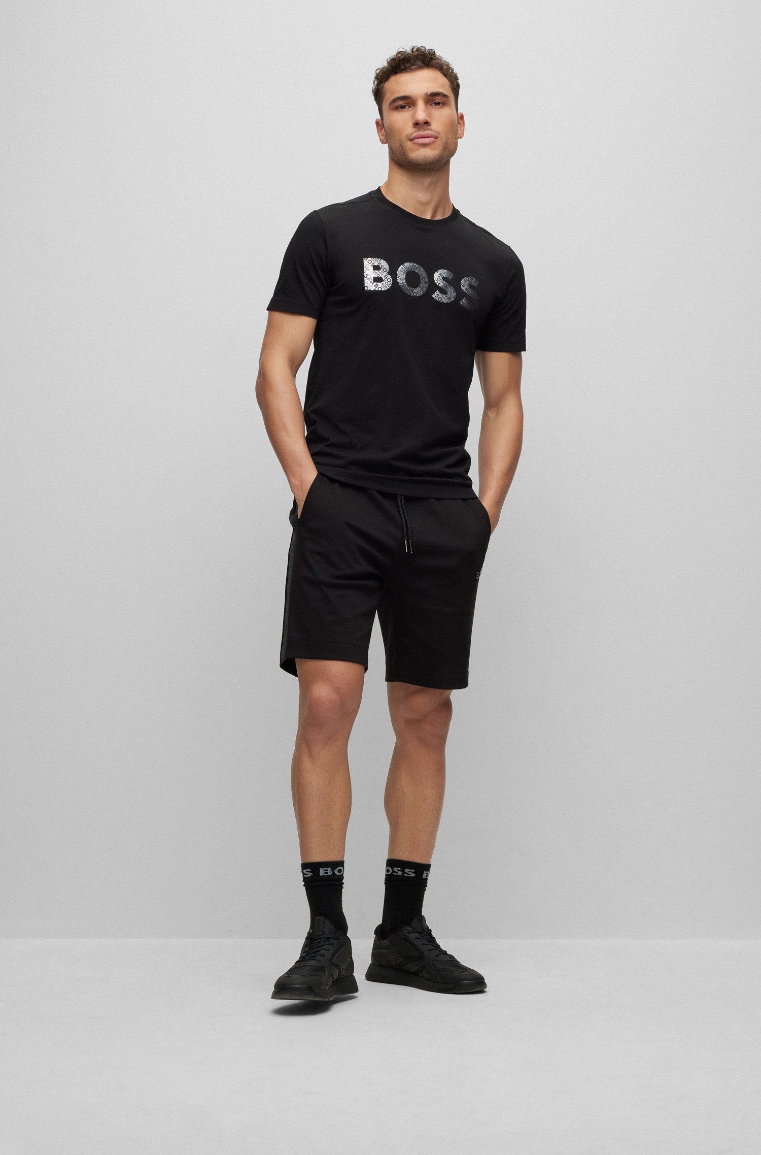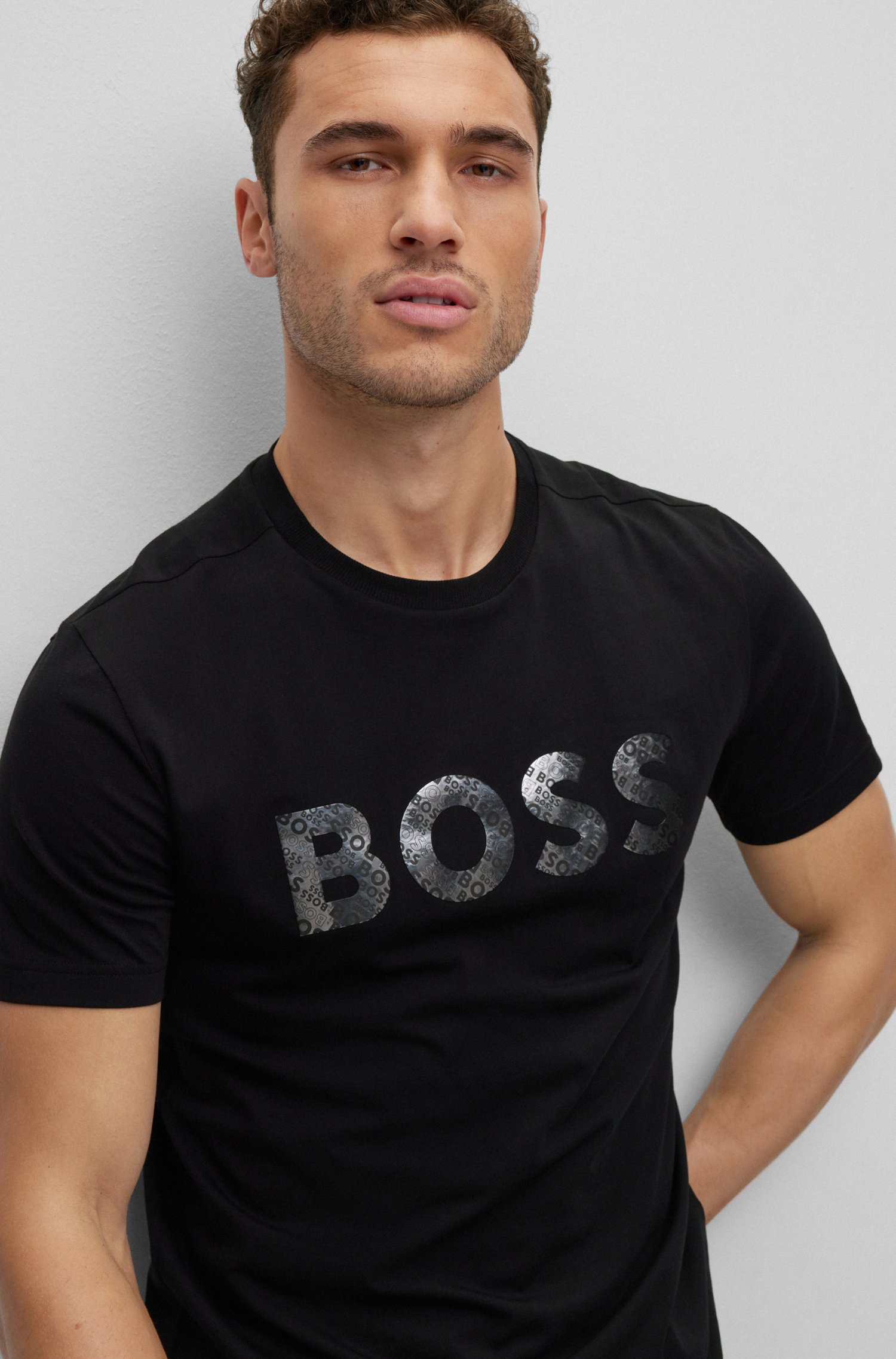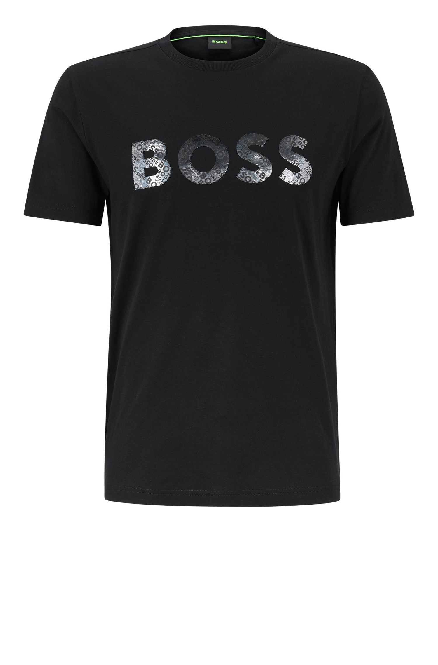 Gerade geschnittenes BOSS Herren-T-Shirt aus Single Jersey mit foliertem Logo-Print.