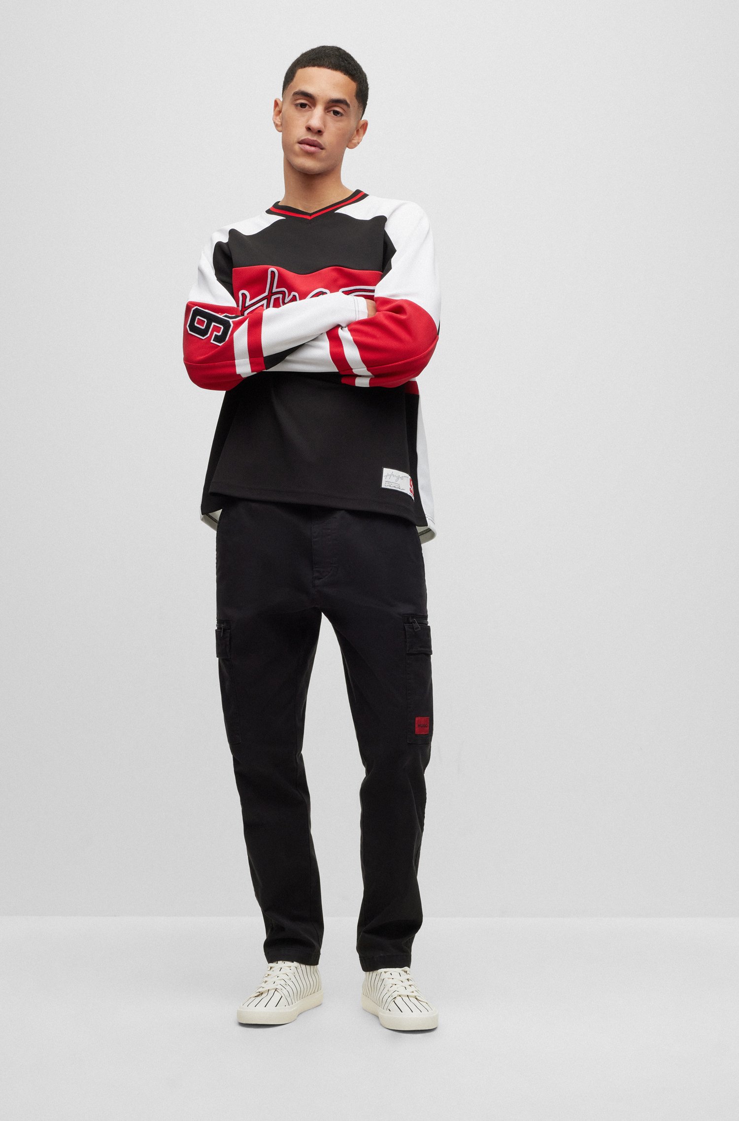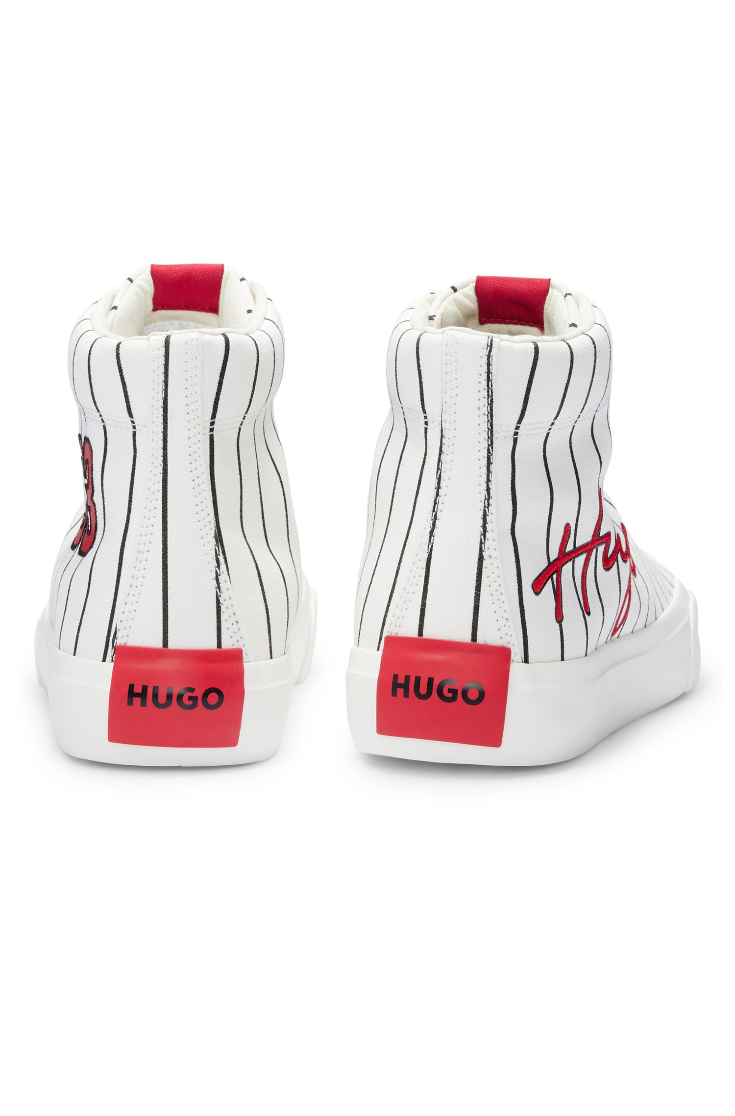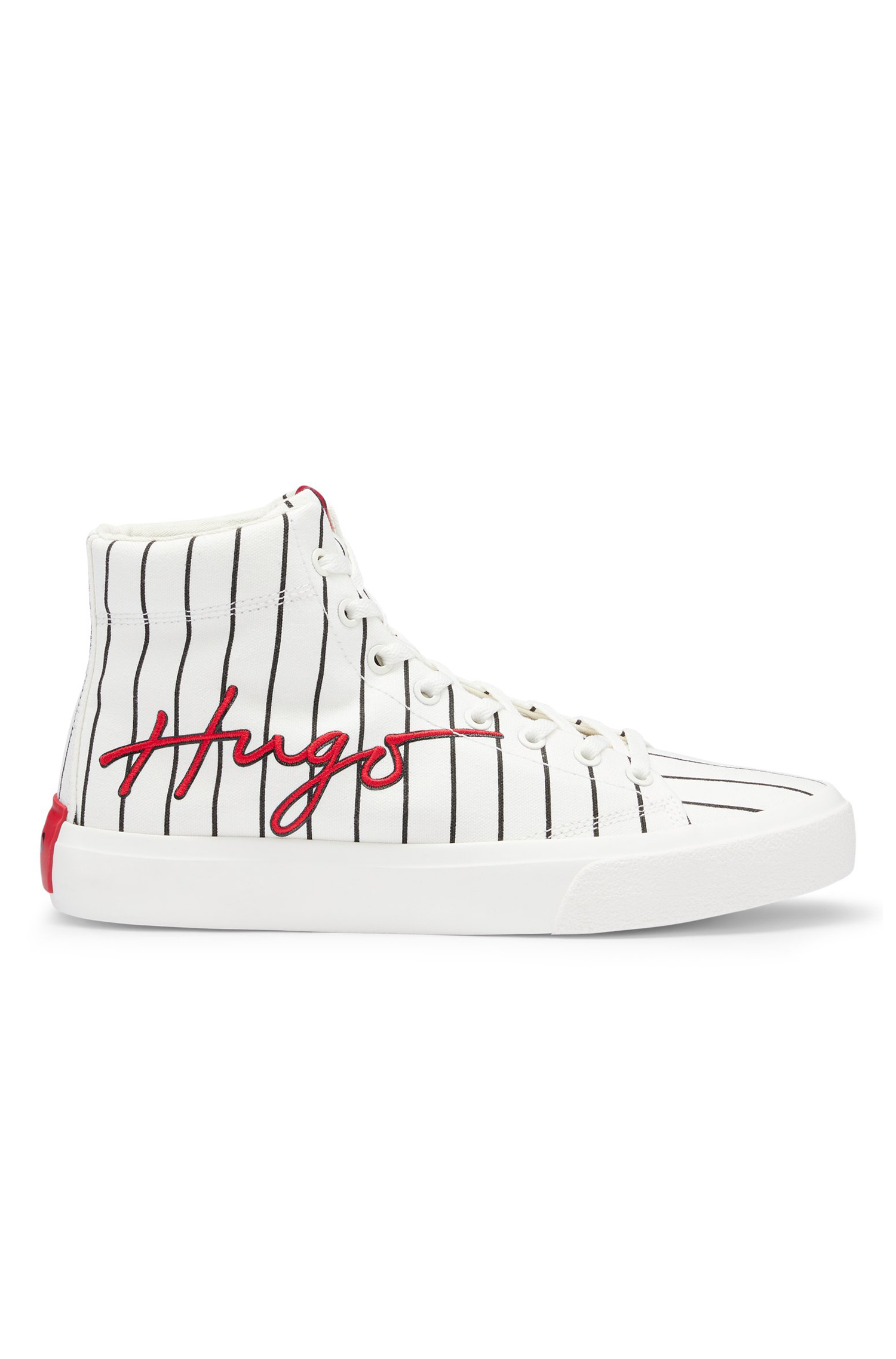 Sportive HUGO Hightop Sneakers aus Baumwoll-Canvas mit Schnürung, Längsstreifen und handgeschriebenem Logo.