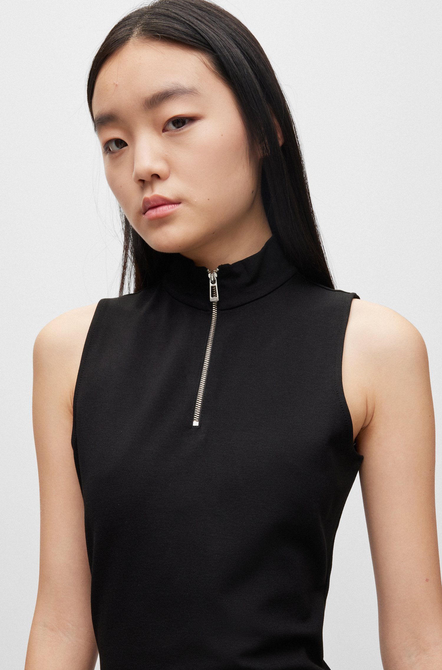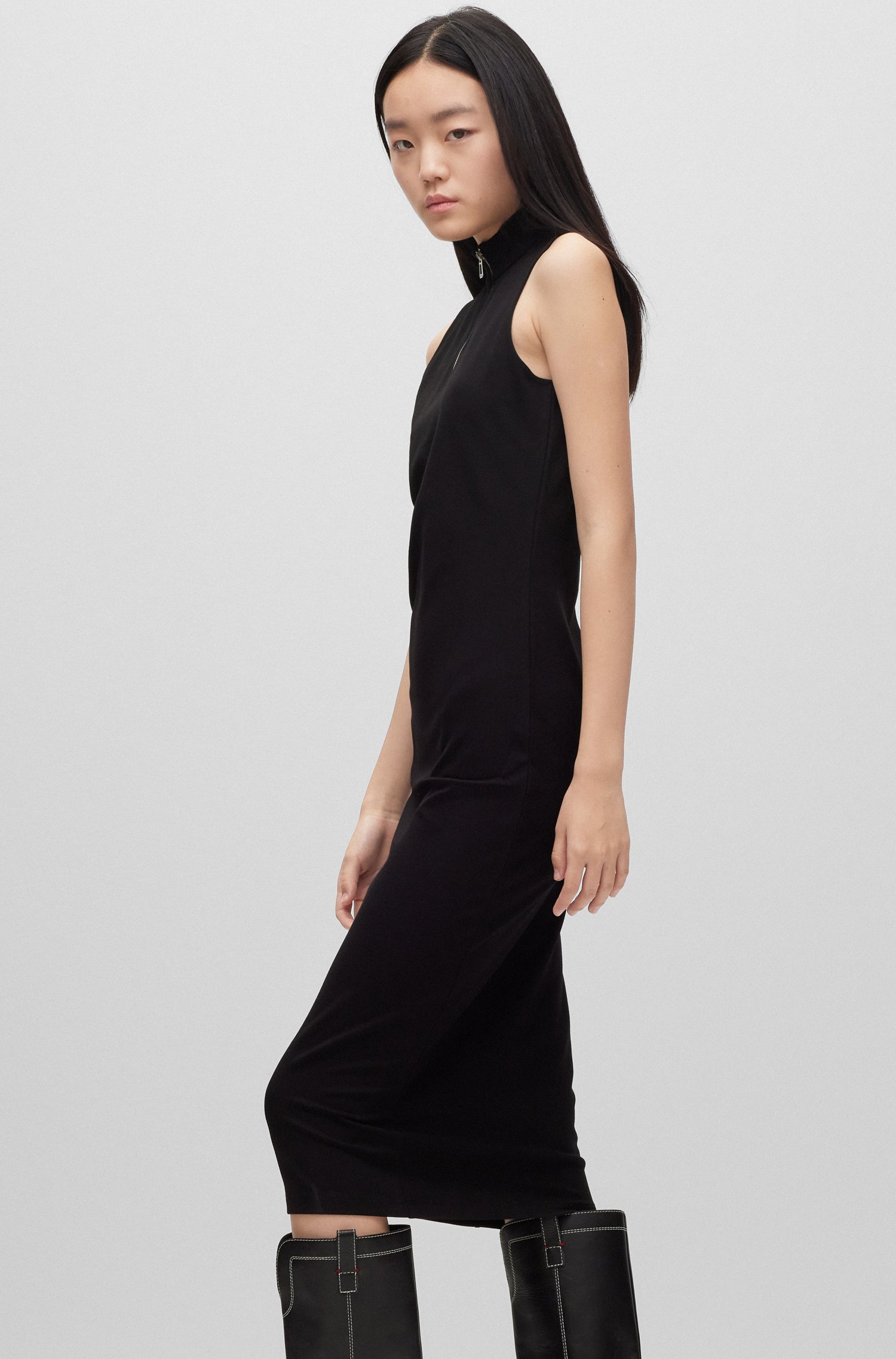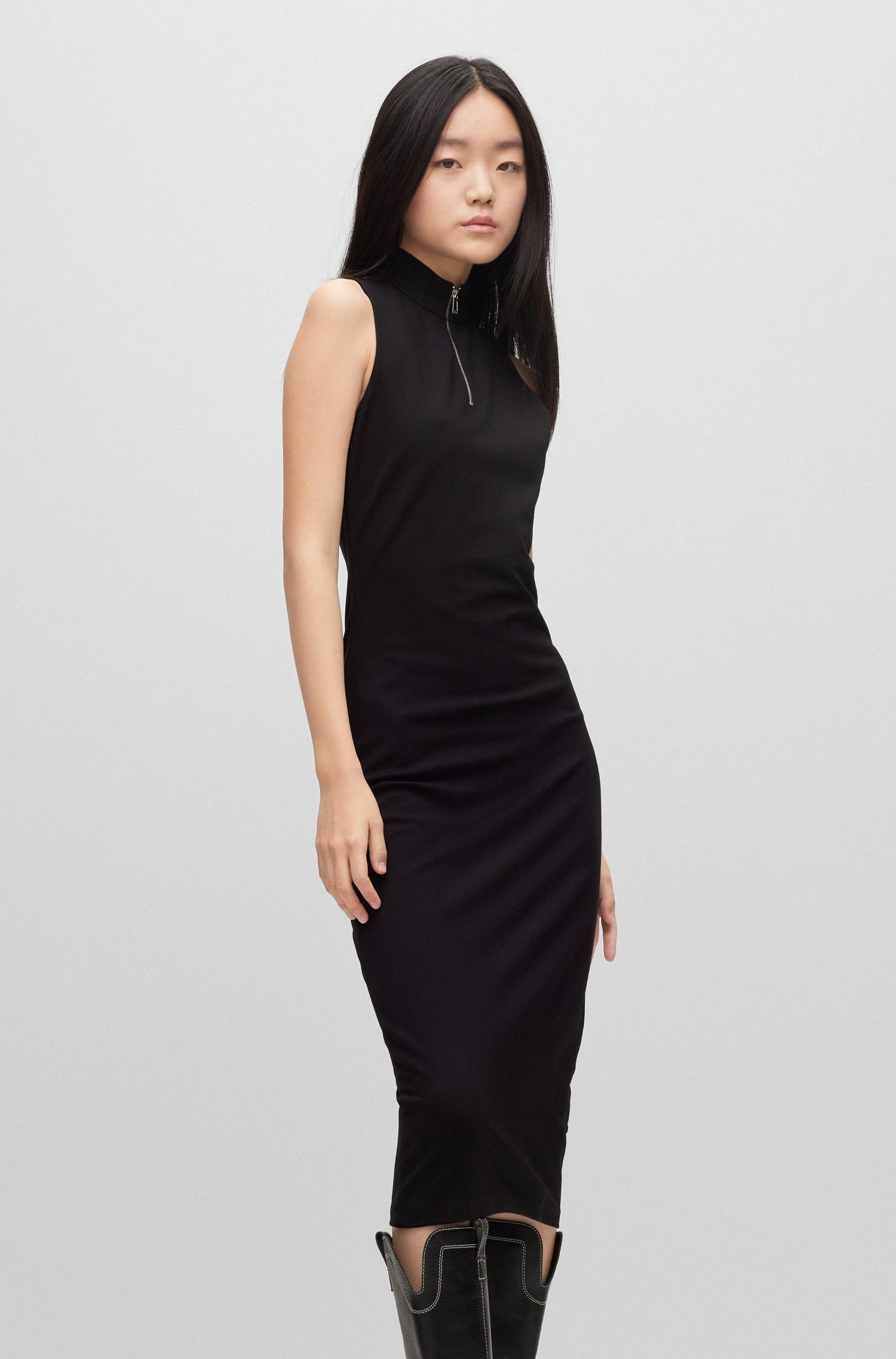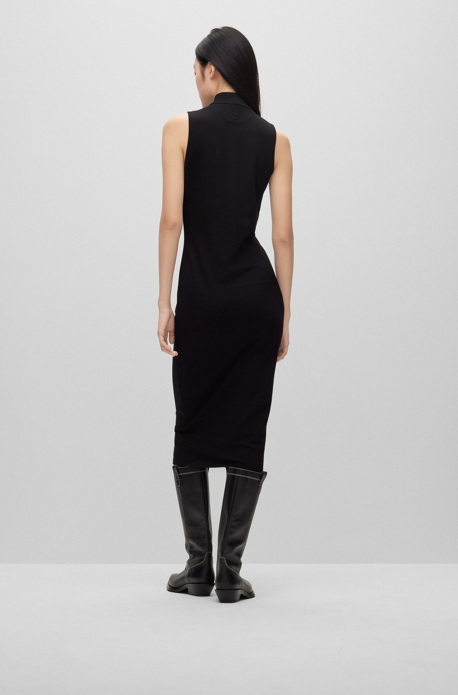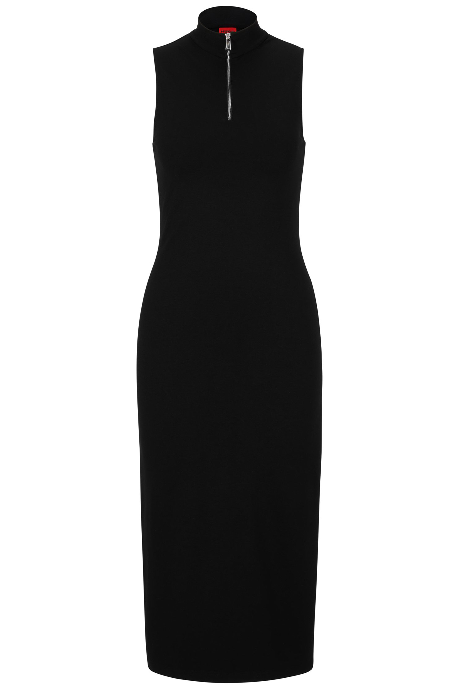 Schmal geschnittenes HUGO Kleid. Das ärmellose Damen-Kleid ist aus einem elastischen Material-Mix gefertigt und mit einem zeitgemäßen Reißverschluss am Ausschnitt versehen. Auf der Rückseite befindet sich ein HUGO Stack-Logo.