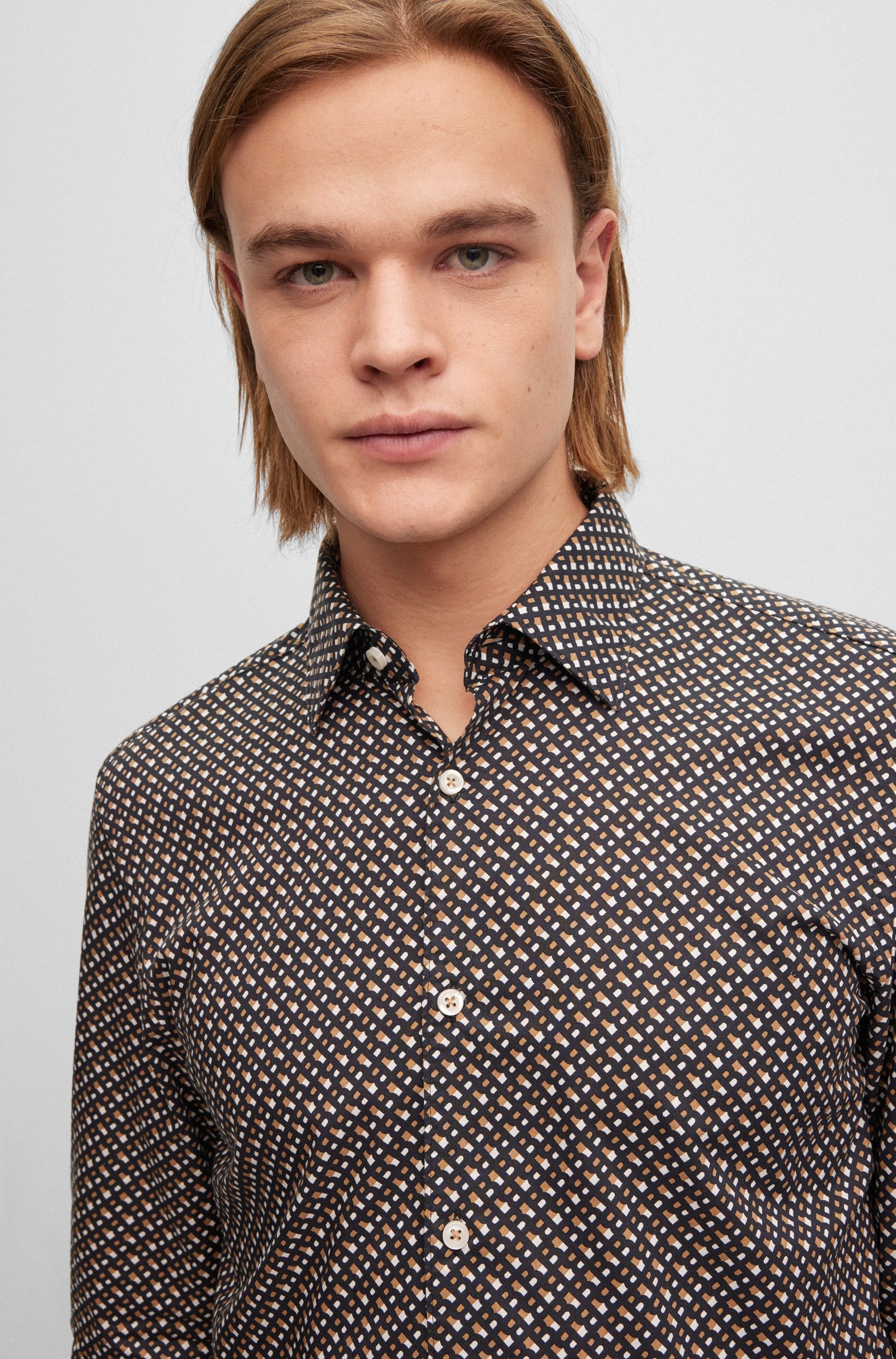 Markantes BOSS Hemd aus besonders softem Satin mit legerer Passform und charakteristischem Monogramm-Print.