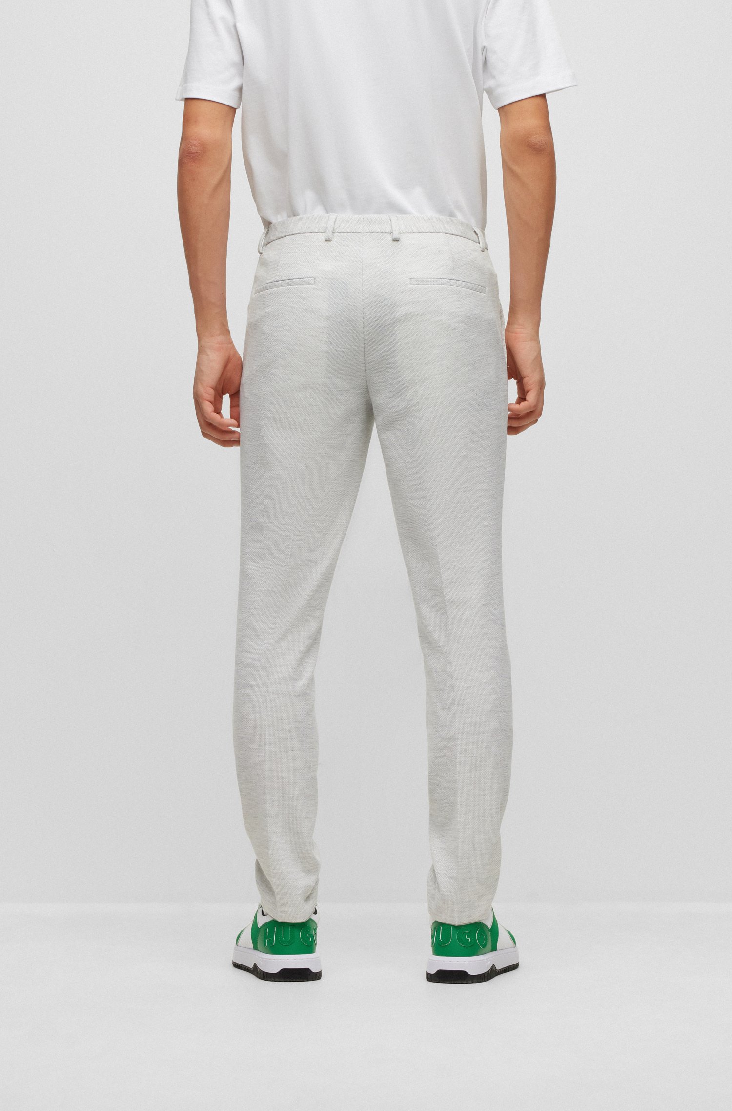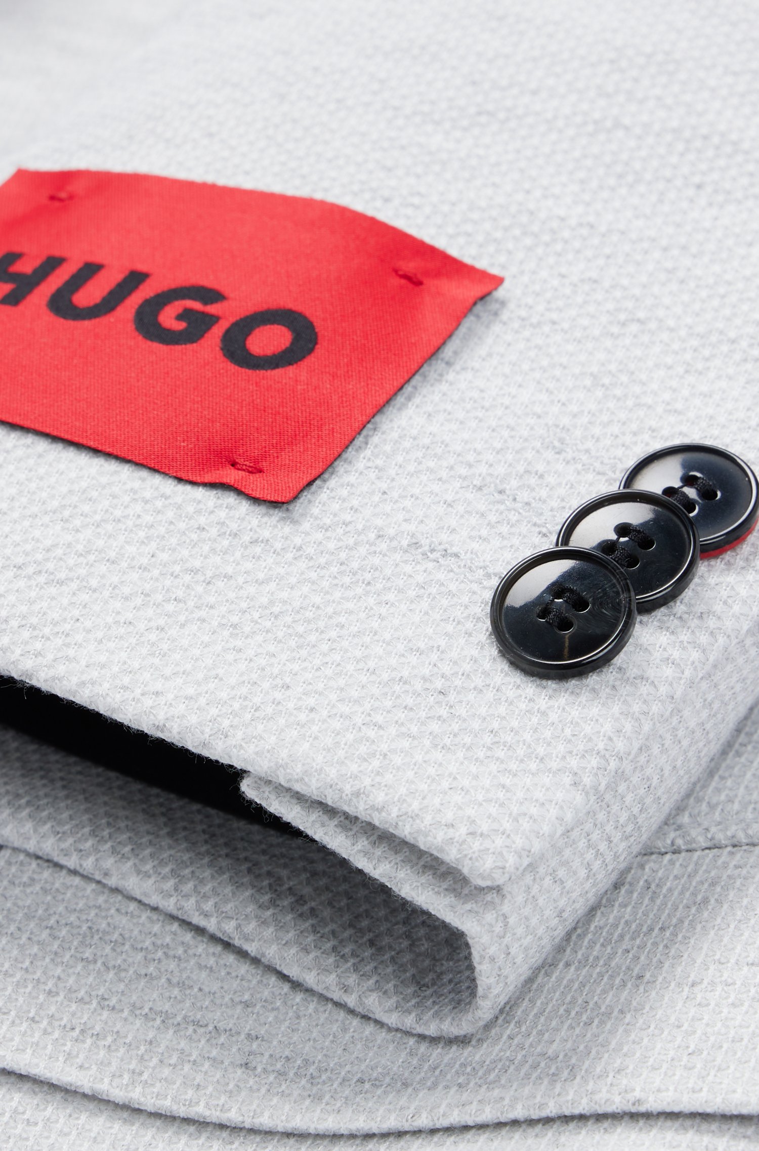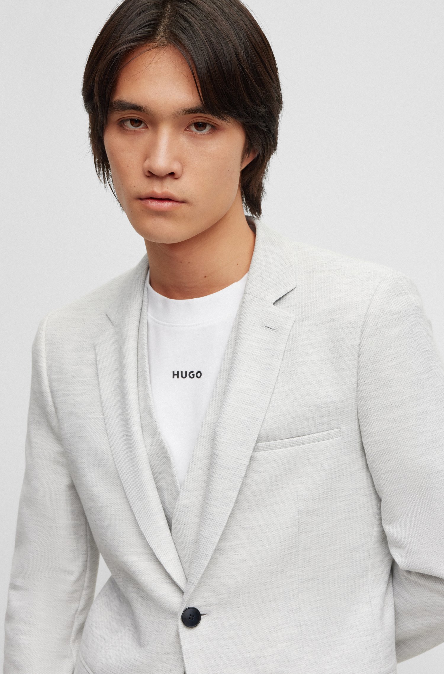 Verspricht optimale Performance: der HUGO Dreiteiler. Der melierte Herren-Anzug aus einem besonders flexiblen Gewebe bietet hohen Tragekomfort. Seine extra schmale Passform erzeugt eine cleane Silhouette. Die zweireihige Weste sorgt für einen innovativen Touch.