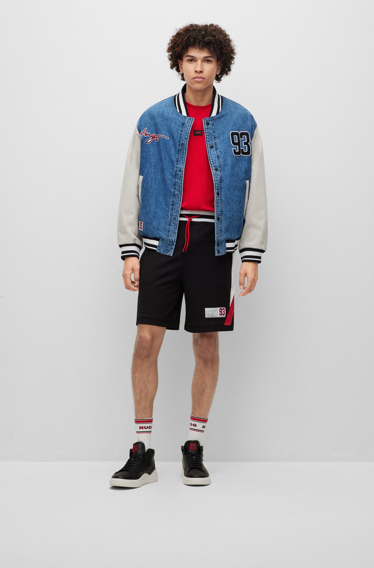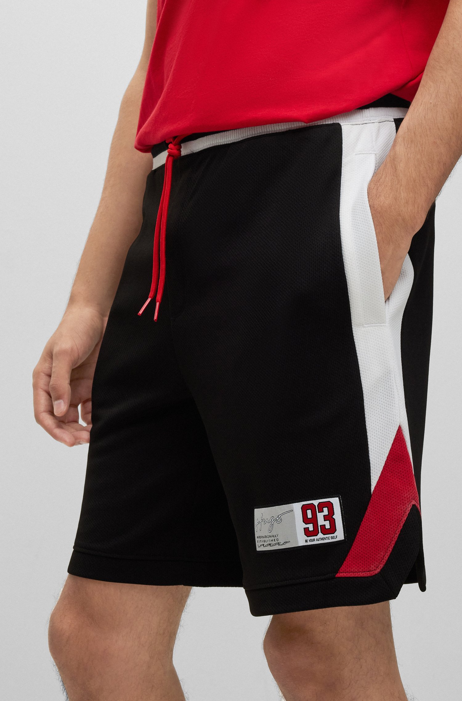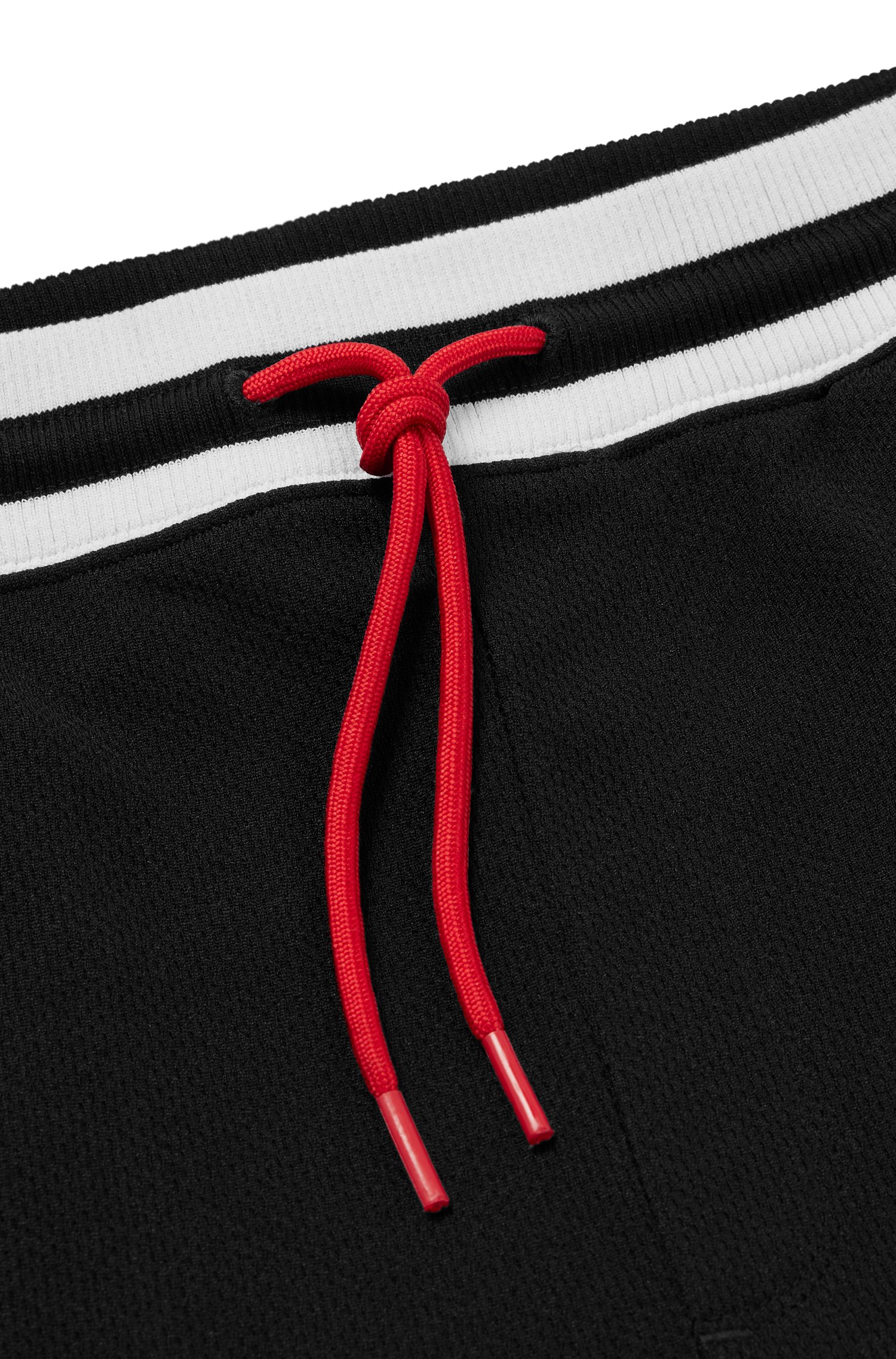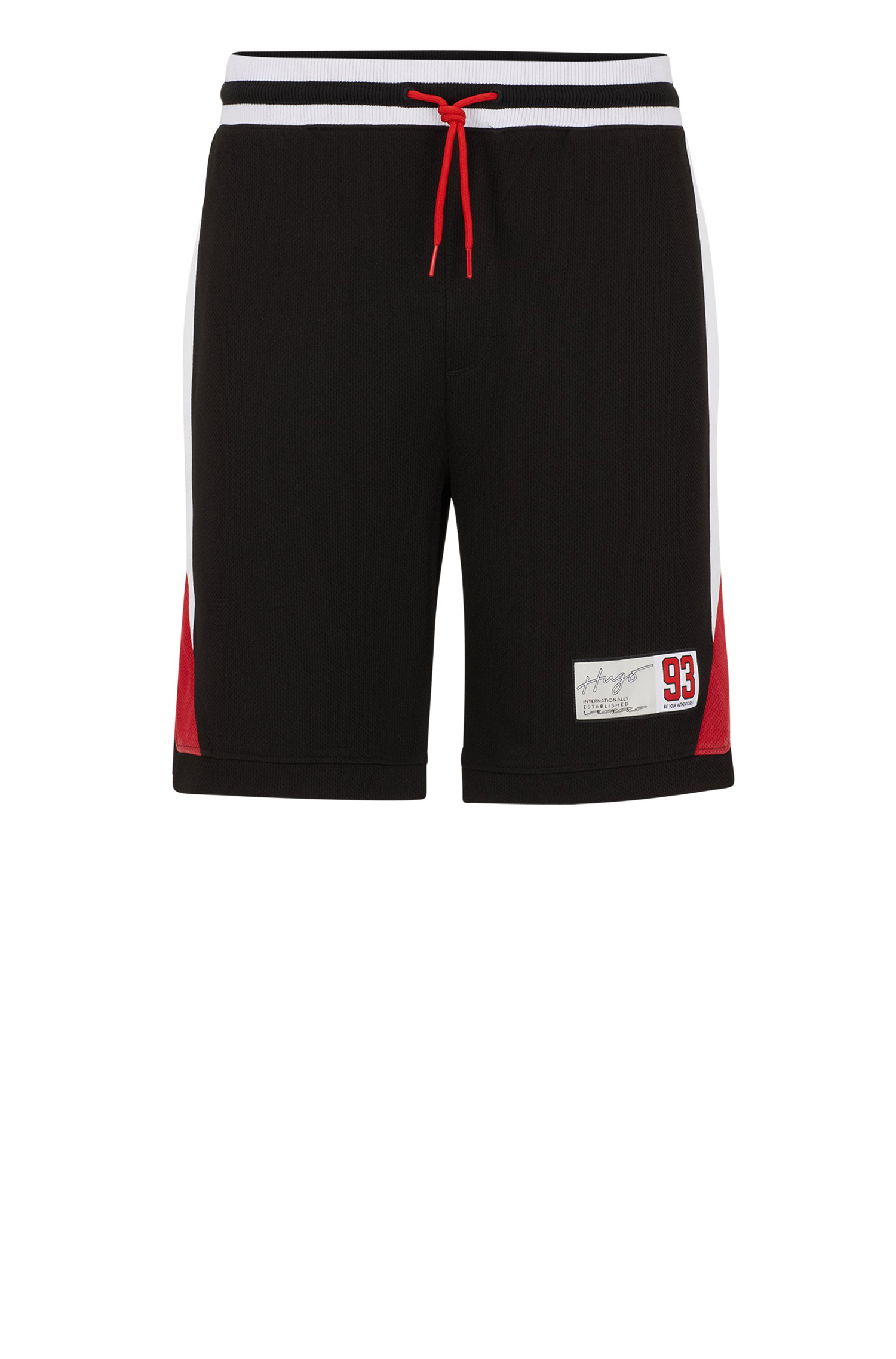Zeitgemäße HUGO Shorts, die von Eishockey-Styles inspiriert ist. Die sportive Herren-Shorts aus atmungsaktivem Mesh ist mit kontrastfarbenen Streifen und einem Logo-Aufnäher im Stil der neuen Saison versehen. Die gerade Passform und der Tunnelzugbund sorgen für ein angenehmes Tragegefühl.