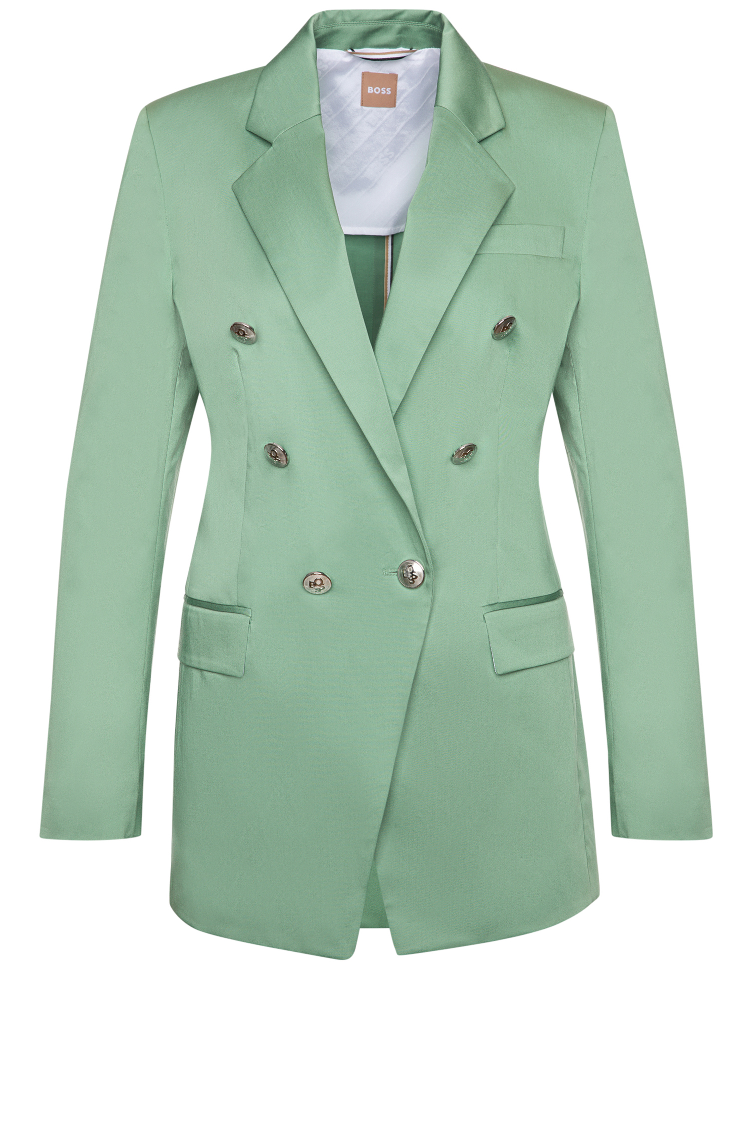 Gerade geschnittener BOSS Zweireiher aus elastischer Baumwolle mit Logo-Knöpfen.