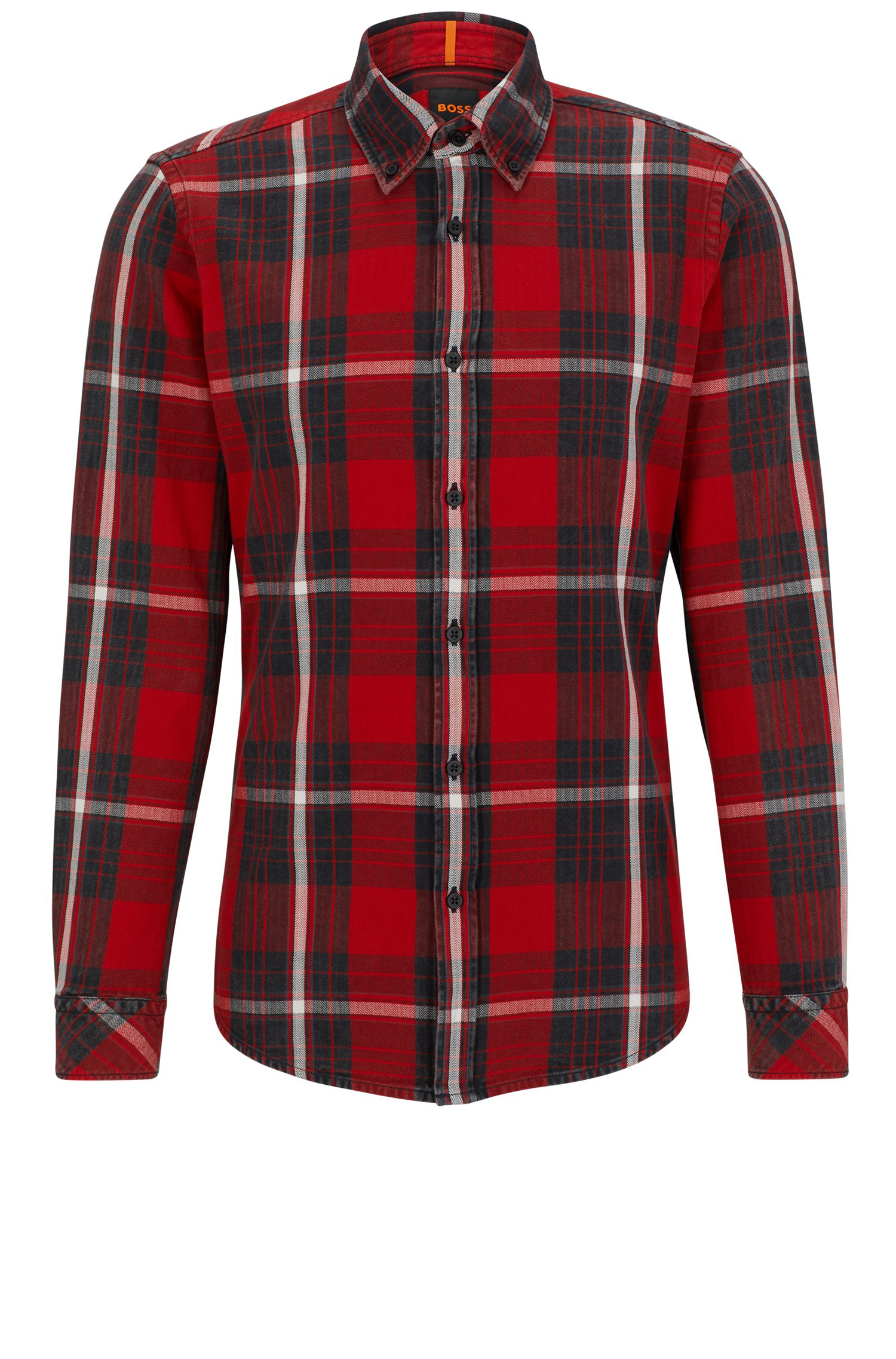 Legeres BOSS Herren-Hemd aus strukturierter Baumwolle mit gerader Passform, ausgewaschenem Karo-Muster und Button-Down-Kragen.