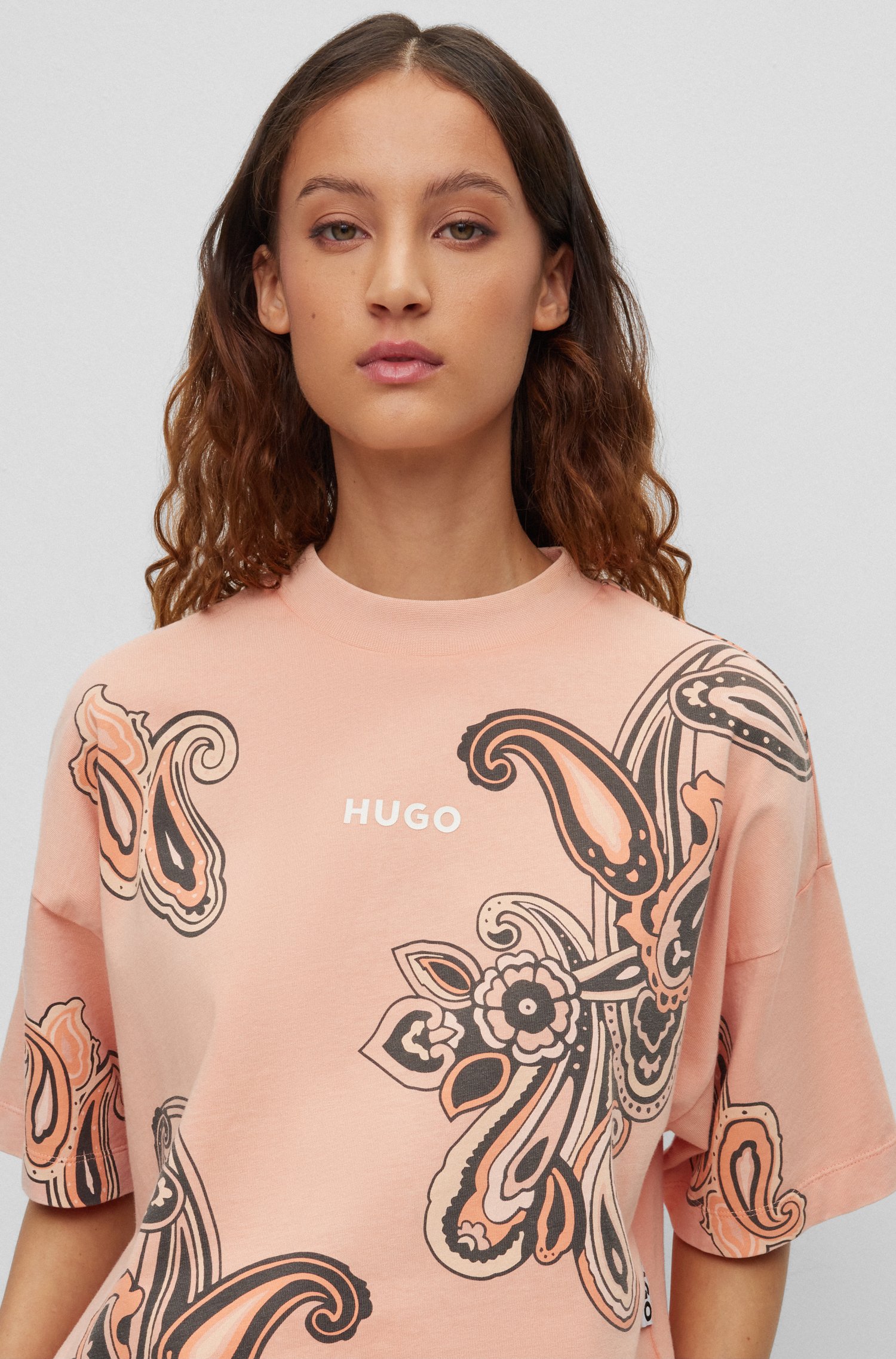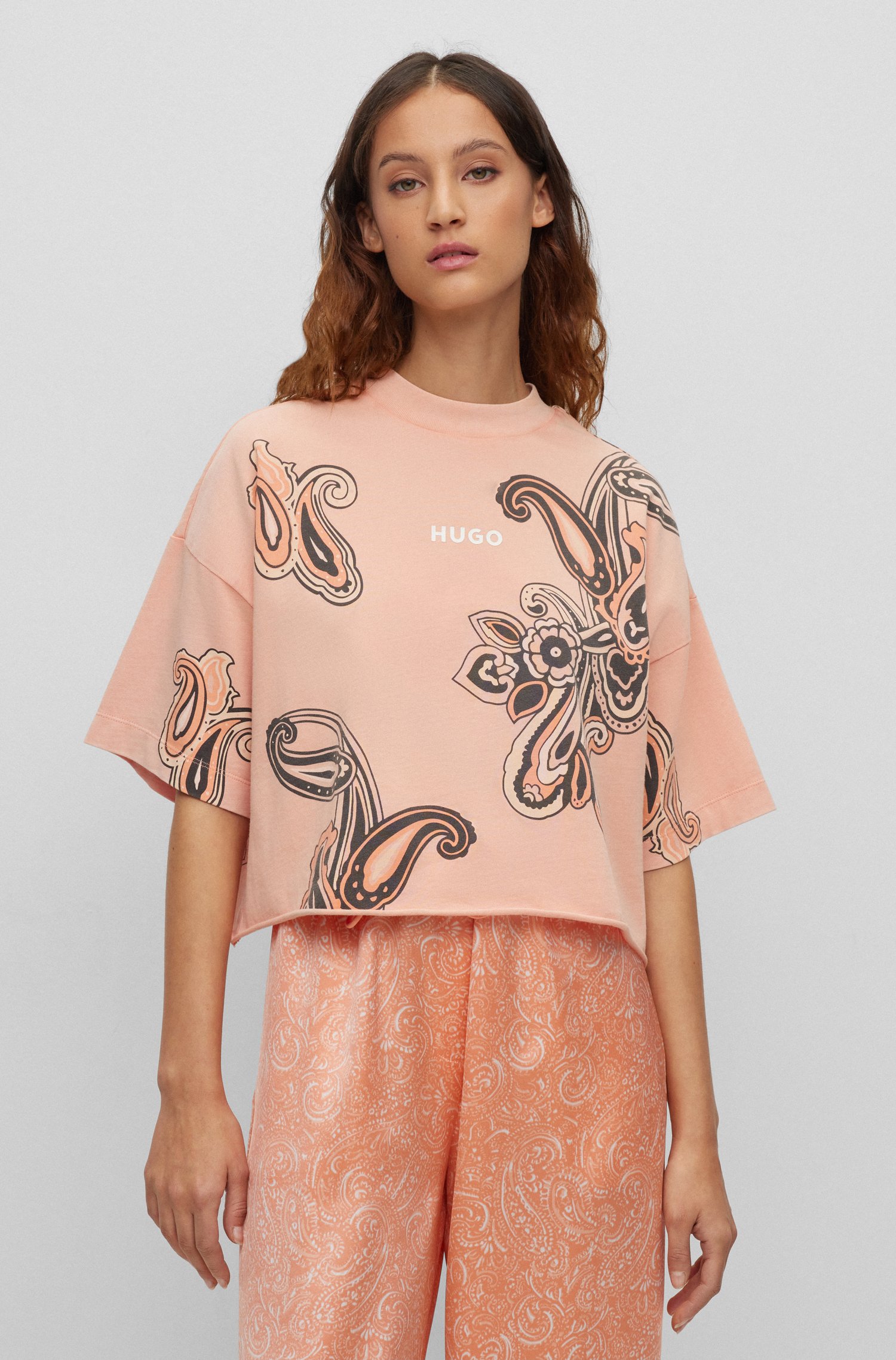 Locker geschnittenes HUGO T-Shirt in Cropped-Länge, das entweder mit gekritzelten Motiven oder Paisley-Prints erhältlich ist.