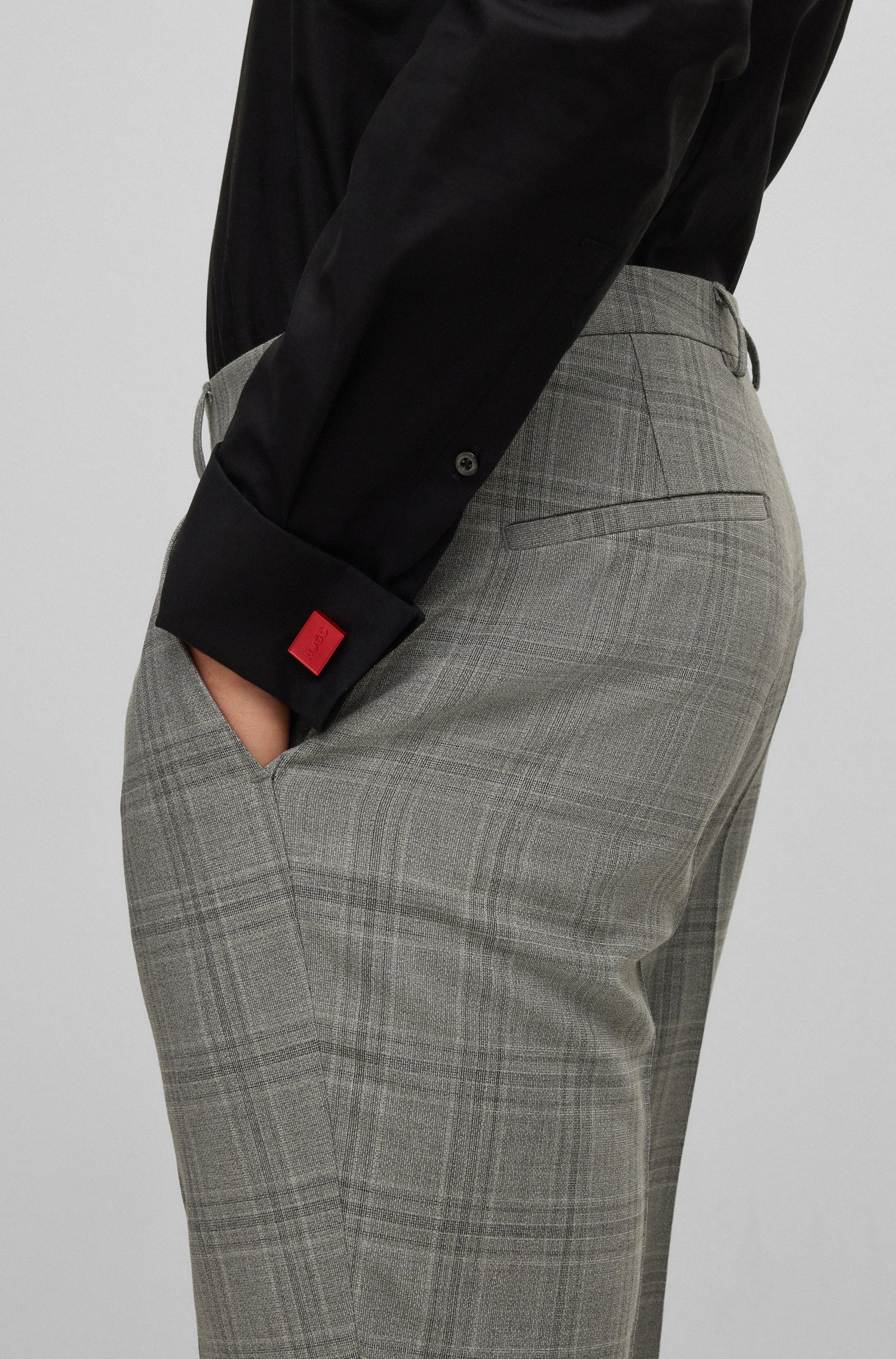 Zeitgemäße HUGO Manschettenknöpfe aus rotem eloxiertem Aluminium mit eingerahmtem Logo und Clipverschluss aus Edelstahl.