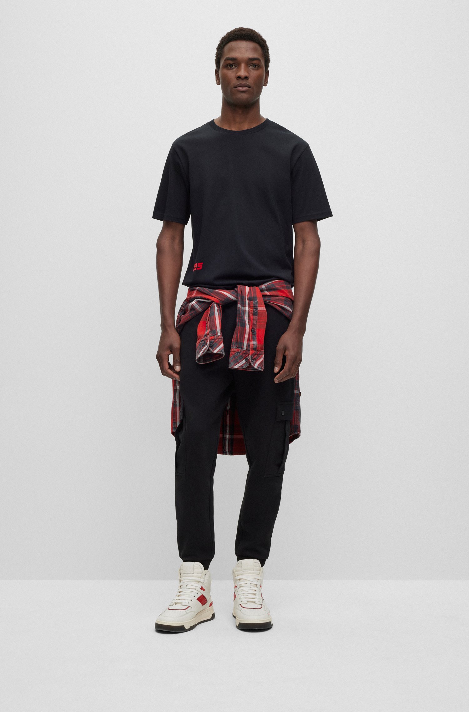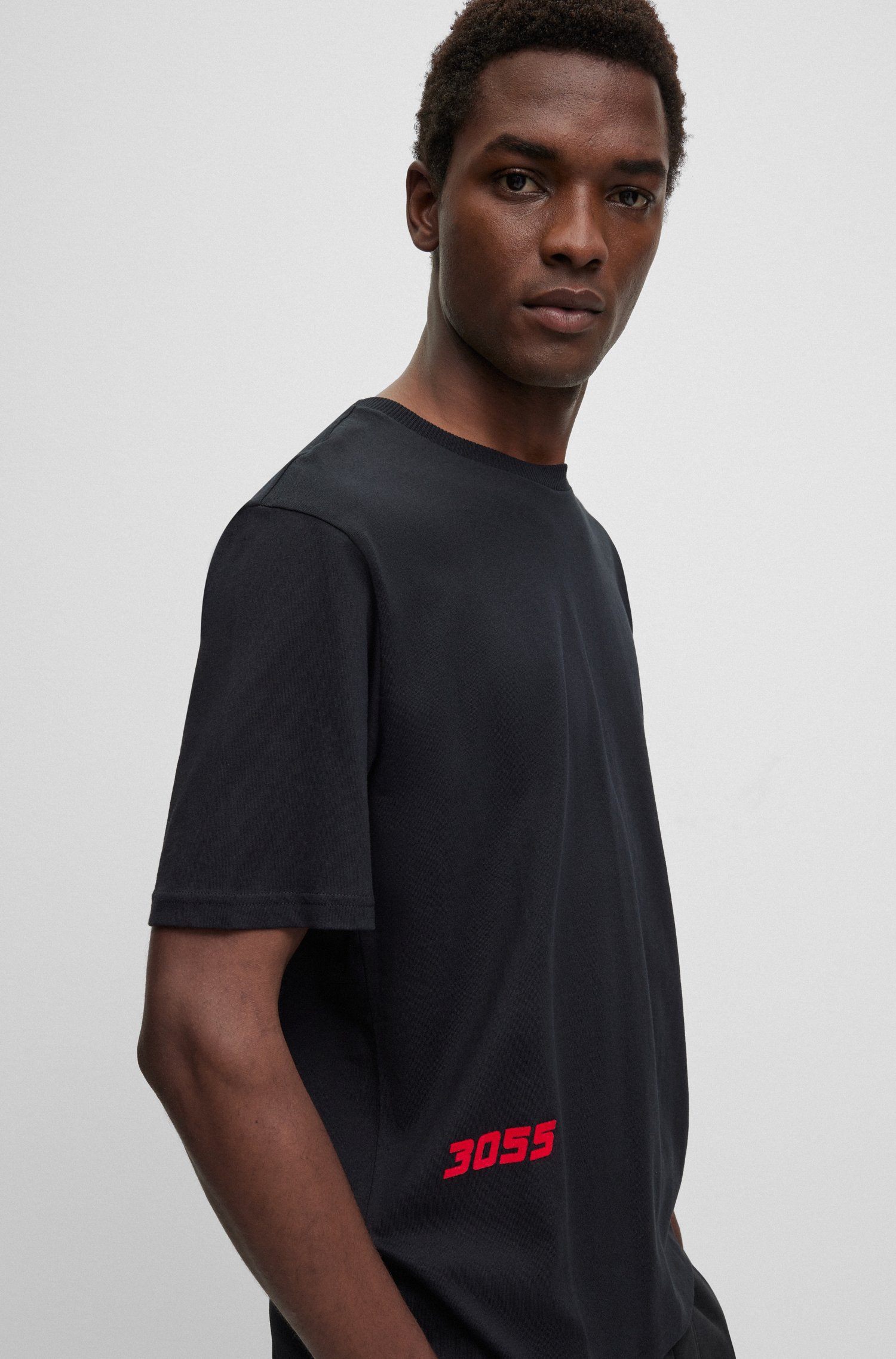Progressives BOSS Herren-T-Shirt aus mittelschwerem Jersey mit lockerer Passform, Artwork im Rennsport-Stil und Flockdruck-Logo.