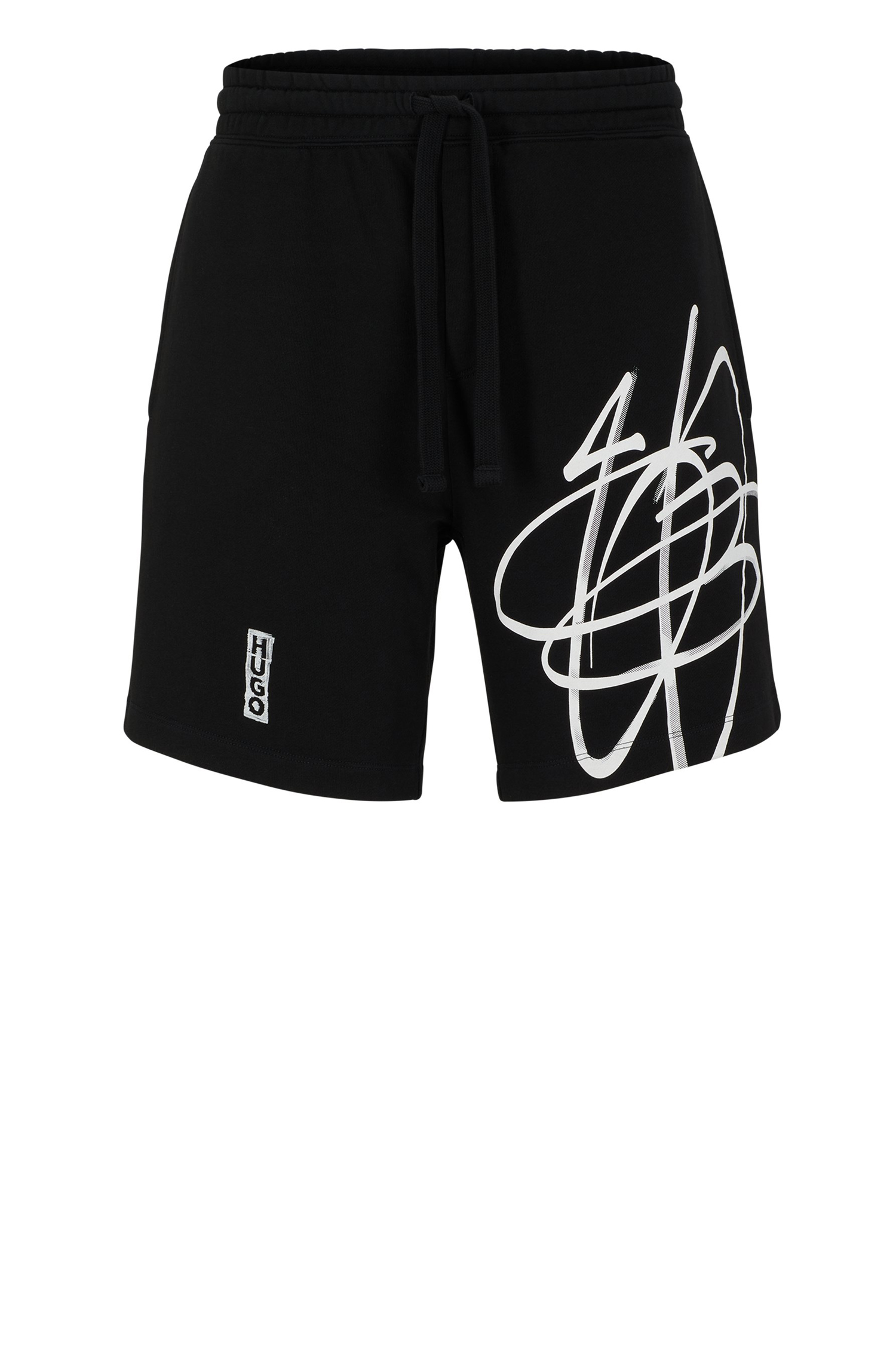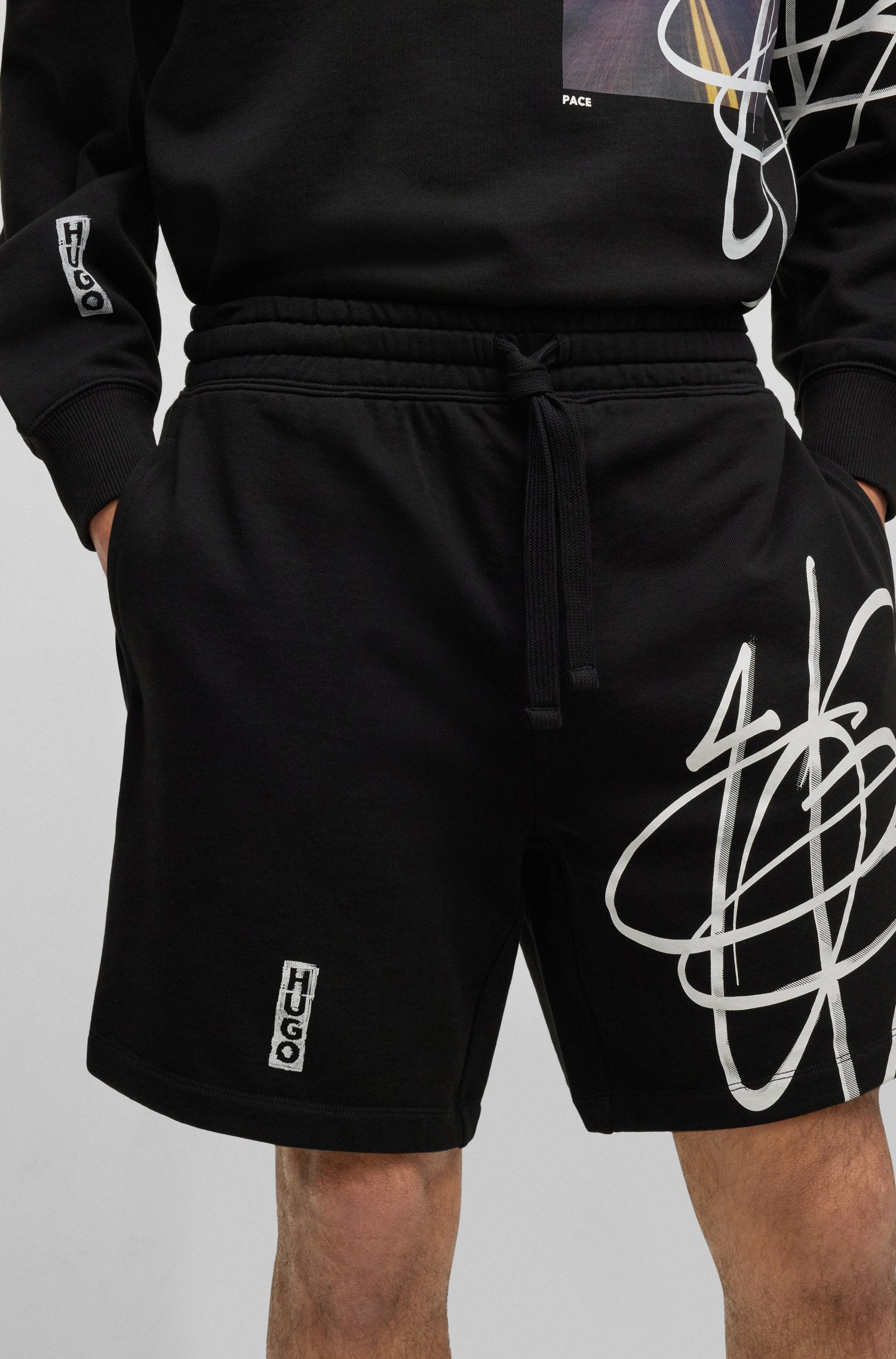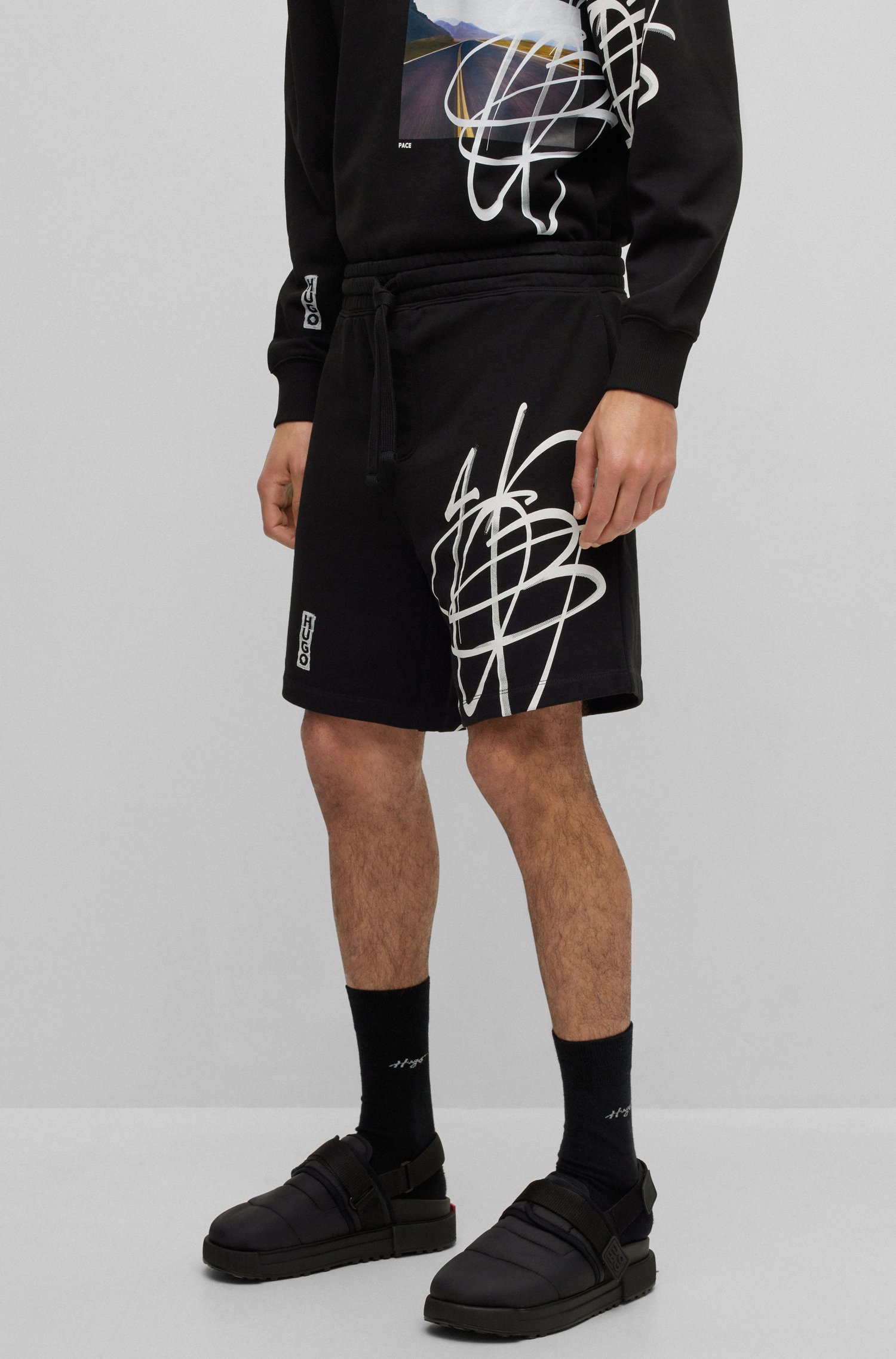 Urbane HUGO Herren-Shorts aus French Terry mit lockerer Passform, Tunnelzug, Logo-Detail im Marker-Stil und Graffiti-Artwork.