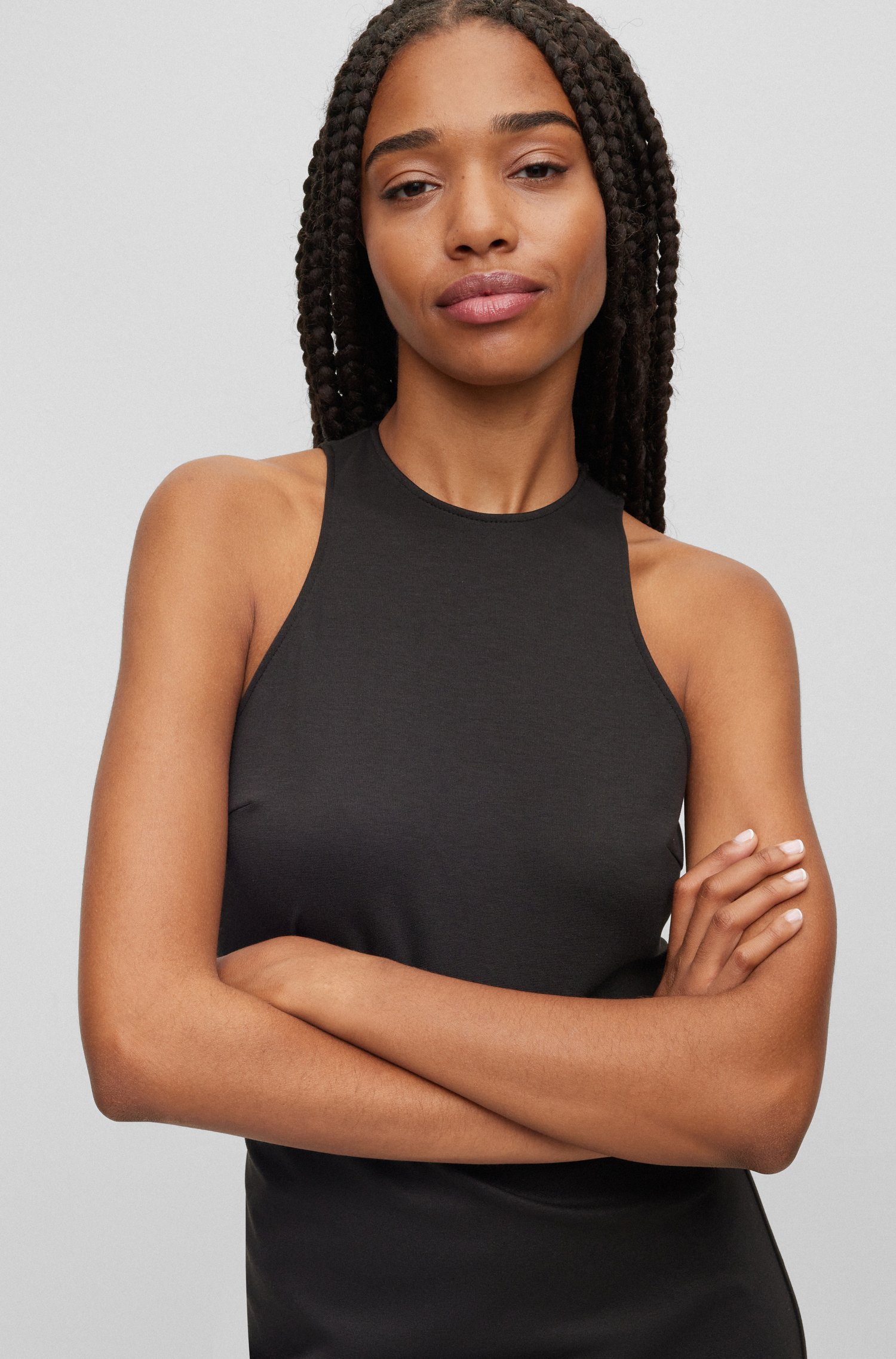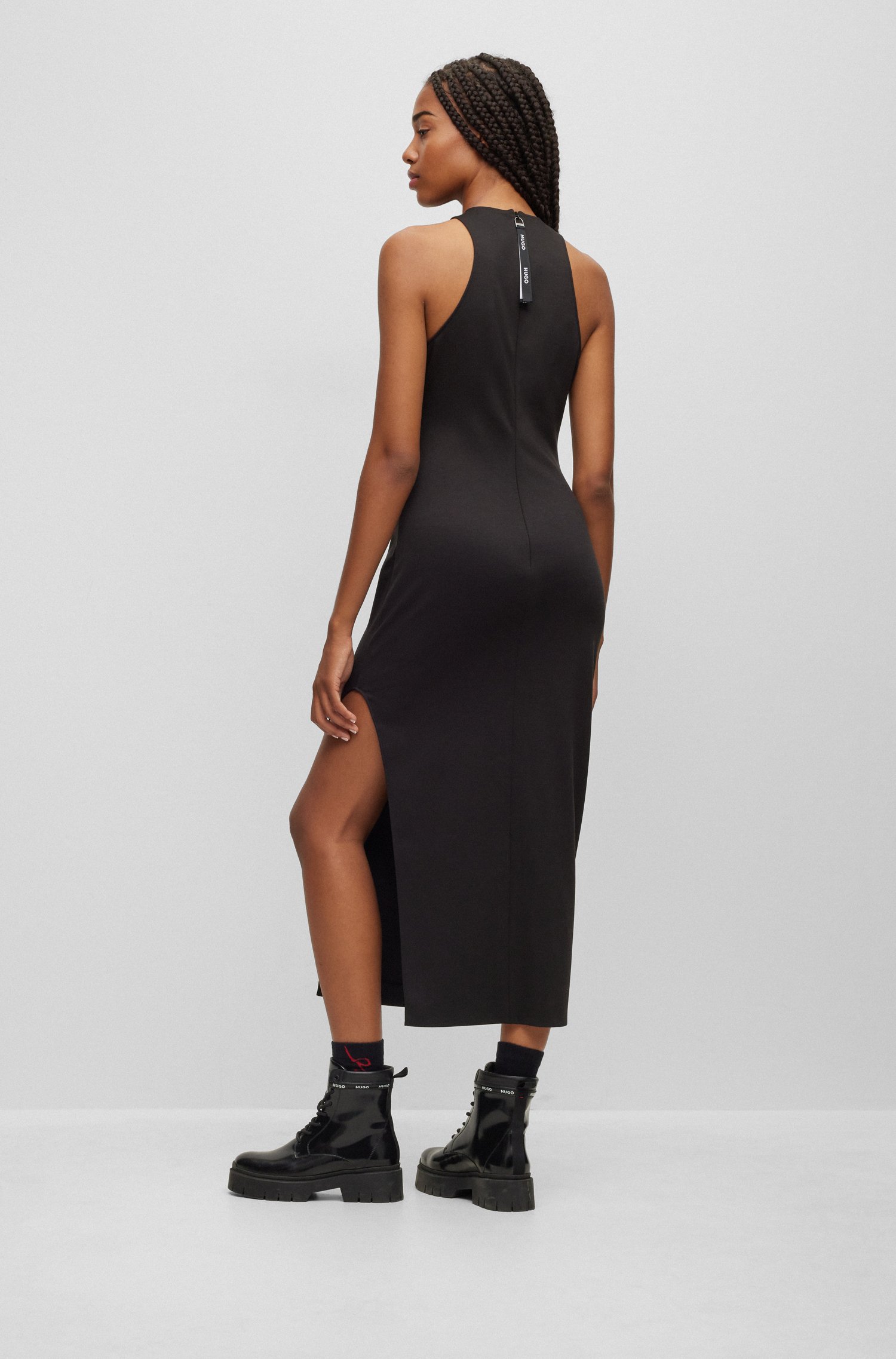 Ärmelloses HUGO Damen-Kleid aus Stretch-Jersey mit gerader Passform, Seitenschlitz, Racerback und Logo-Zipper.