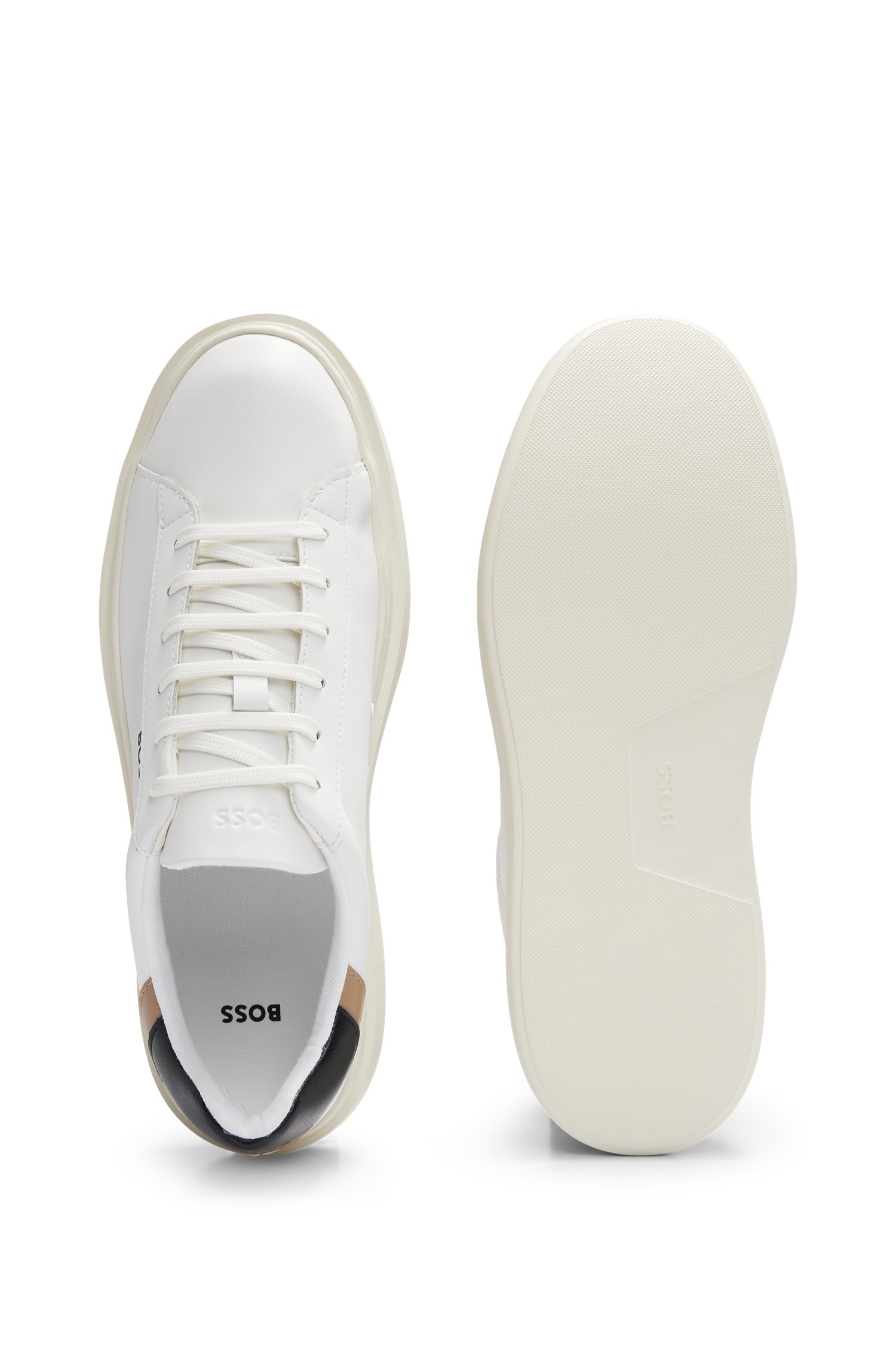 Low-Top-Sneaker mit Cupsohle aus Glattleder mit kontrastierender Lasche auf der Rückseite und Logodetails von BOSS.