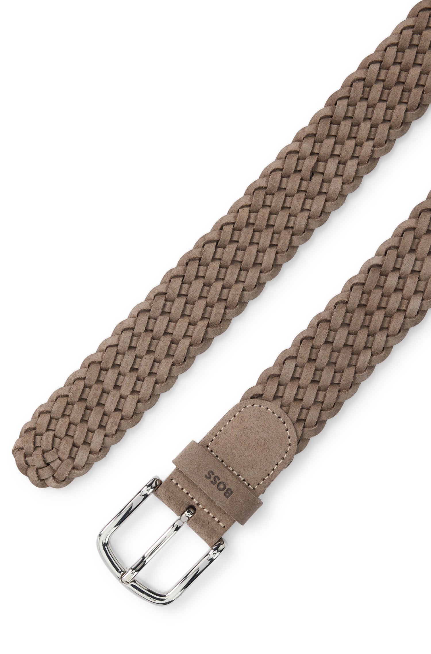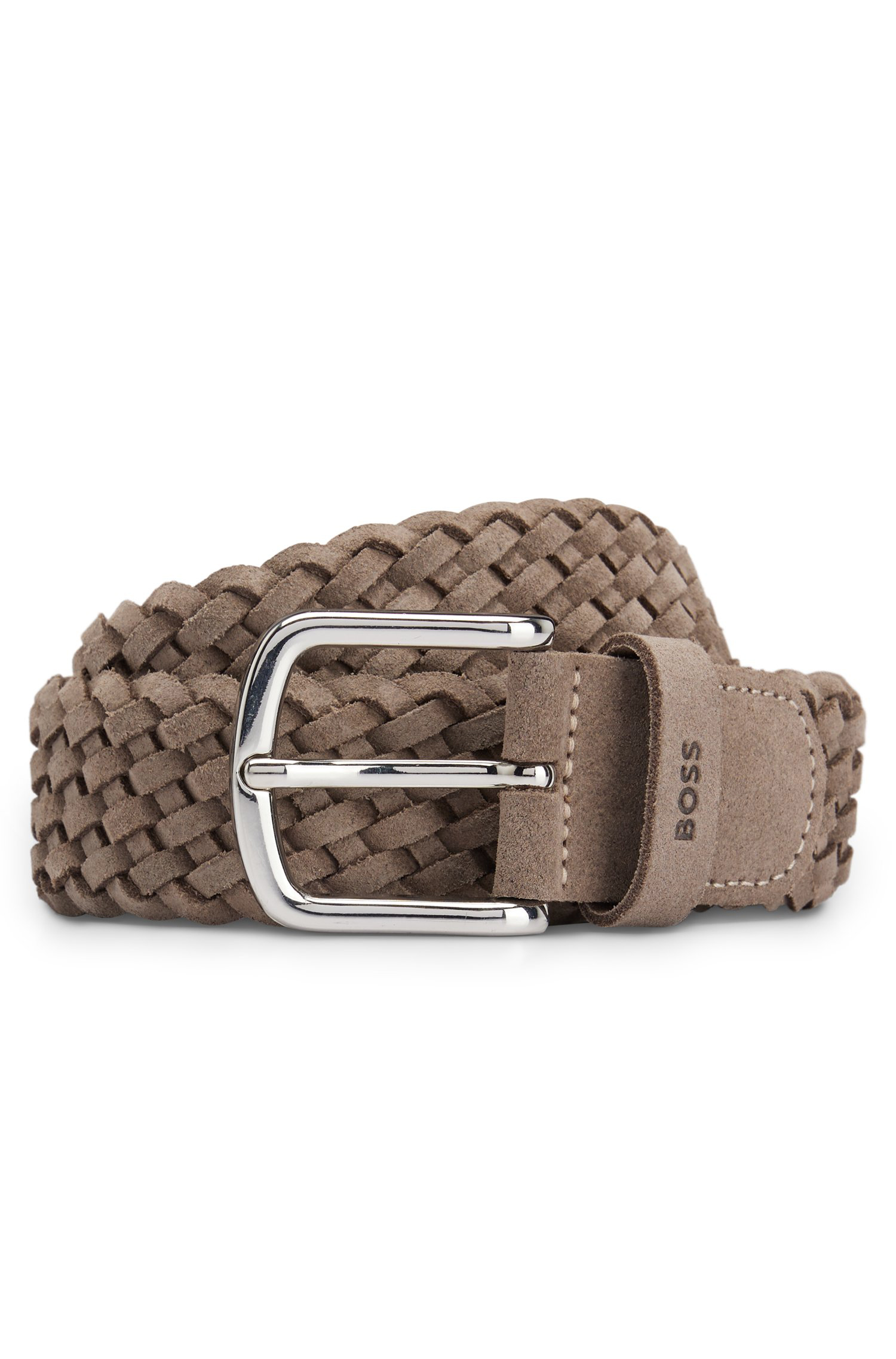 Eleganter BOSS Herren-Gürtel. Der zeitgemäße Gürtel aus weichem Veloursleder mit edler Haptik wird mit einer Logo-Schlaufe und einer polierten Schließe geschlossen. Für eine optimale Passform sollte der Gürtel eine Größe größer als dein Taillenumfang sein. Für unsere RESPONSIBLE Produkte verwenden wir immer mindestens 60 % nachhaltigere Rohmaterialien. Mindestens 60 % des Leders für dieses Produkt stammen aus zertifizierten Gerbereien, die mit umweltschonenden Methoden arbeiten, um die Auswirkungen auf den Planeten zu reduzieren. Mit dem Kauf dieses Produktes unterstützt du die nachhaltigere Lederherstellung durch die Leather Working Group (LWG). Wir verwenden nur Leder, das als Nebenprodukt in der Lebensmittelbranche anfällt.