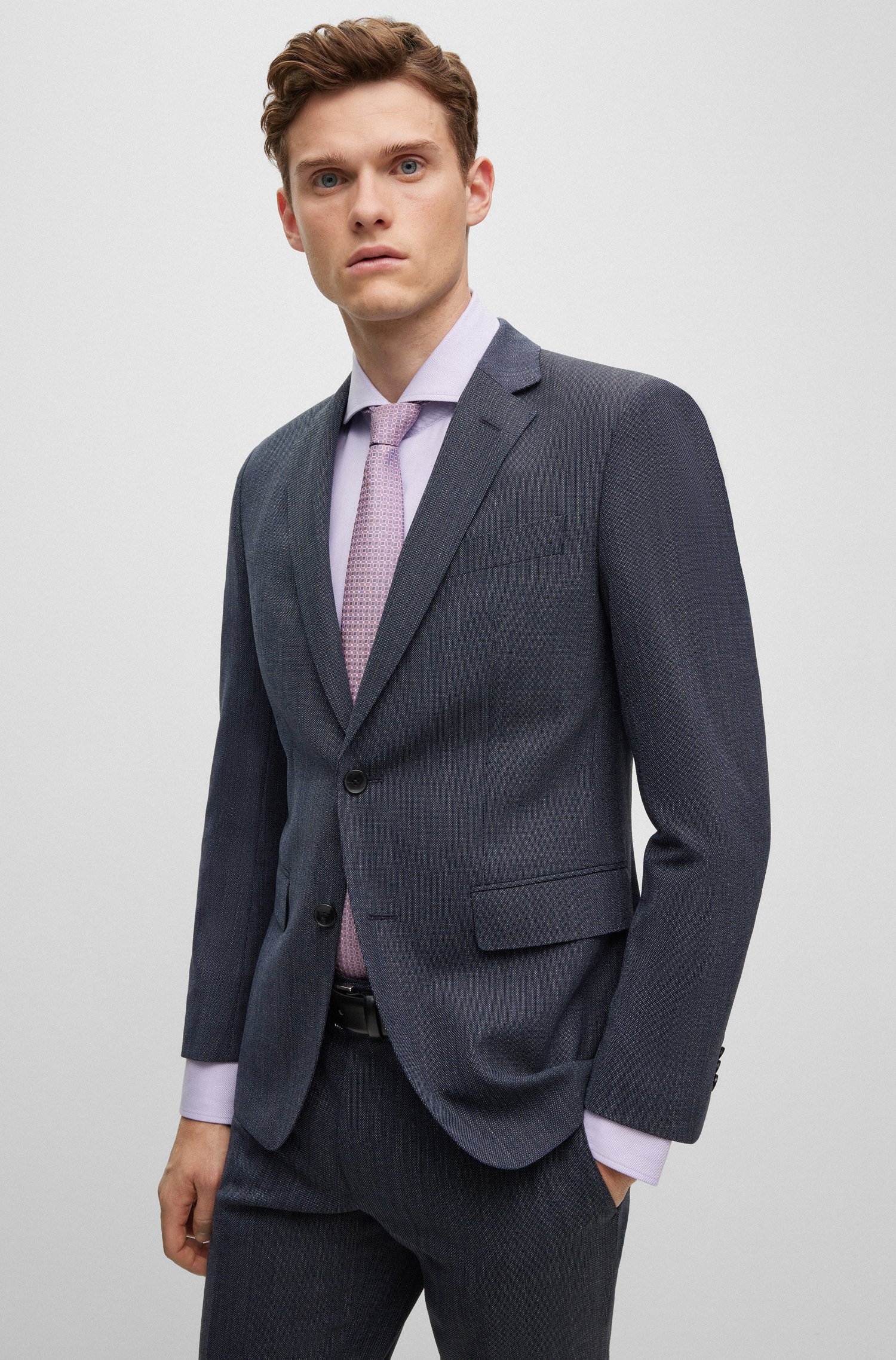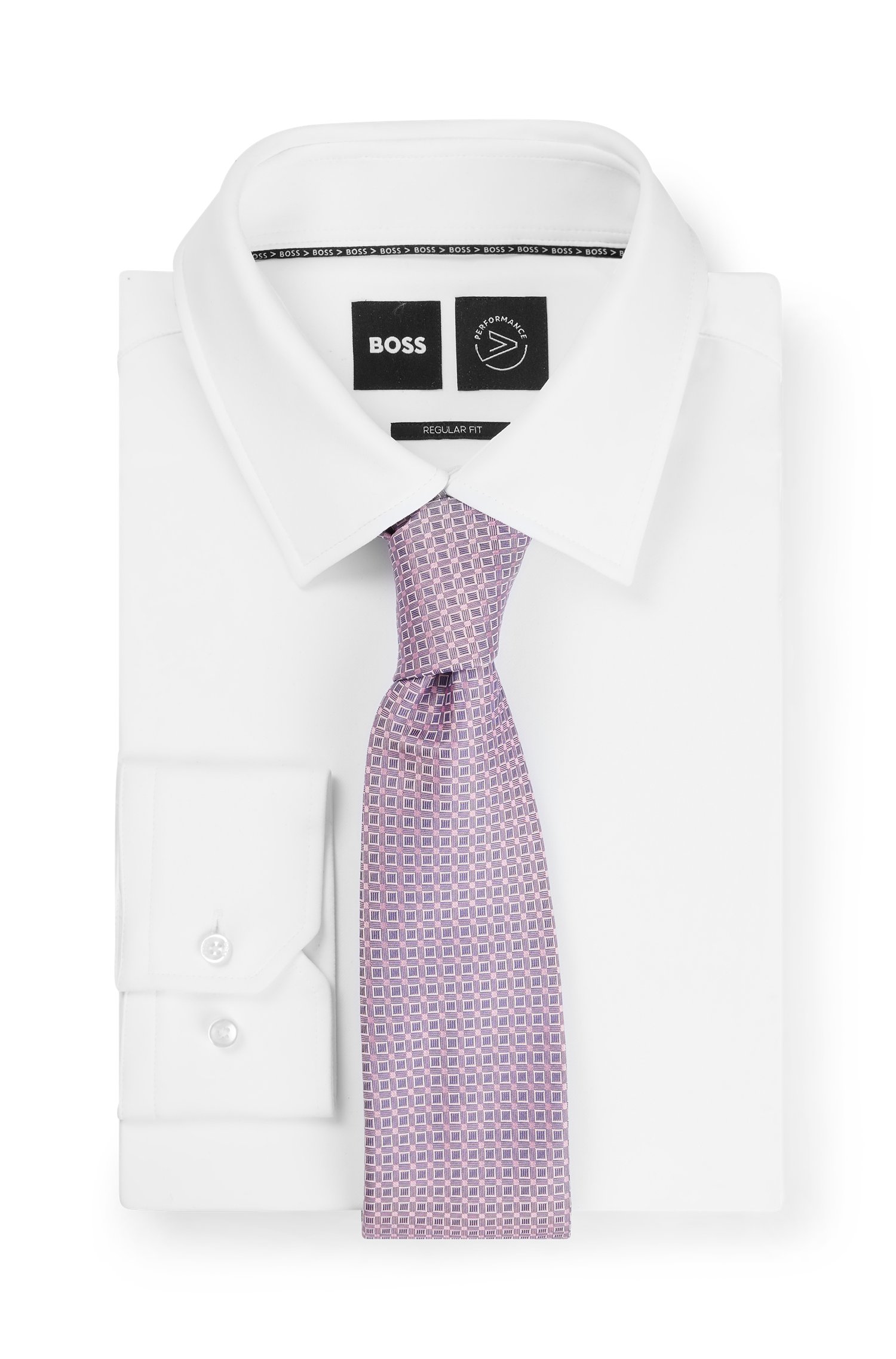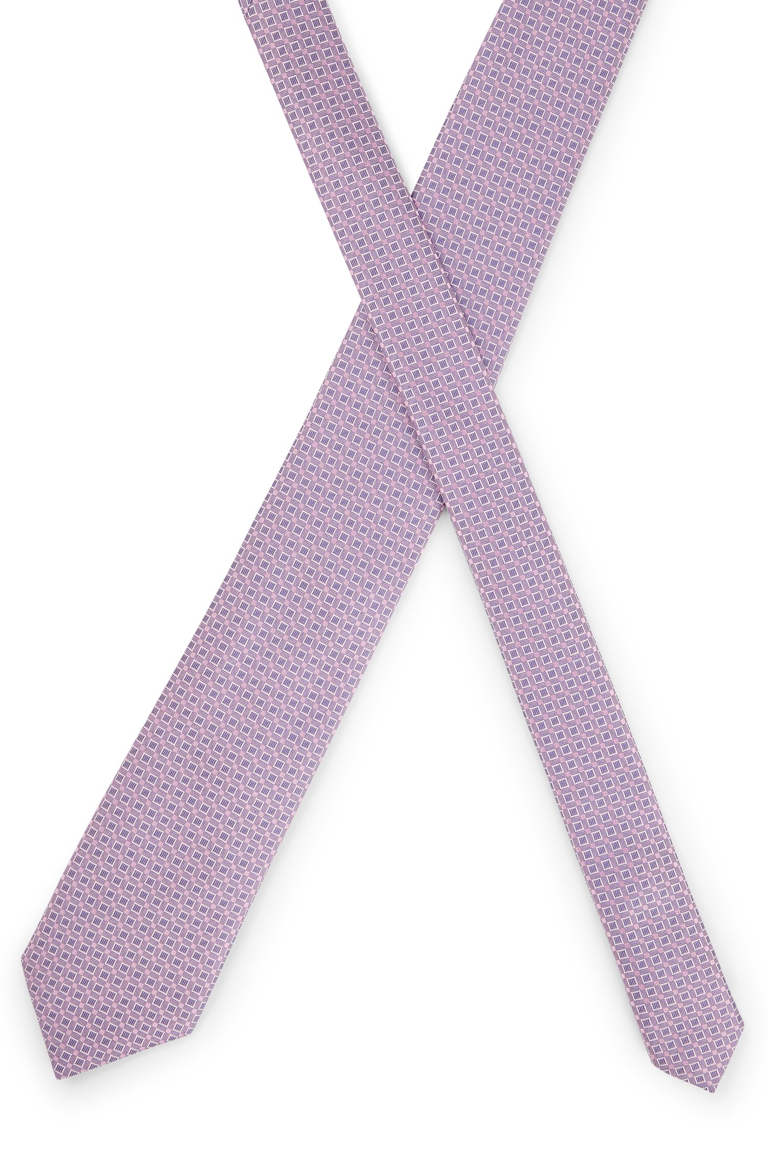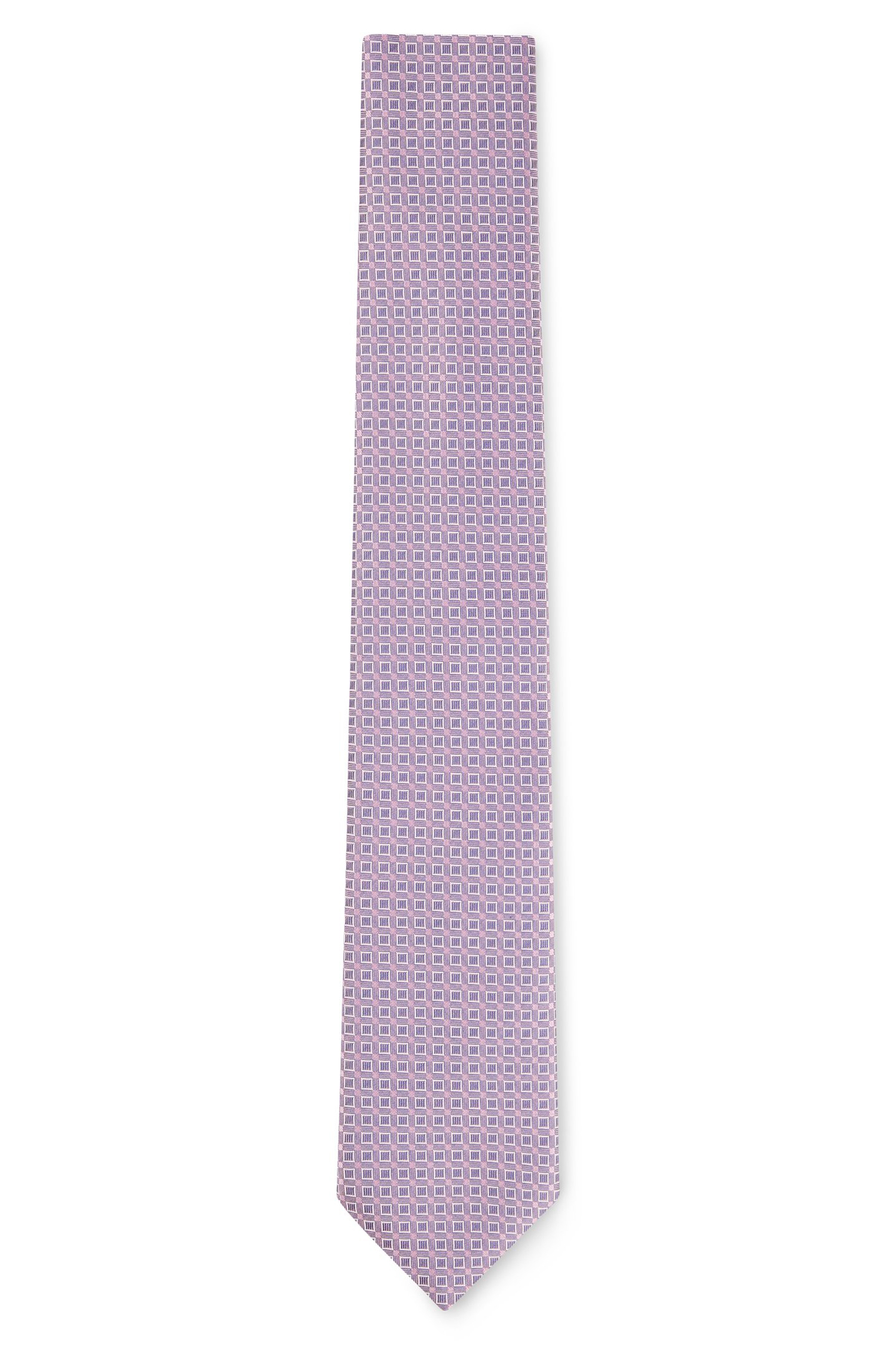 Markante BOSS Krawatte aus reinem Seiden-Jacquard mit zeitgemäßem Muster und 7,5 Zentimetern Breite.