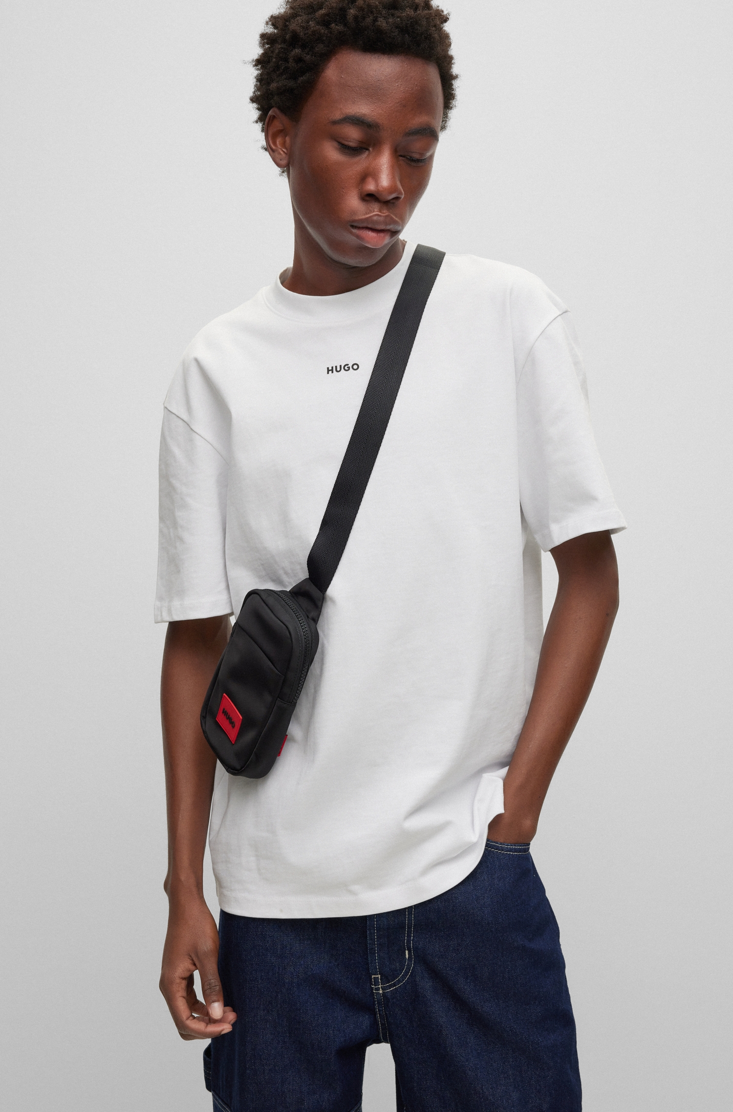 HUGO Reporter-Tasche mit Reißverschluss und Logo-Aufnäher aus Gummi.