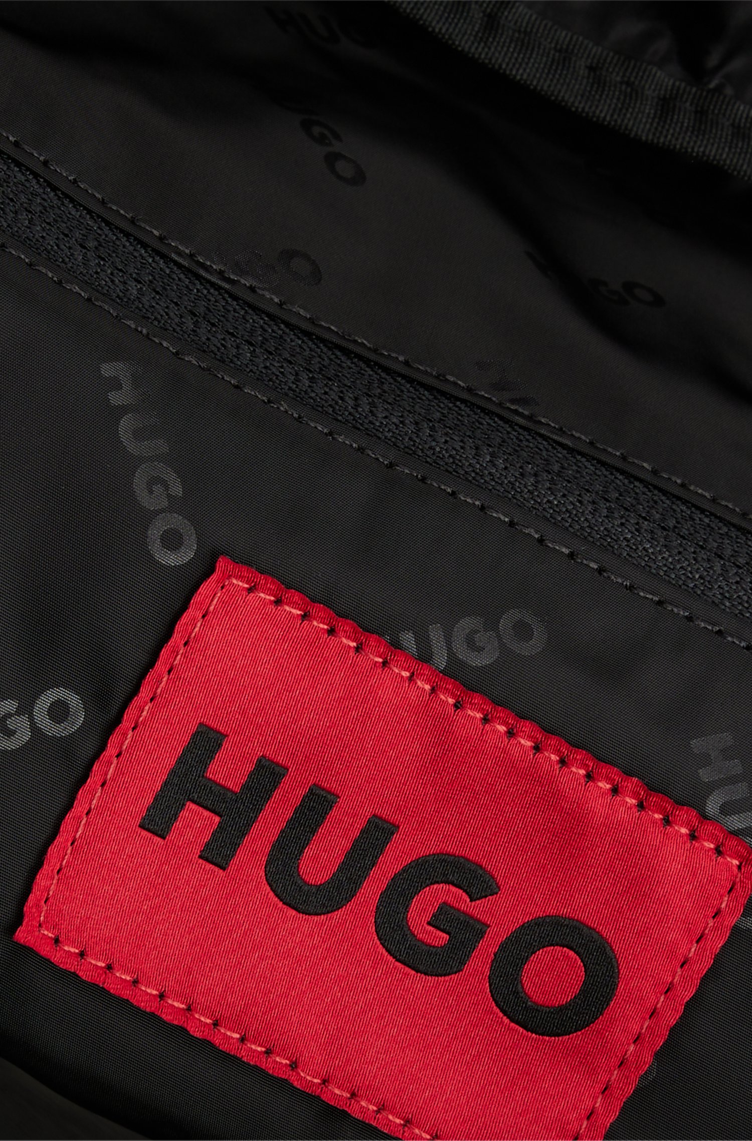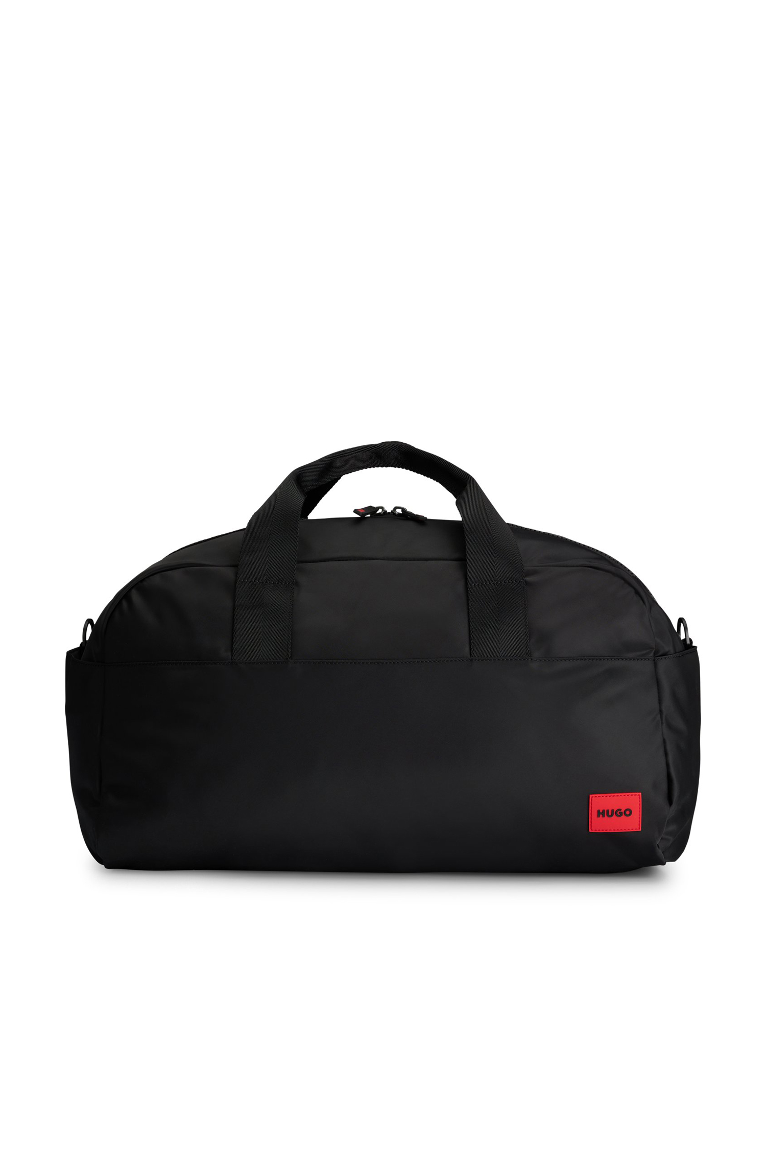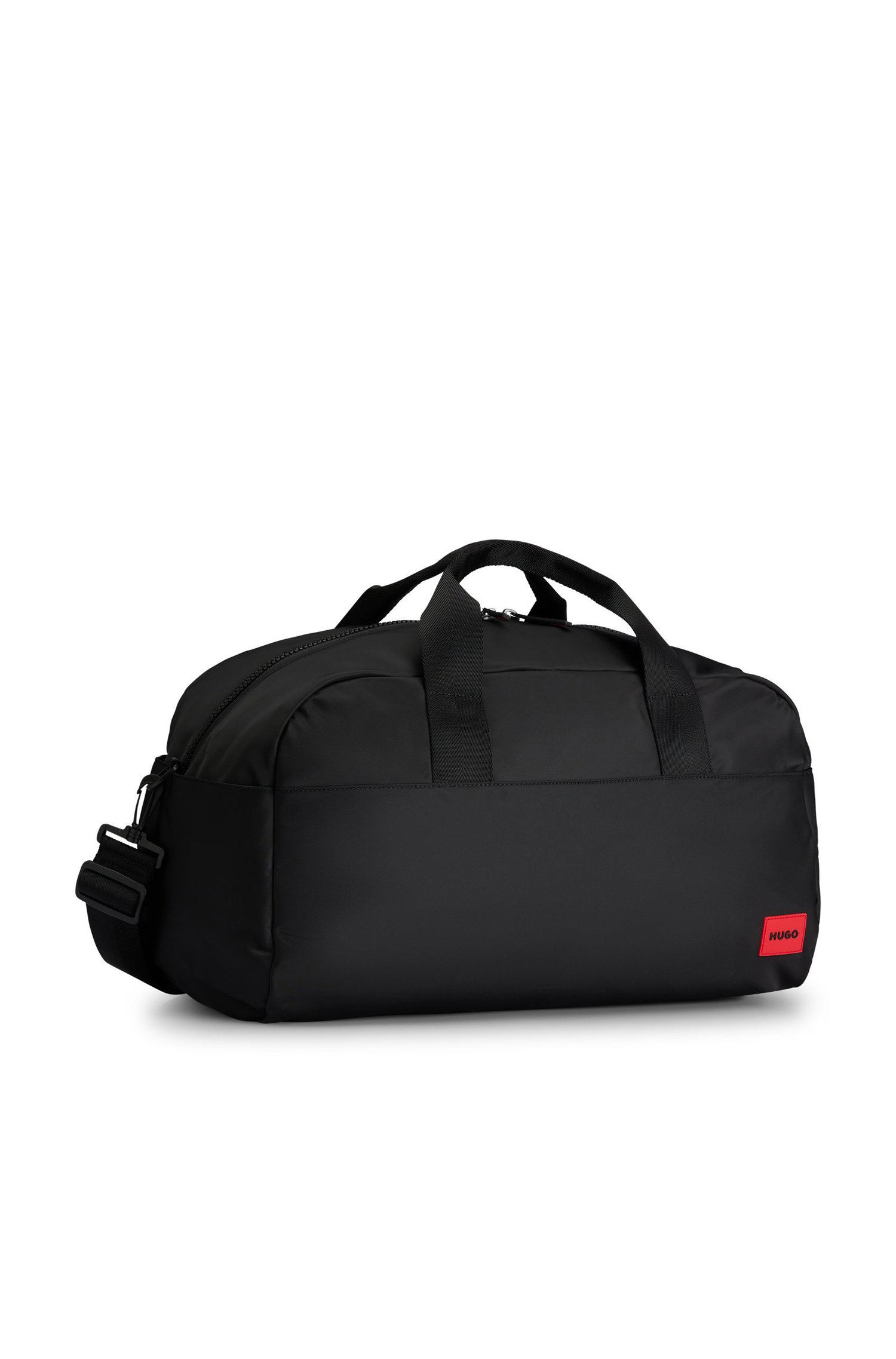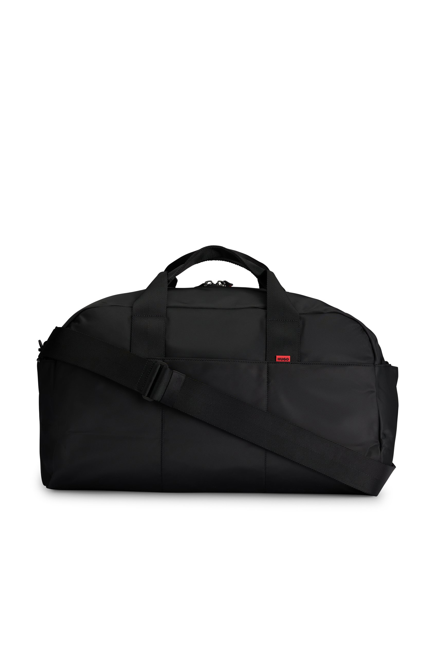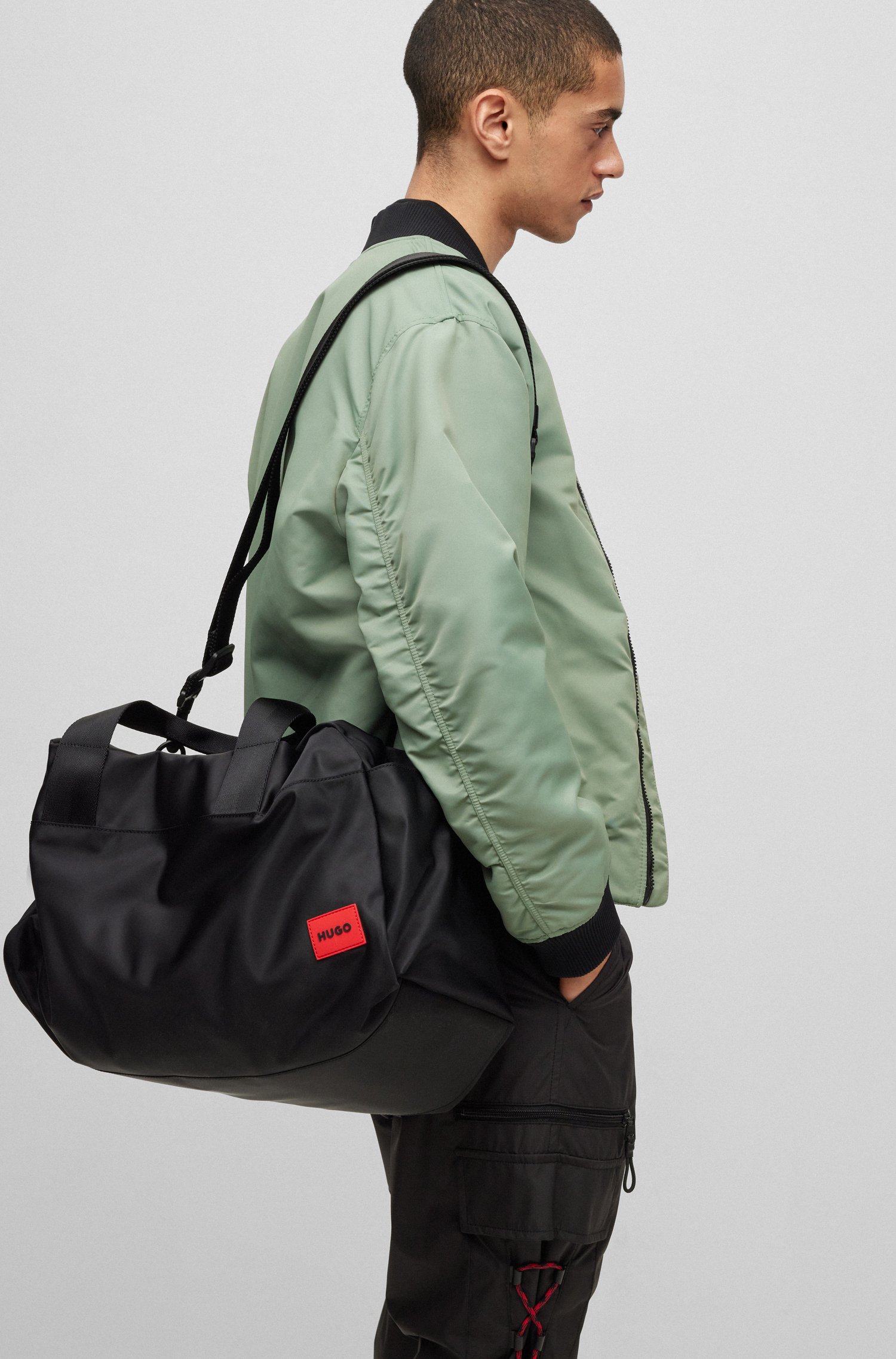 Sportiver HUGO Weekender aus einem strukturierten Material-Mix mit Reißverschluss und Logo-Details, darunter ein rotes Logo-Label aus Gummi.