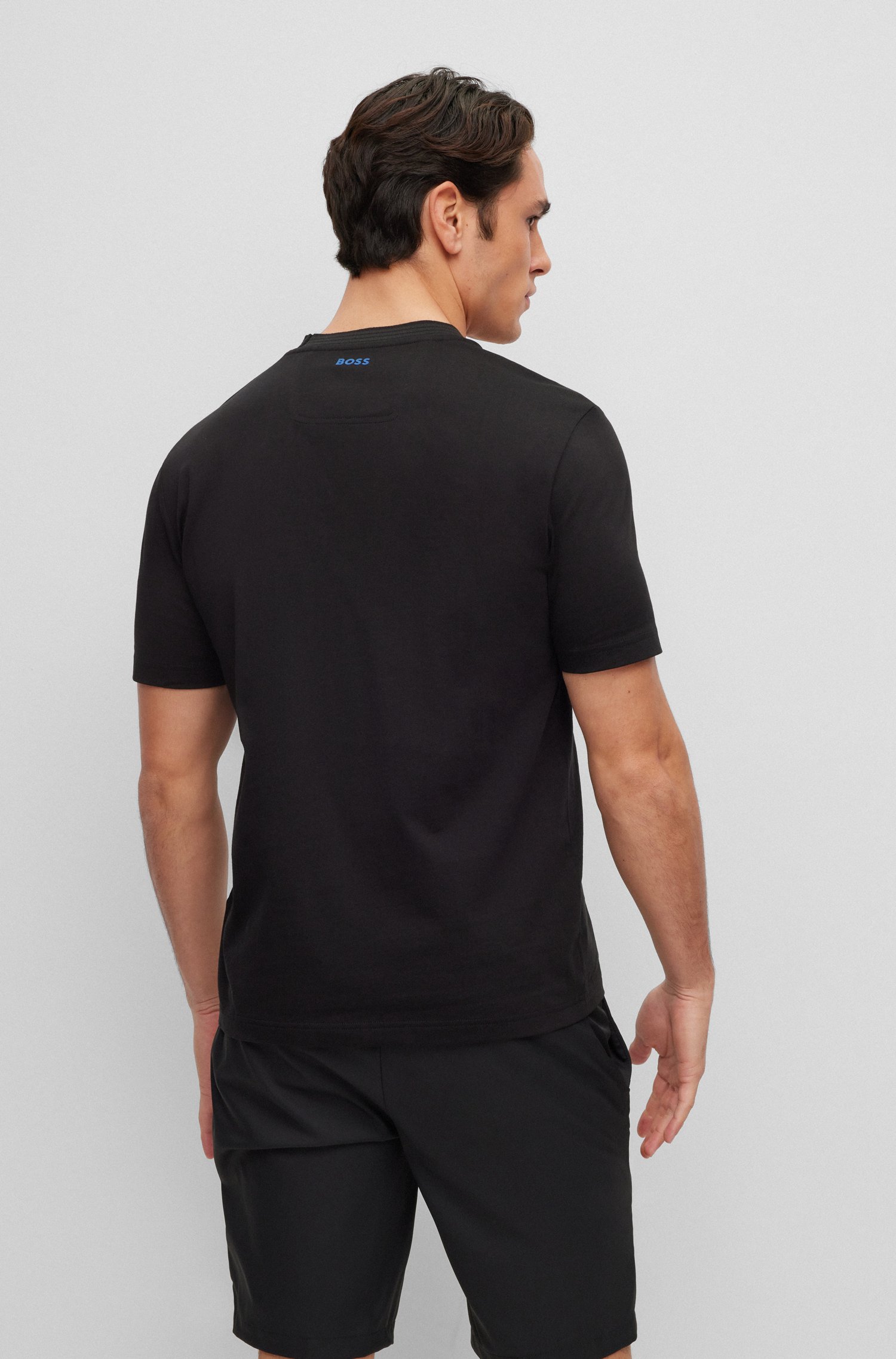 Gerade geschnittenes BOSS T-Shirt aus Single Jersey mit Jacquard-Logos am tonalen Rundhalsausschnitt.