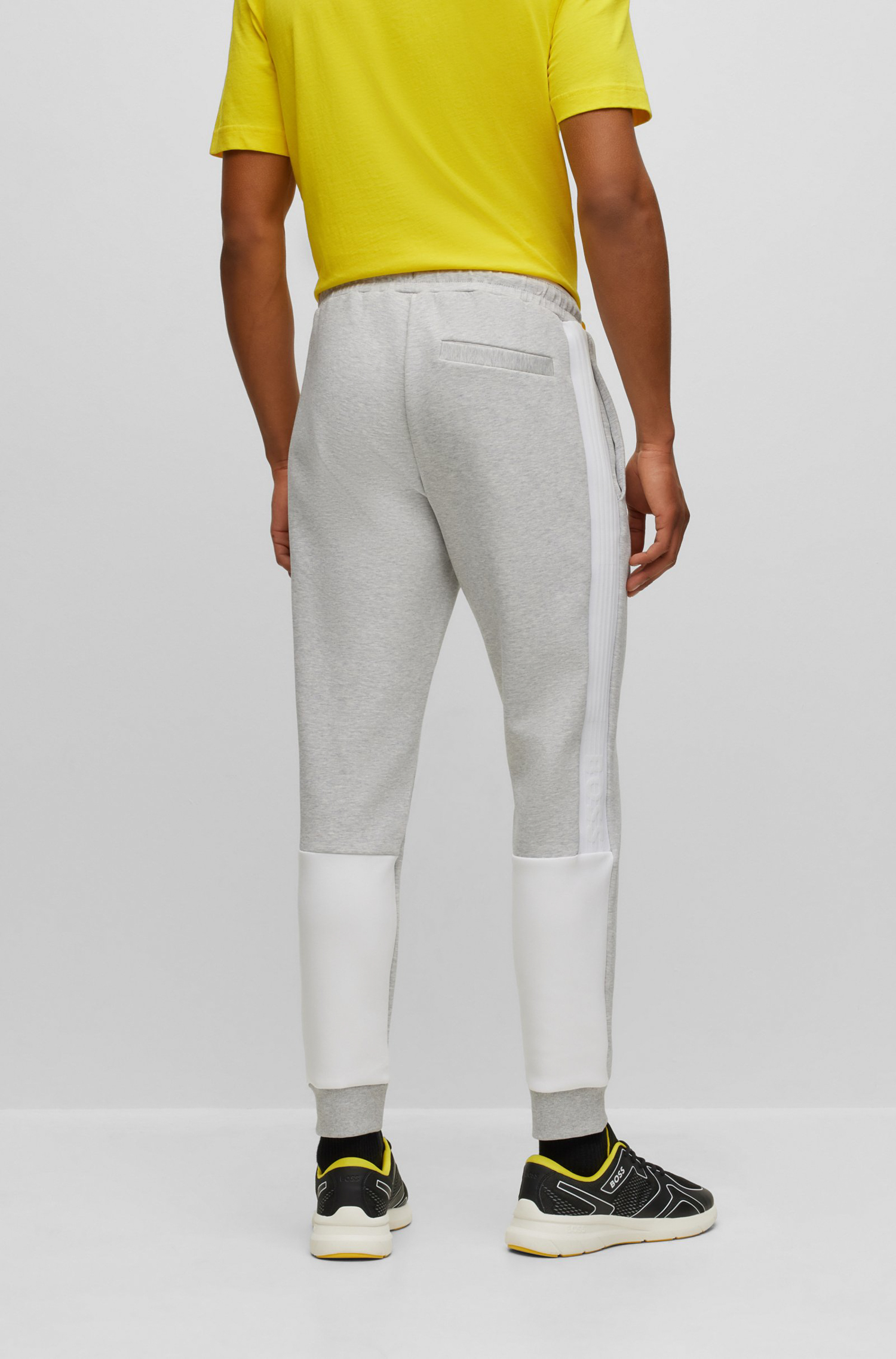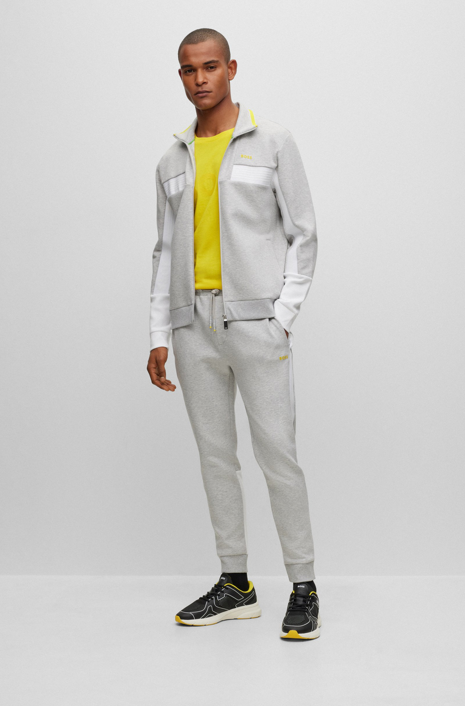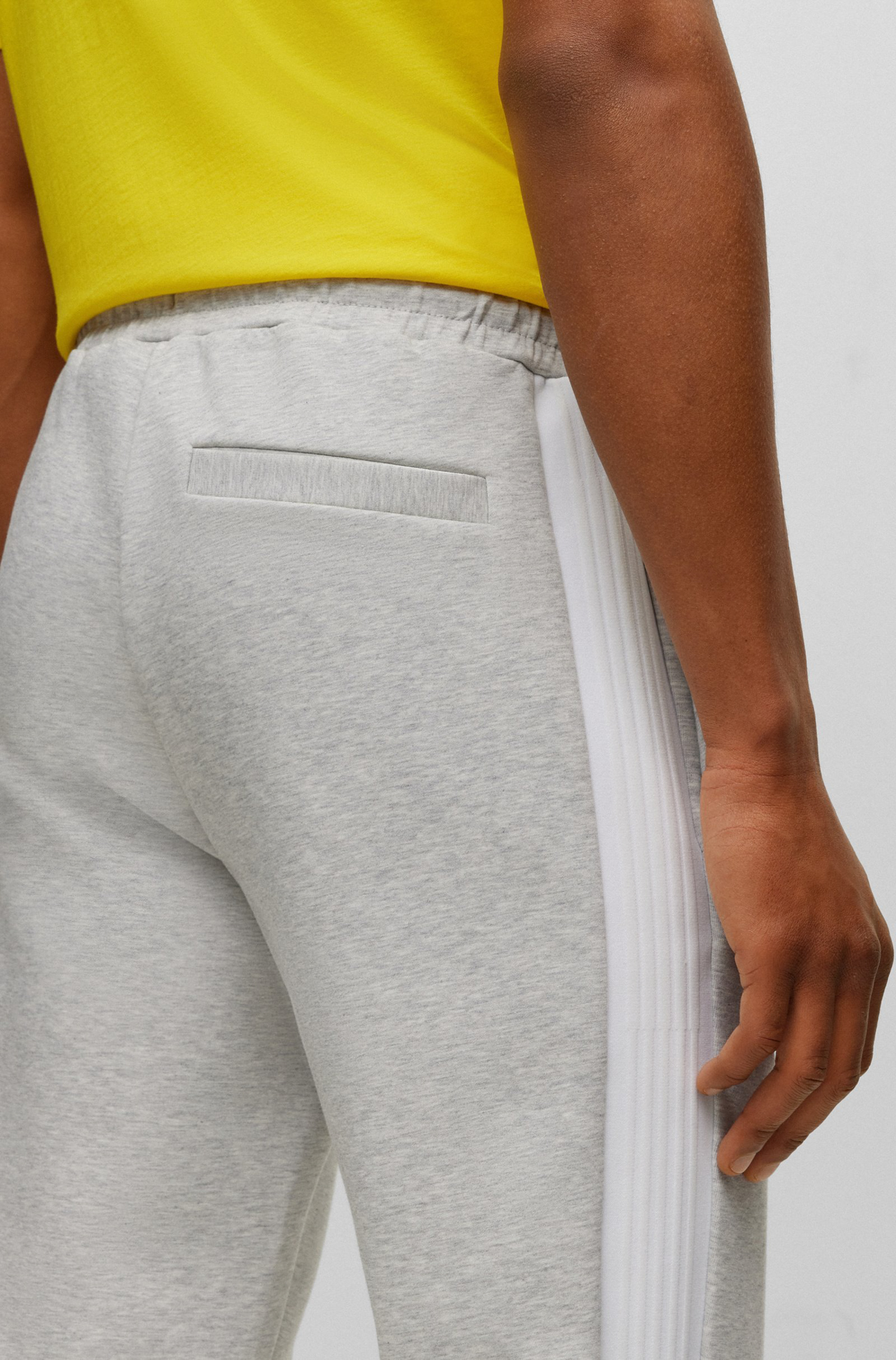 BOSS Herren-Jogginghose aus einem elastischen Baumwoll-Mix mit mittlerer Bundhöhe, gerader Passform, Streifen-Tape an den Seiten und Logo-Stickerei.