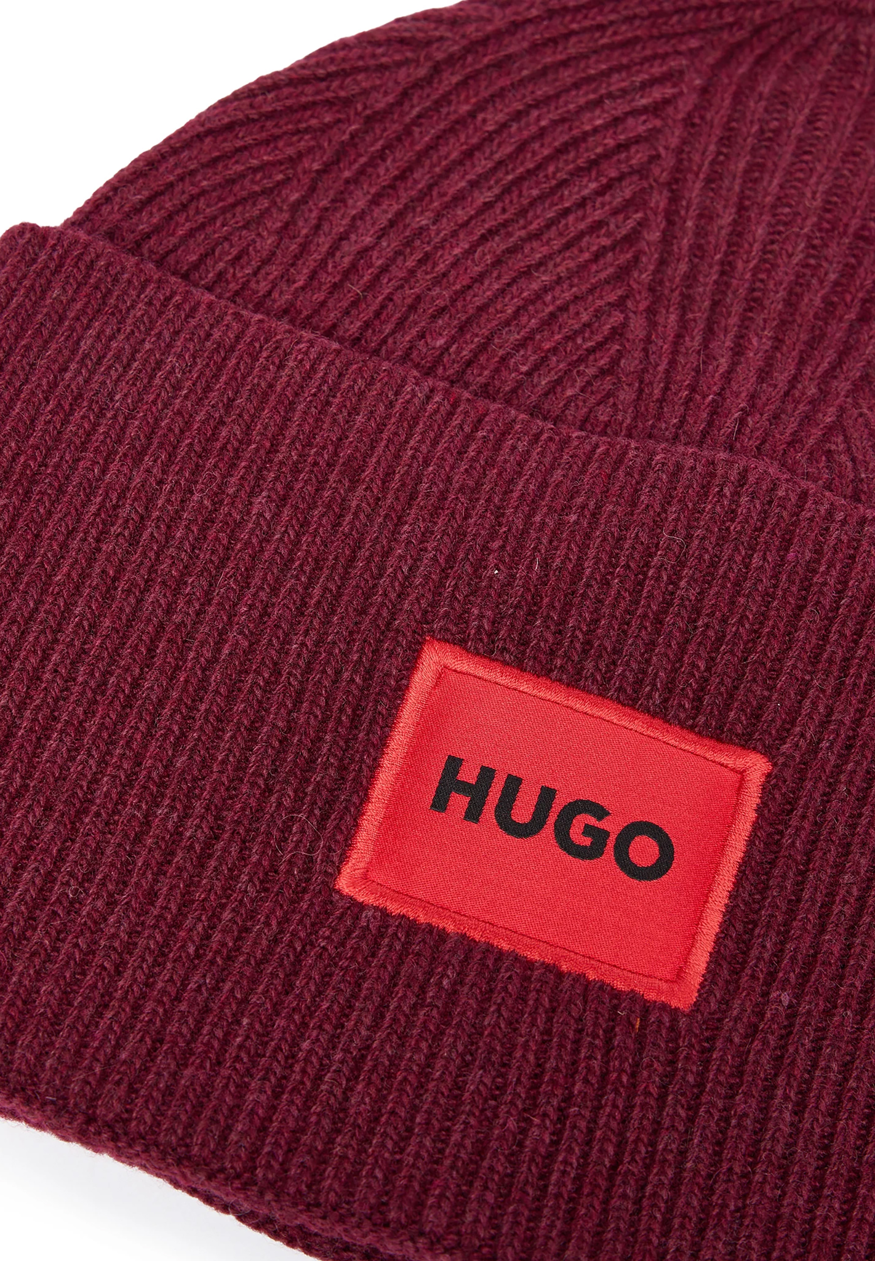 Gerippte HUGO Herren-Mütze mit einem Logo-Etikett im charakteristischen Rot.