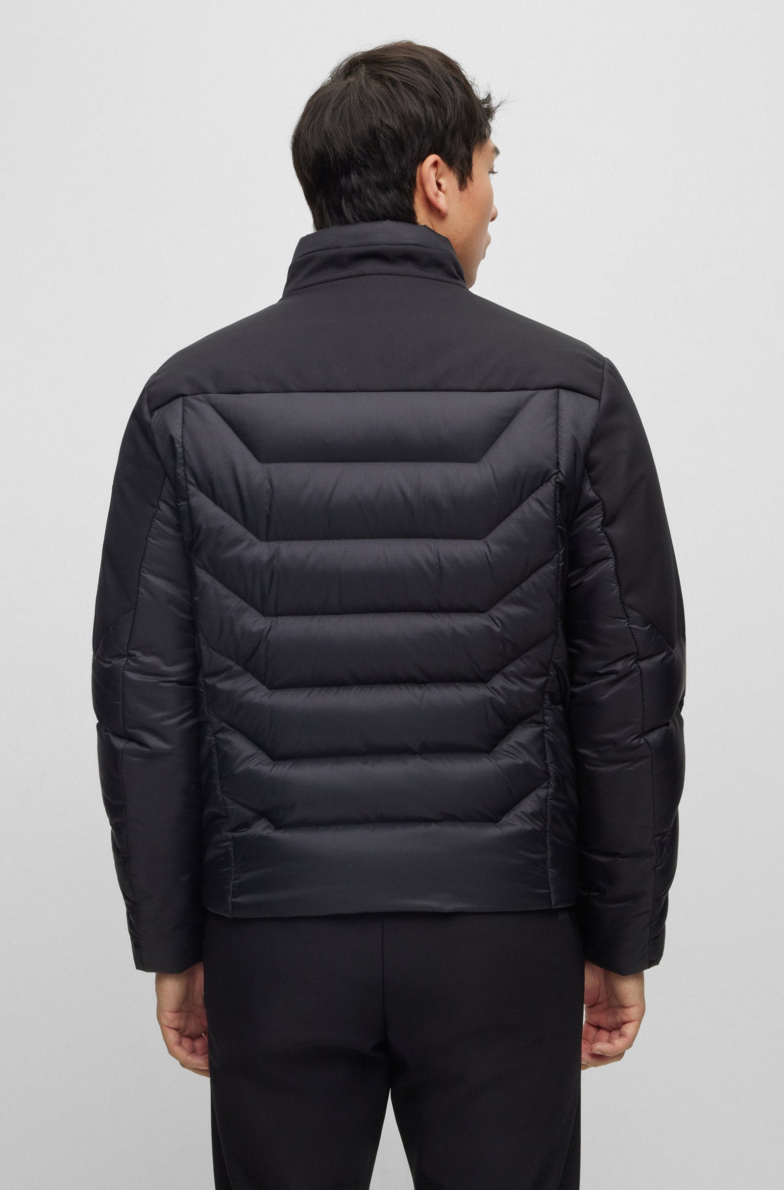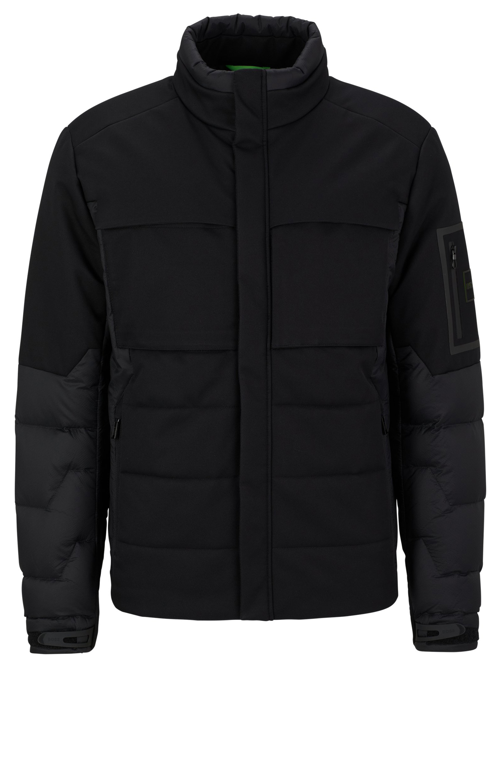 Gerade geschnittene, wasserabweisende BOSS Herren-Jacke aus verschiedenen Materialien mit Logo-Tasche am Ärmel.