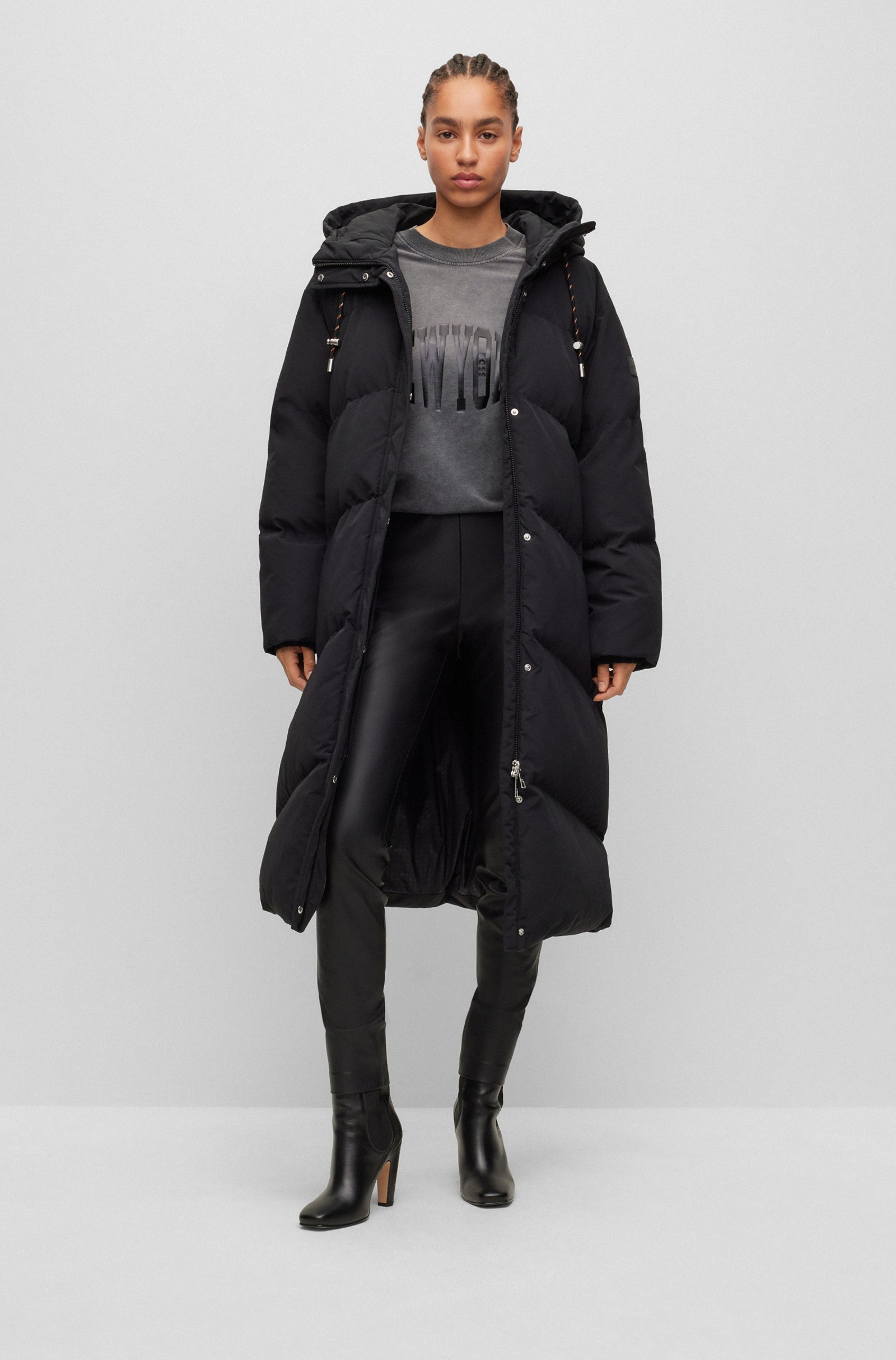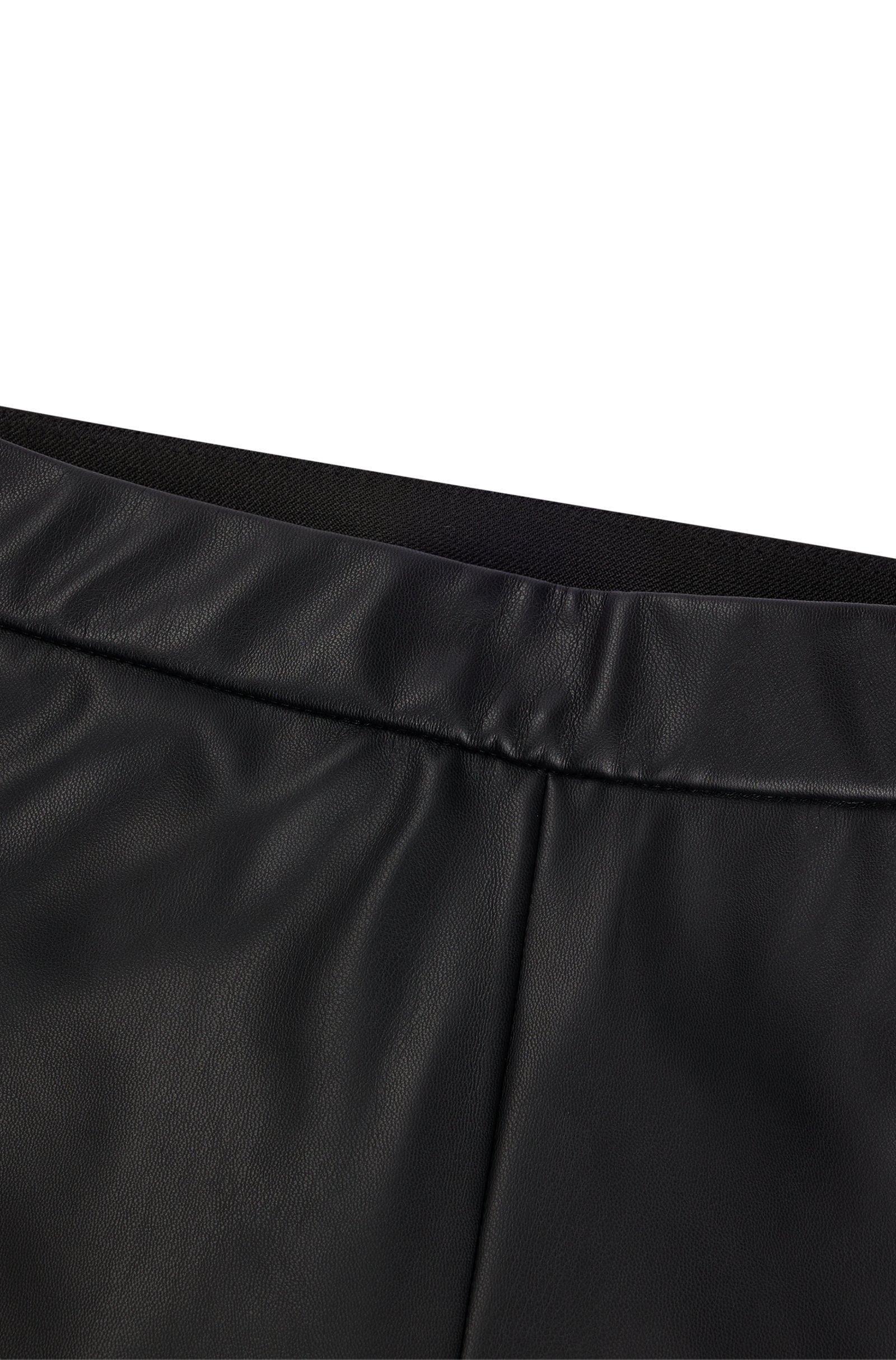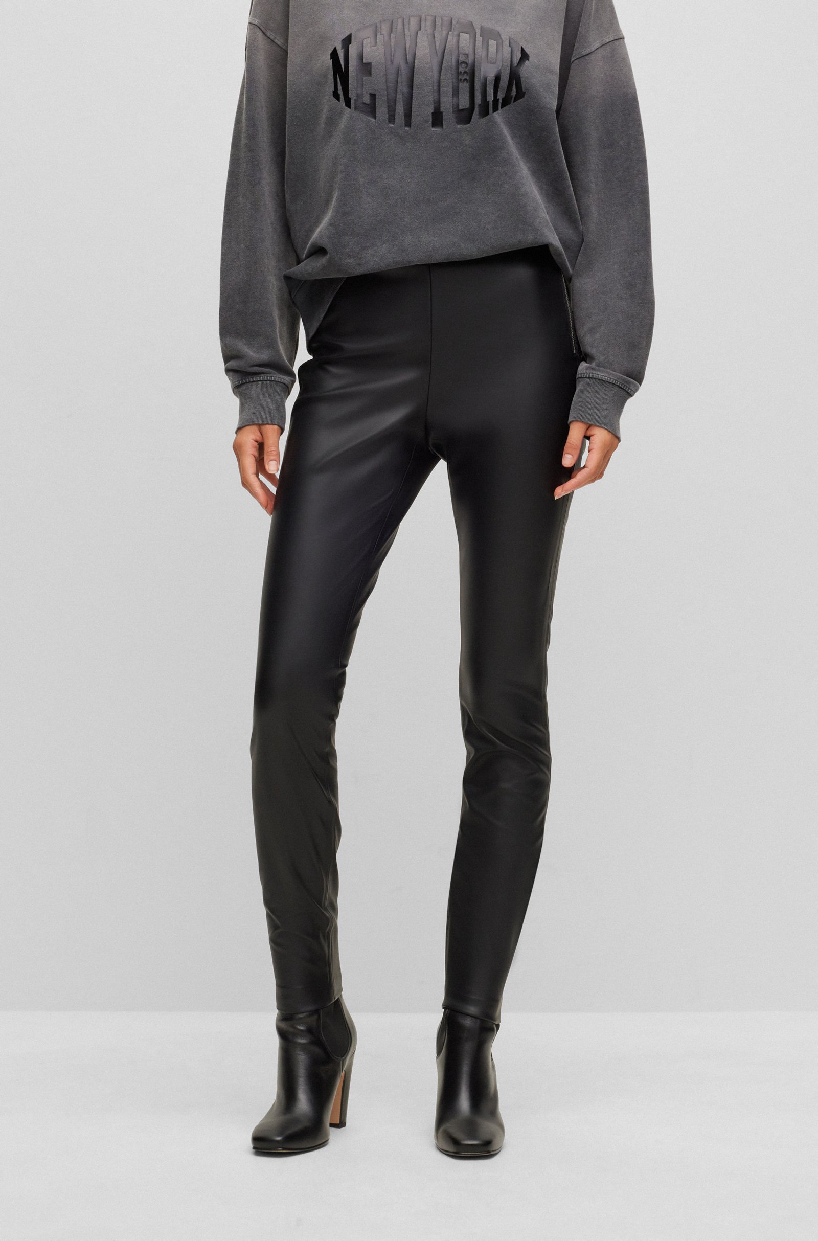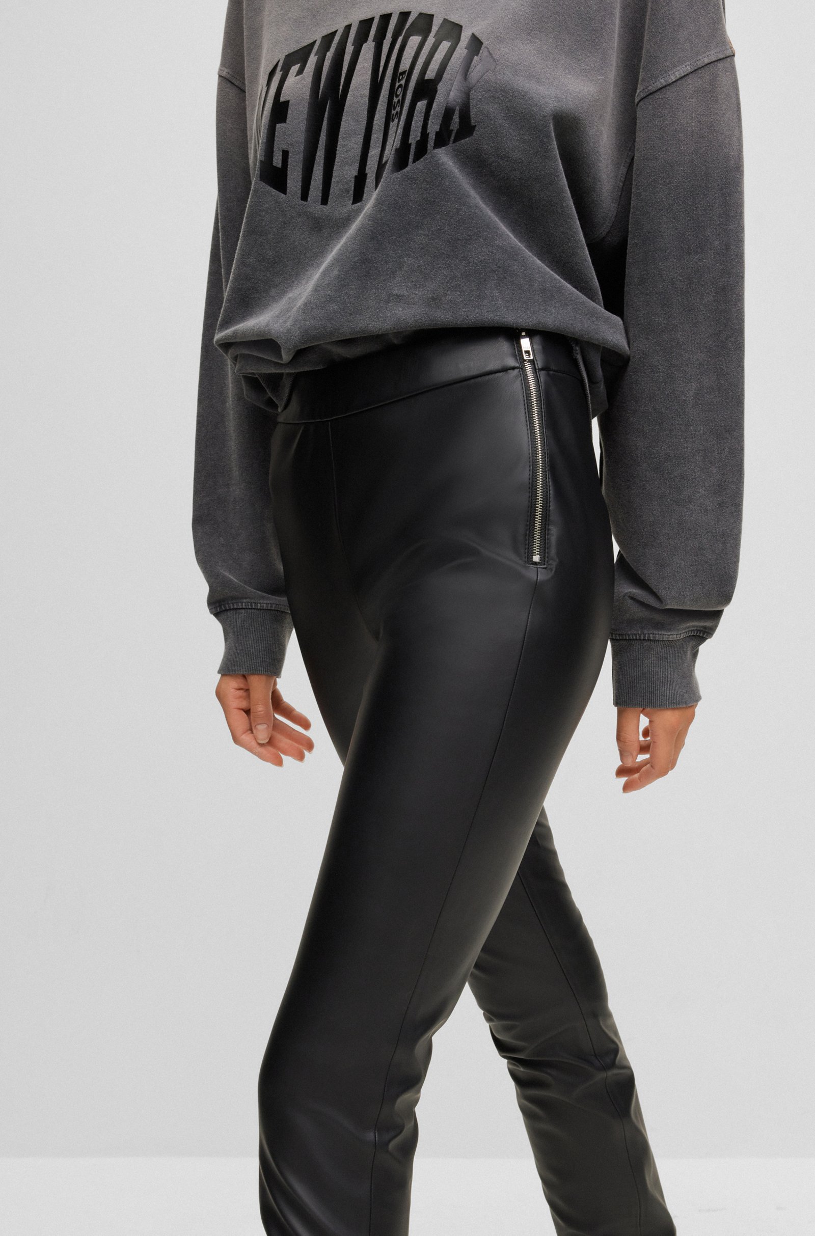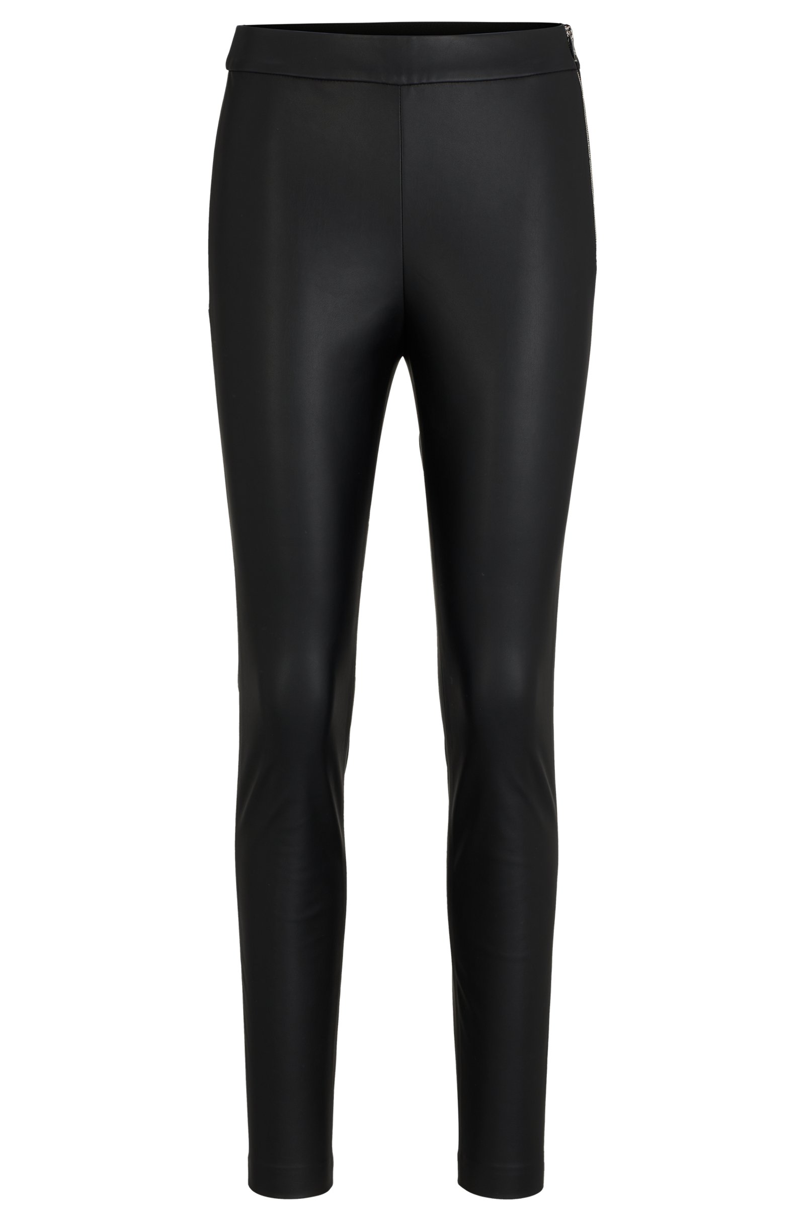 Schmal geschnittene BOSS Damen-Hose aus einem synthetisch beschichteten Textil mit hohem Bund und seitlichem Reißverschluss.