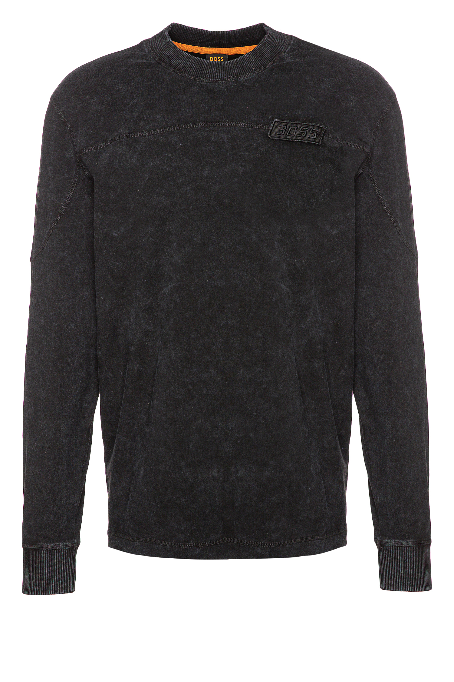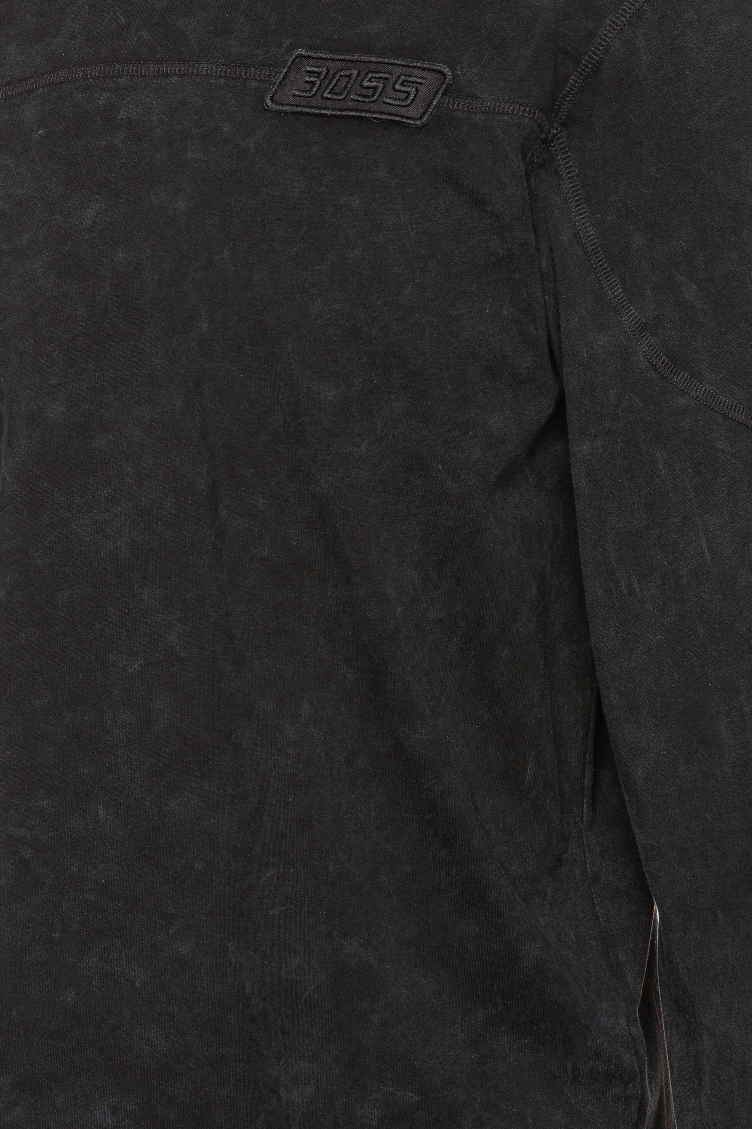 Locker geschnittenes BOSS Longsleeve aus angerautem Baumwoll-Jersey mit wolkenartigem Effekt und Rennsport-Details.