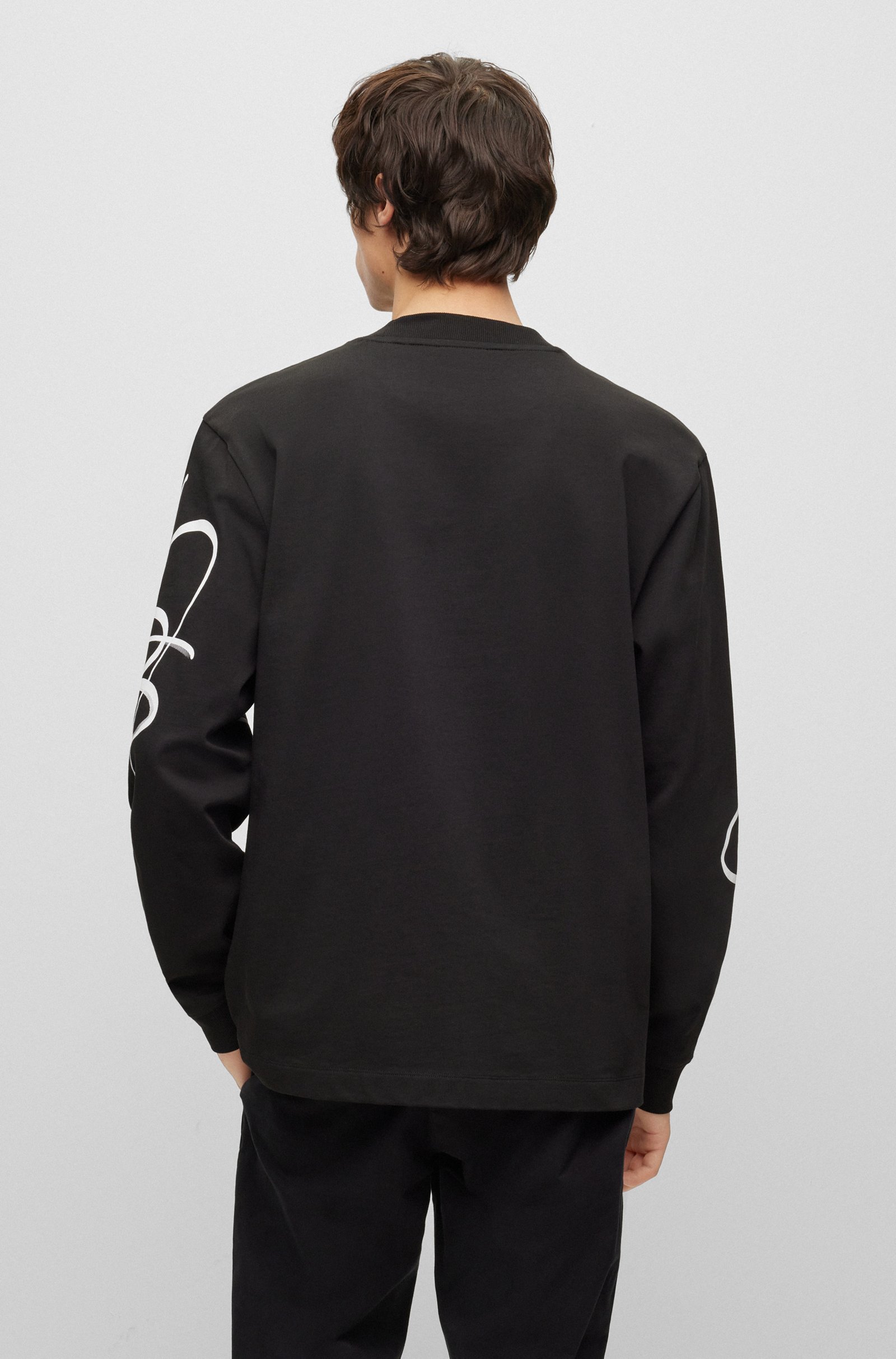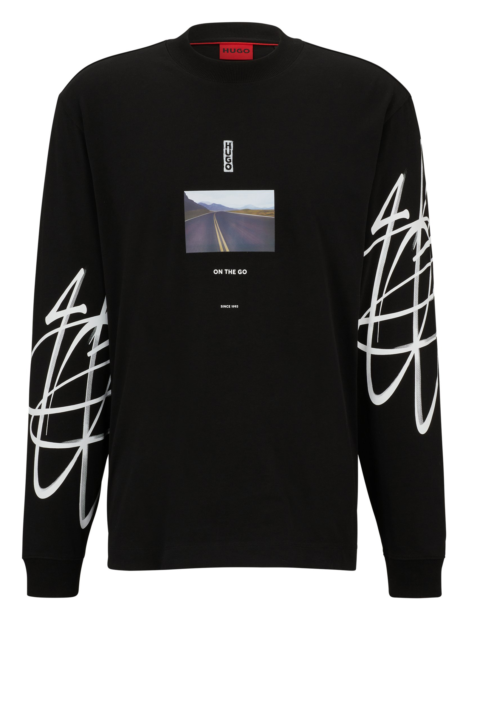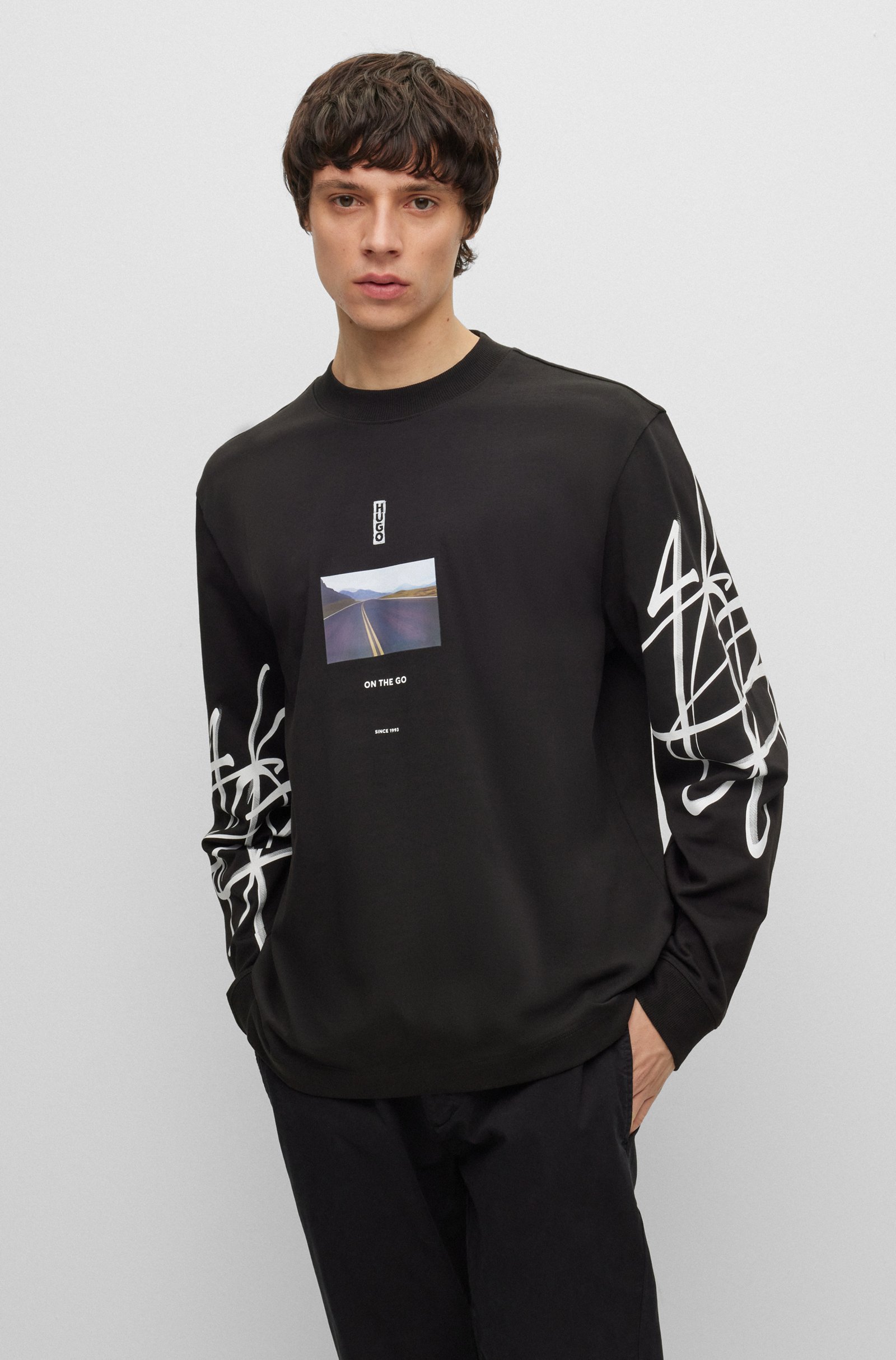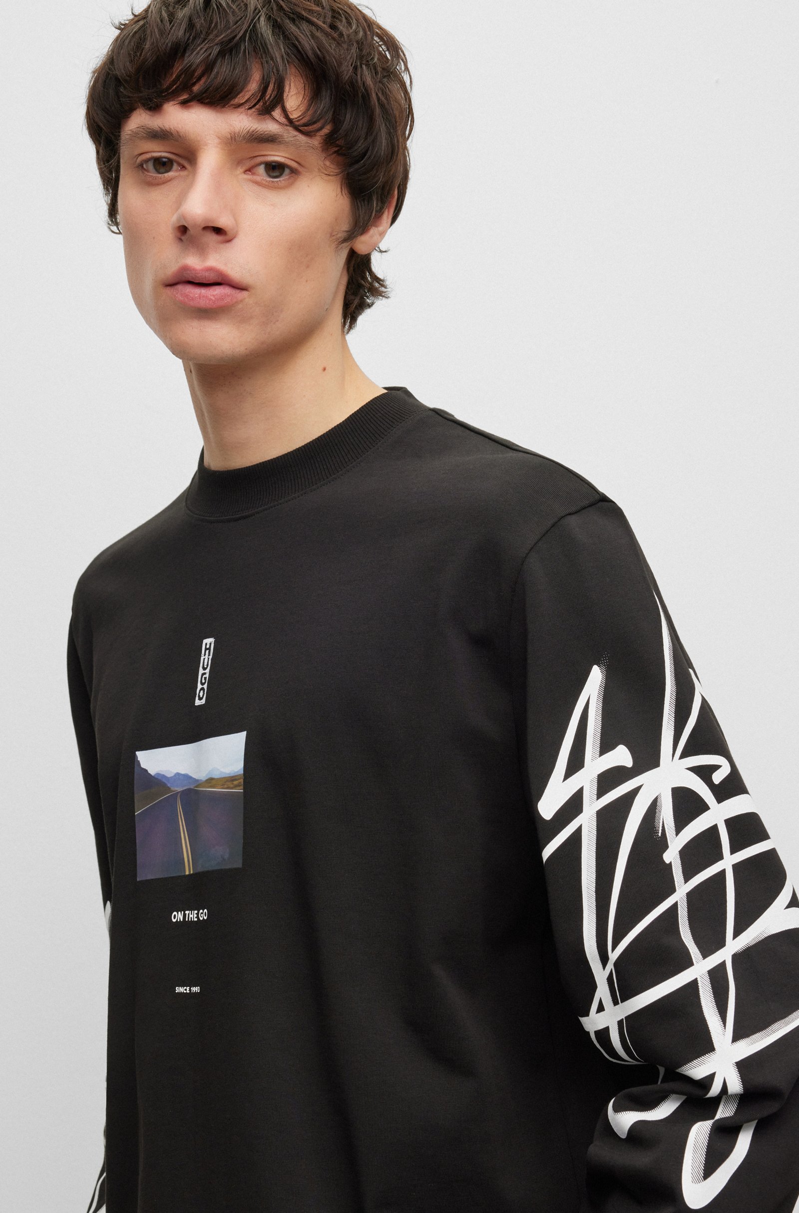 Locker geschnittenes HUGO Herren-Longsleeve aus schwerem Jersey mit Foto-Detail und Logos im Graffiti-Stil.